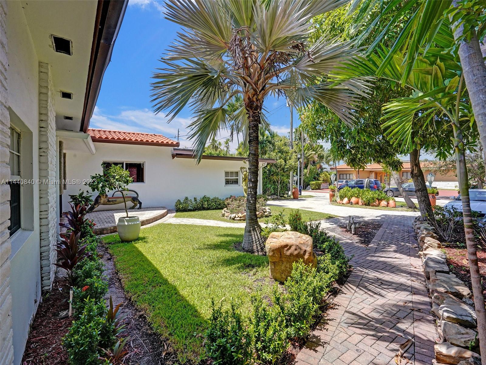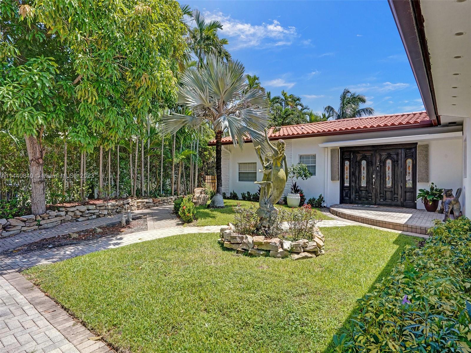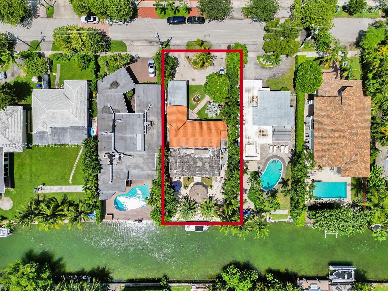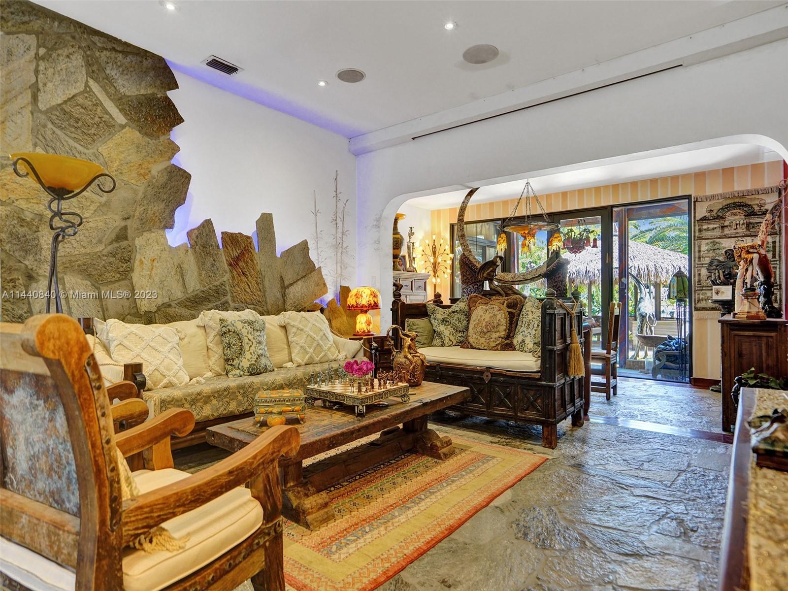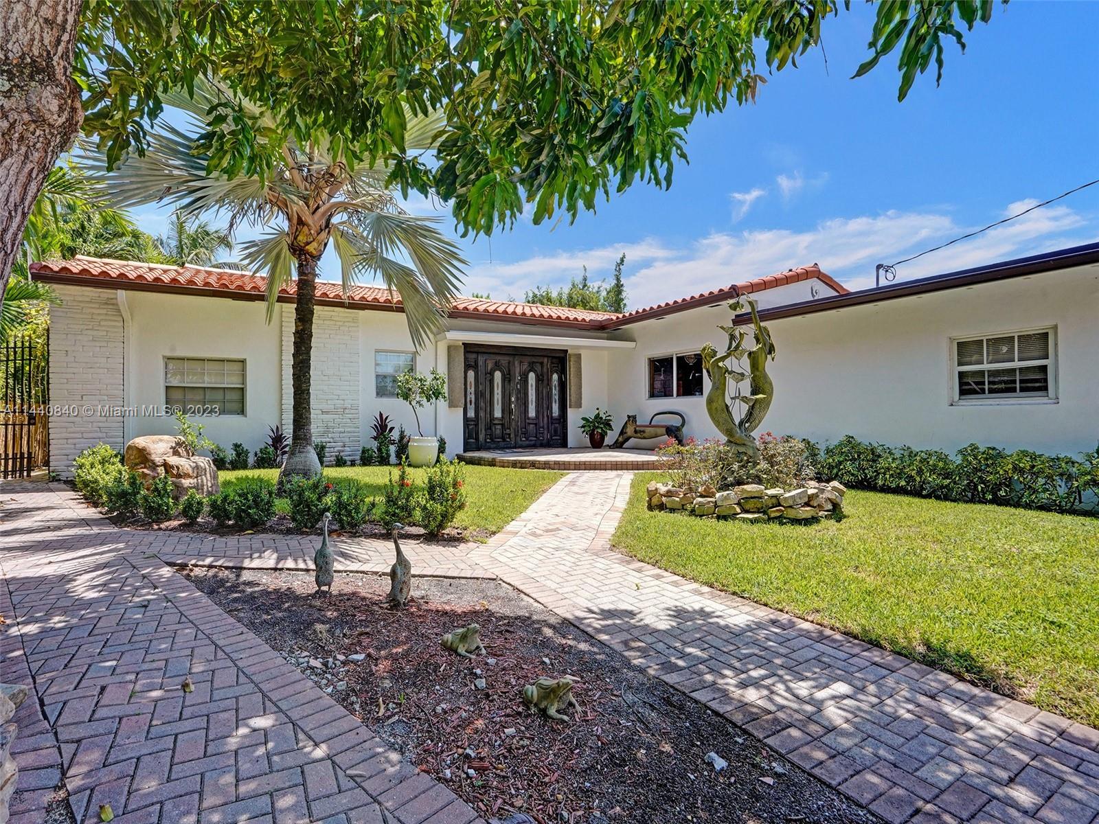 Unbelievably sought after Biscayne Point 60 ft waterfront smart home with 9ft ceilings, boatlift and only 1 bridge to the bay & ocean! Mid-Century Villa meets Moroccan Mosaic flair! Over $500K in renovations include impact windows, Bamboo kitchen, all 4 ensuite baths, full home theater projection & sound system, porcelain & field stone floors, custom solid wood doors, & electrical hurricane shutters, sprinklers & up lighting. Entertainers delight in your tropical oasis with covered tiki hut for 10 people, dining table, outdoor summer kitchen with BBQ, pizza oven. Investors will love the studio efficiency rented at $1,800 per month or use it as a guest, in-law or teenager suite! Brand new roof being installed with the potential to add 1250 sft of rooftop pleasure! All furniture negotiable.