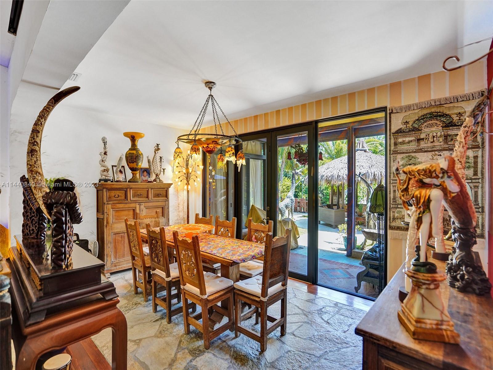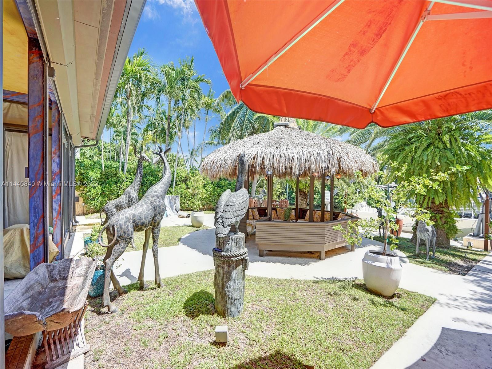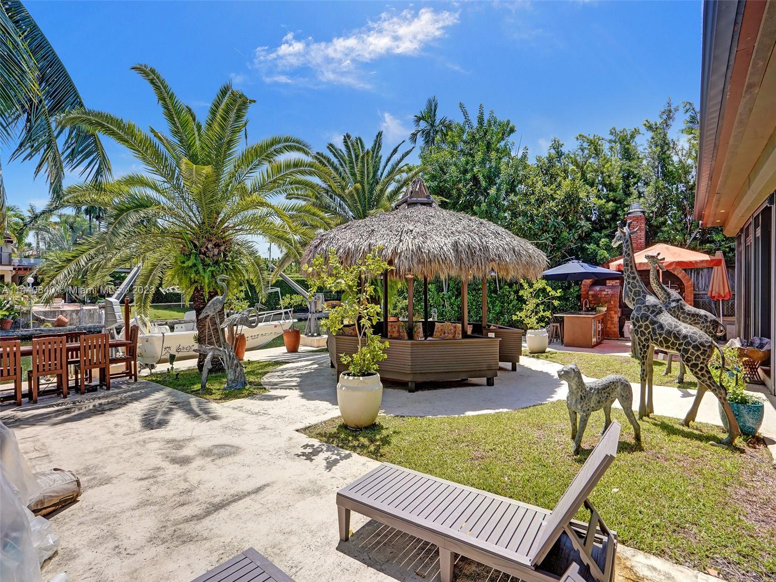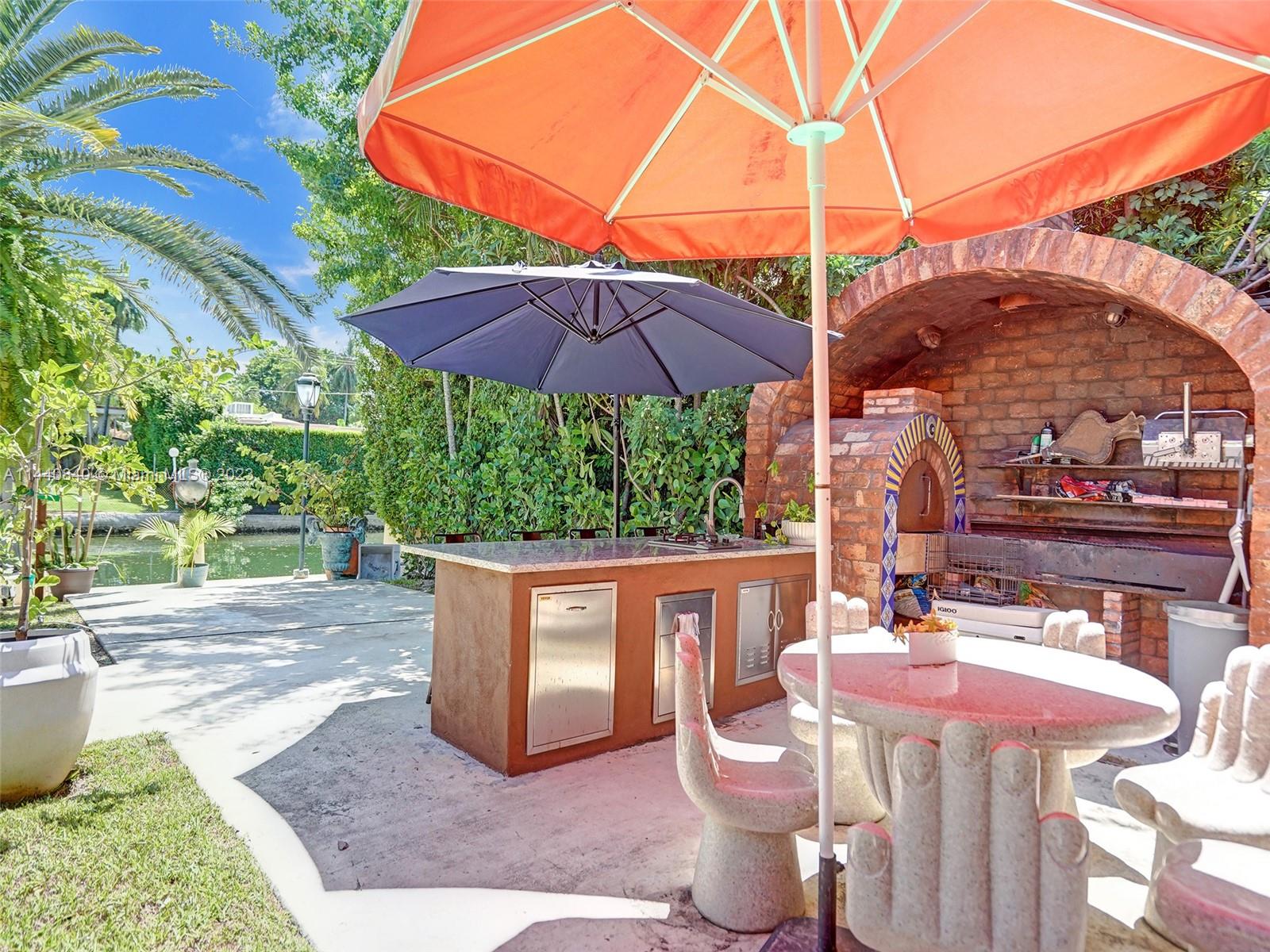 Unbelievably sought after Biscayne Point 60 ft waterfront smart home with 9ft ceilings, boatlift and only 1 bridge to the bay & ocean! Mid-Century Villa meets Moroccan Mosaic flair! Over $500K in renovations include impact windows, Bamboo kitchen, all 4 ensuite baths, full home theater projection & sound system, porcelain & field stone floors, custom solid wood doors, & electrical hurricane shutters, sprinklers & up lighting. Entertainers delight in your tropical oasis with covered tiki hut for 10 people, dining table, outdoor summer kitchen with BBQ, pizza oven. Investors will love the studio efficiency rented at $1,800 per month or use it as a guest, in-law or teenager suite! Brand new roof being installed with the potential to add 1250 sft of rooftop pleasure! All furniture negotiable.