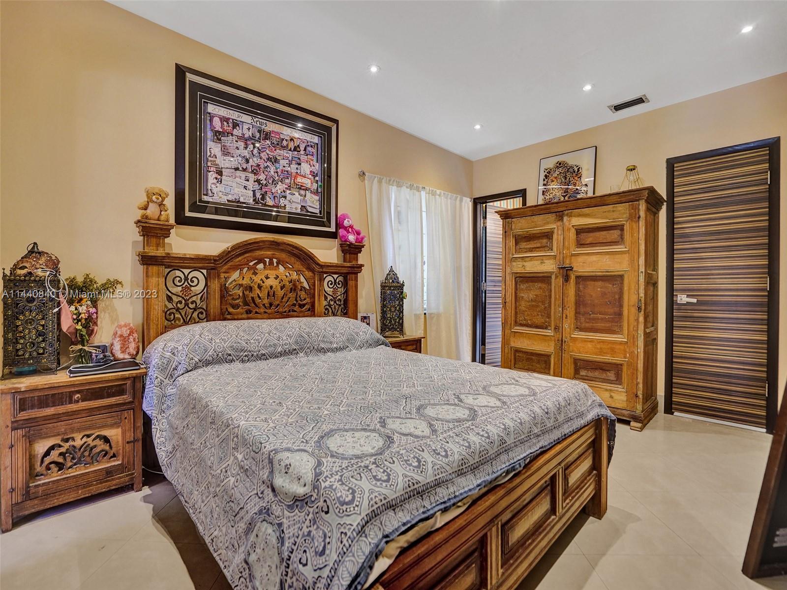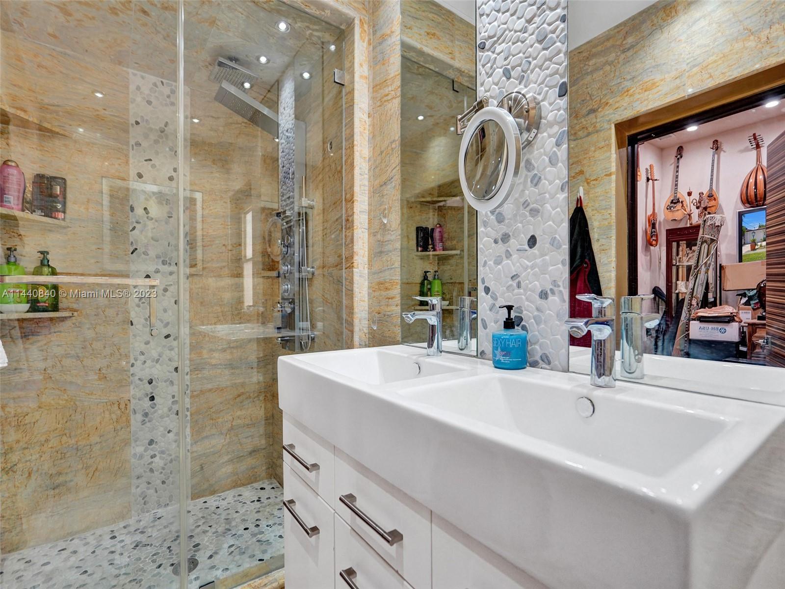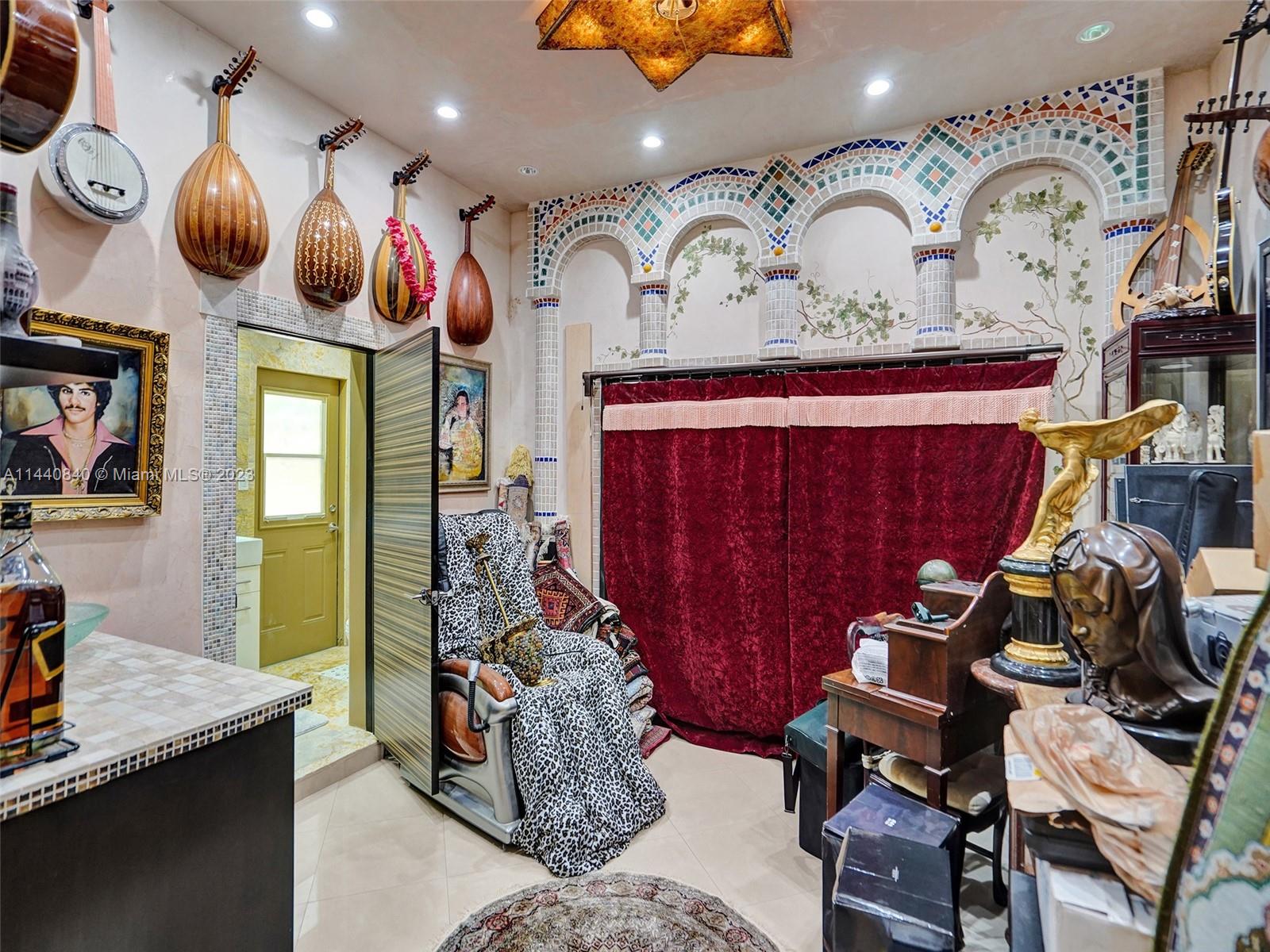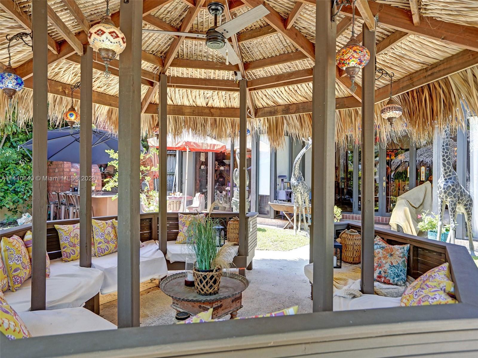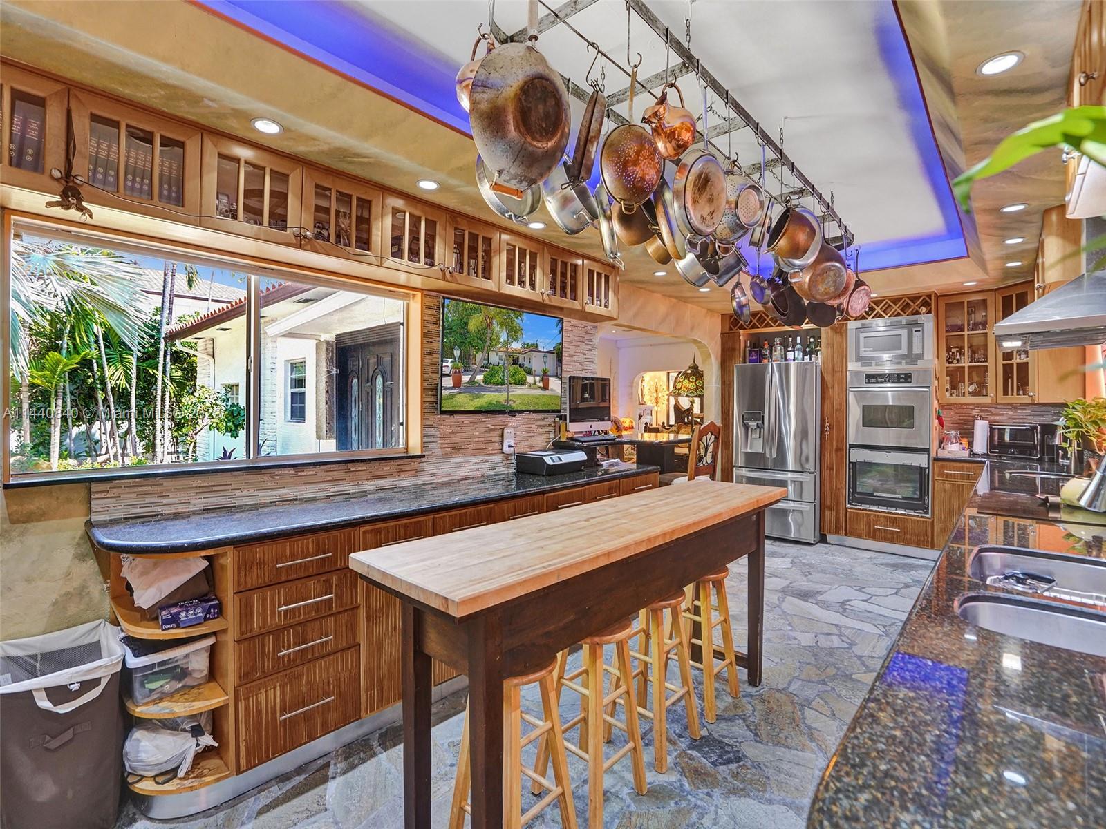 Unbelievably sought after Biscayne Point 60 ft waterfront smart home with 9ft ceilings, boatlift and only 1 bridge to the bay & ocean! Mid-Century Villa meets Moroccan Mosaic flair! Over $500K in renovations include impact windows, Bamboo kitchen, all 4 ensuite baths, full home theater projection & sound system, porcelain & field stone floors, custom solid wood doors, & electrical hurricane shutters, sprinklers & up lighting. Entertainers delight in your tropical oasis with covered tiki hut for 10 people, dining table, outdoor summer kitchen with BBQ, pizza oven. Investors will love the studio efficiency rented at $1,800 per month or use it as a guest, in-law or teenager suite! Brand new roof being installed with the potential to add 1250 sft of rooftop pleasure! All furniture negotiable.