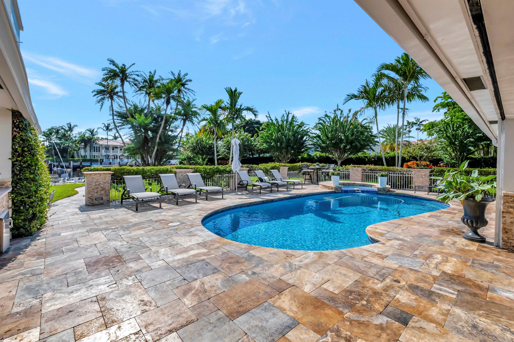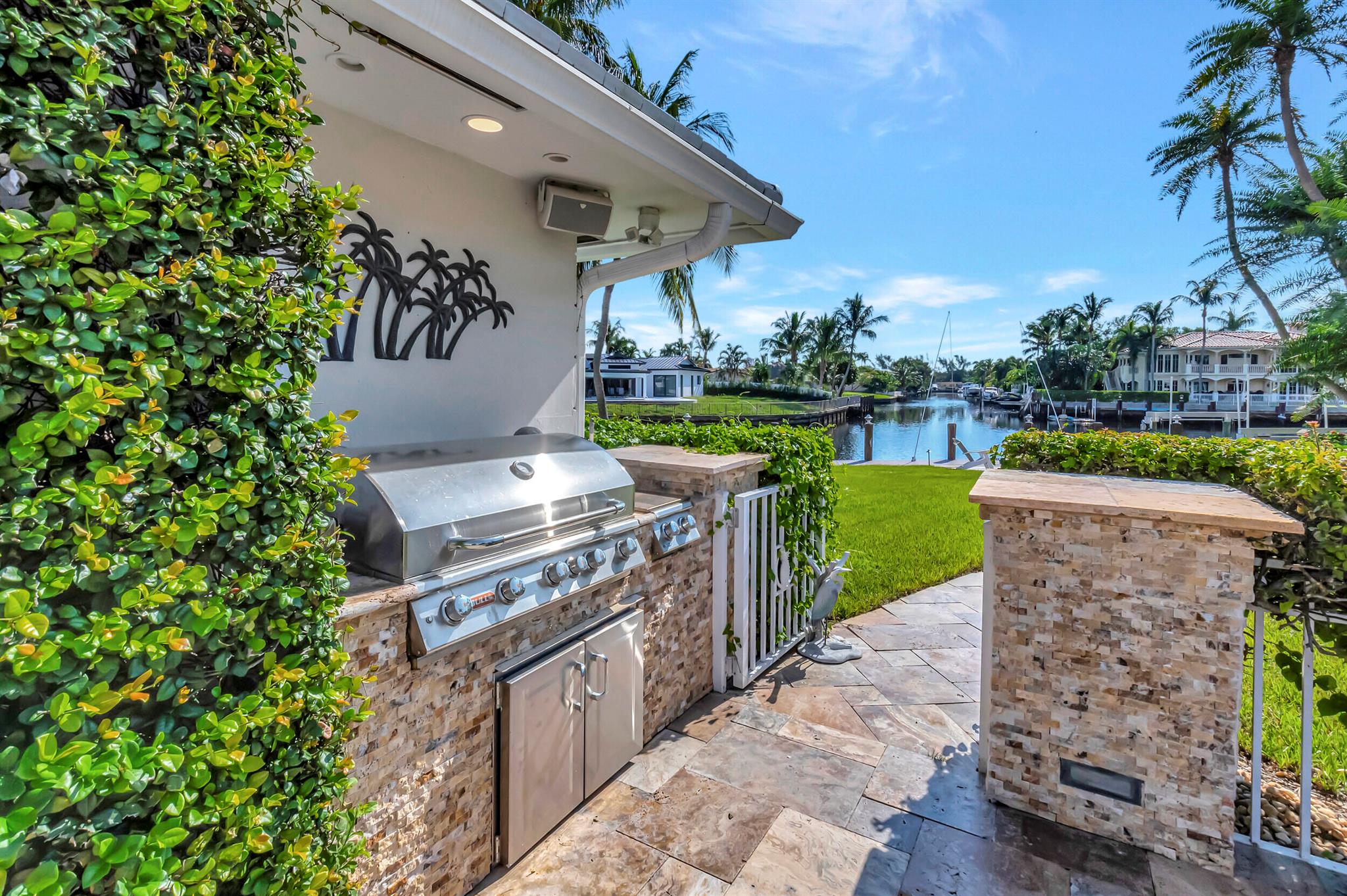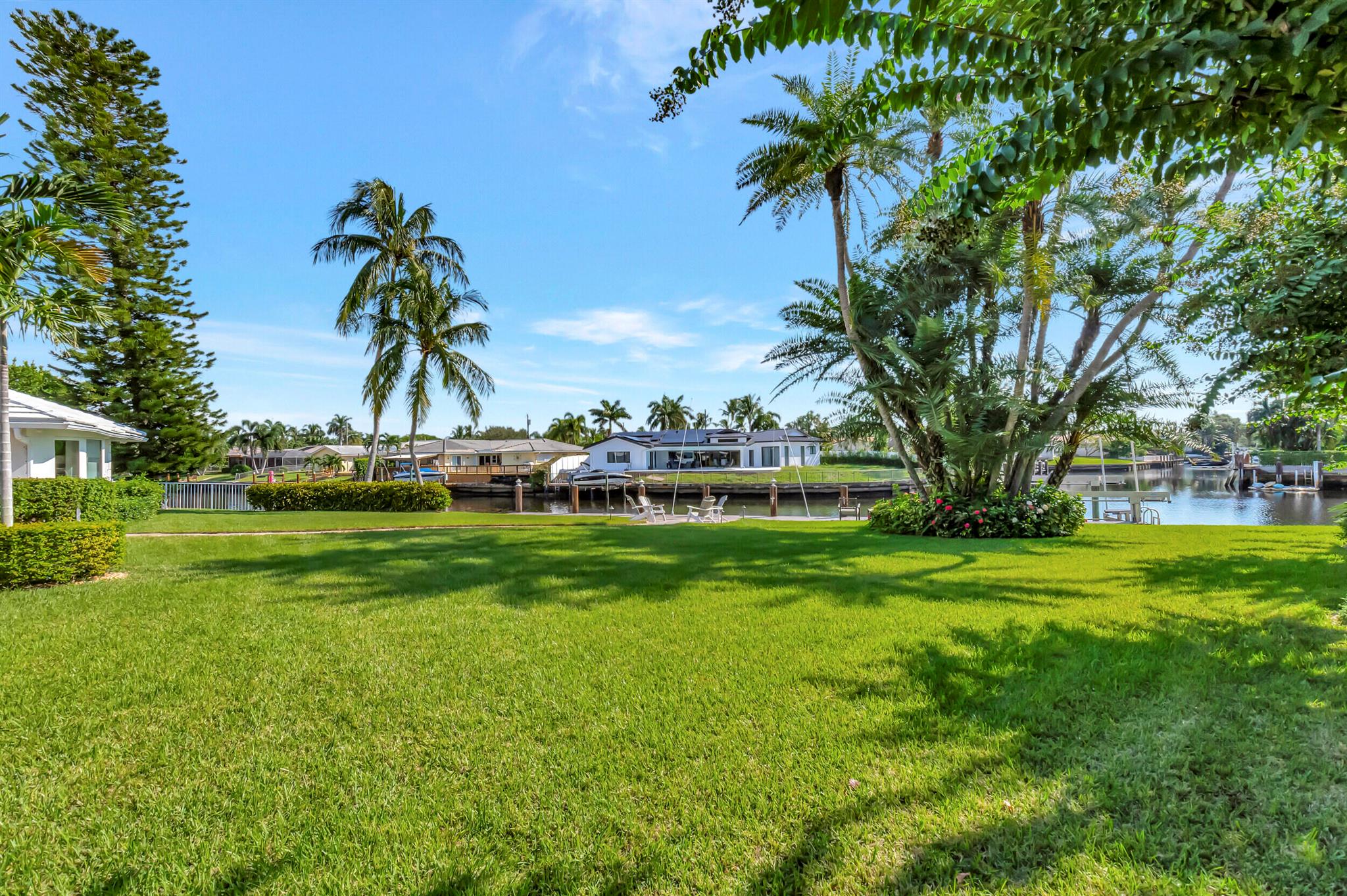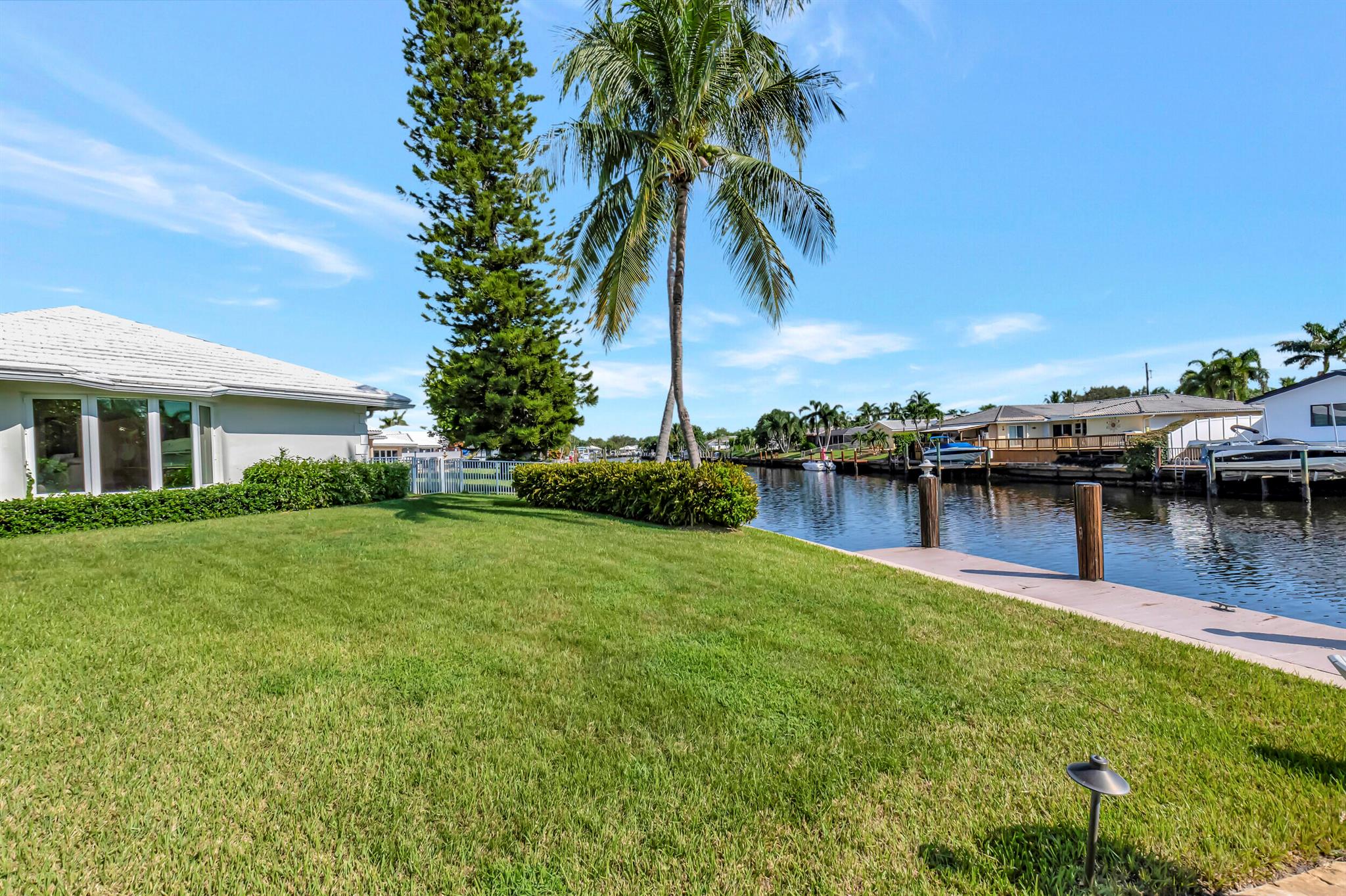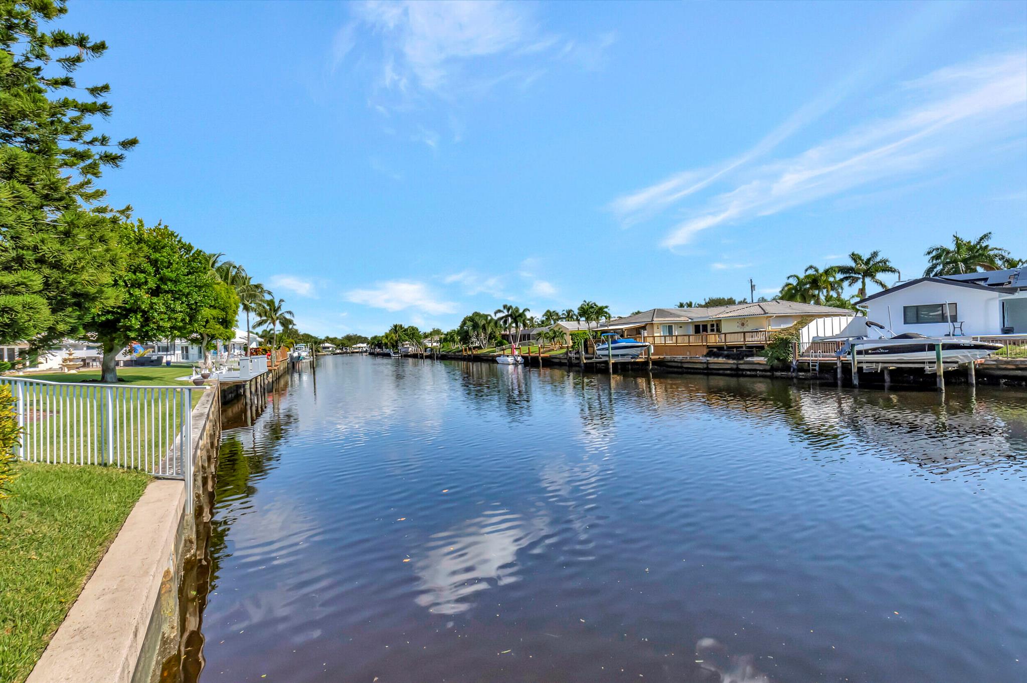 Spectacular East Boca Waterfront Gem in sought after Camino Gardens. Completely renovated in 2022. New AC systems with Nest controls installed on 4/15/24. Sprawling ranch on point lot. Five bedroom home that was converted to a 3 bedroom, includes, magnificent office with exquisite cabinetry and stone finishes. Primary suite boasts a California custom closet for him and a large separate boutique like custom closet and elegant vanity and center island for her. One of the largest Waterfront Lots off the El Rio canal on the main water in Camino Gardens, 220 Ft Seawall, Expansive Water Views , 3250 +/- A/C Sq Ft, Fireplace, Custom 2022 Kitchen featuring beautiful marble counters with waterfall edges and an expanded island. New Designer GE monogram Appliances throughout kitchen and bar