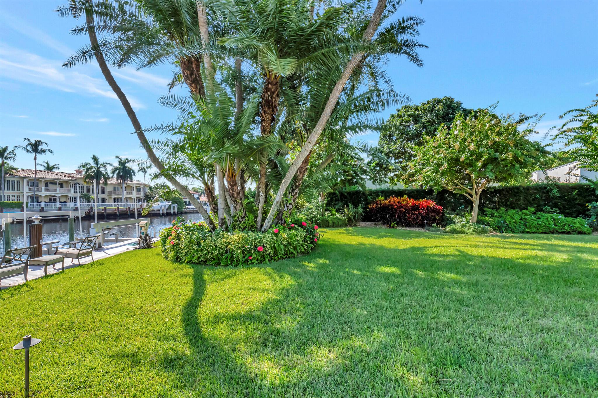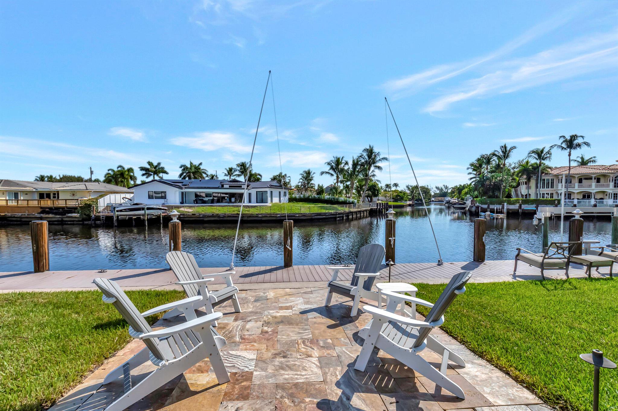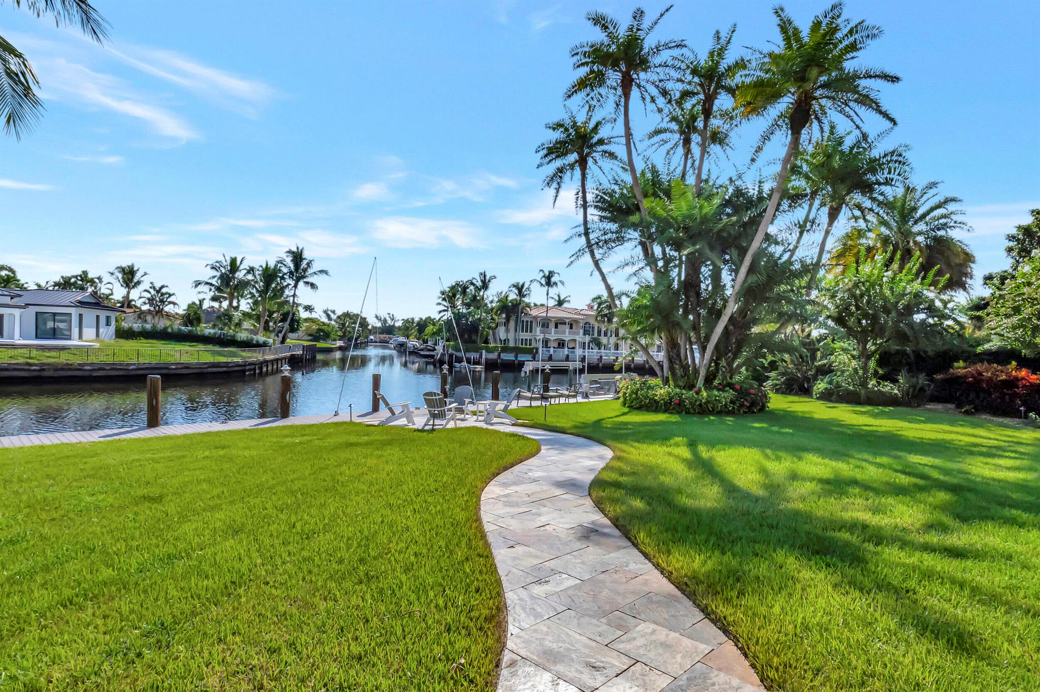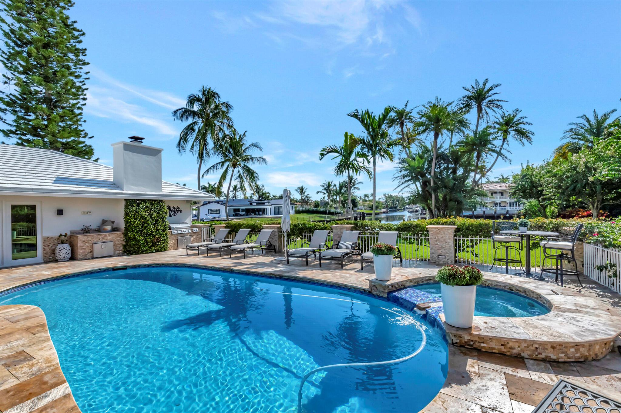 Spectacular East Boca Waterfront Gem in sought after Camino Gardens. Completely renovated in 2022. New AC systems with Nest controls installed on 4/15/24. Sprawling ranch on point lot. Five bedroom home that was converted to a 3 bedroom, includes, magnificent office with exquisite cabinetry and stone finishes. Primary suite boasts a California custom closet for him and a large separate boutique like custom closet and elegant vanity and center island for her. One of the largest Waterfront Lots off the El Rio canal on the main water in Camino Gardens, 220 Ft Seawall, Expansive Water Views , 3250 +/- A/C Sq Ft, Fireplace, Custom 2022 Kitchen featuring beautiful marble counters with waterfall edges and an expanded island. New Designer GE monogram Appliances throughout kitchen and bar