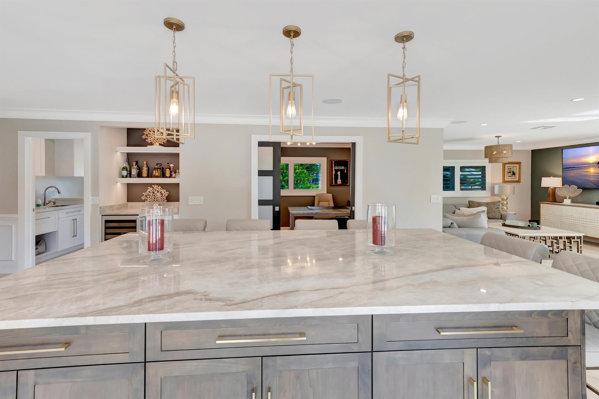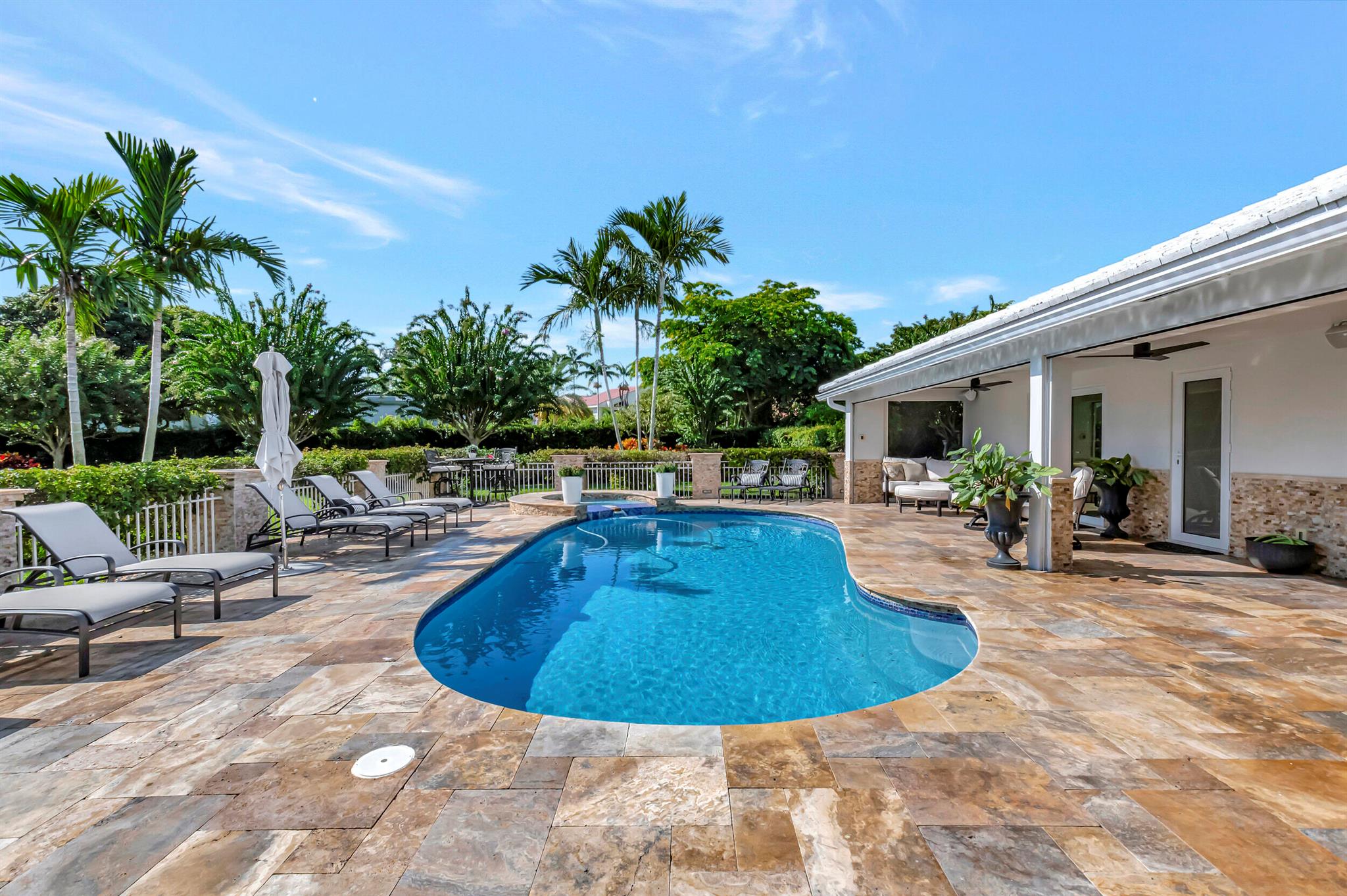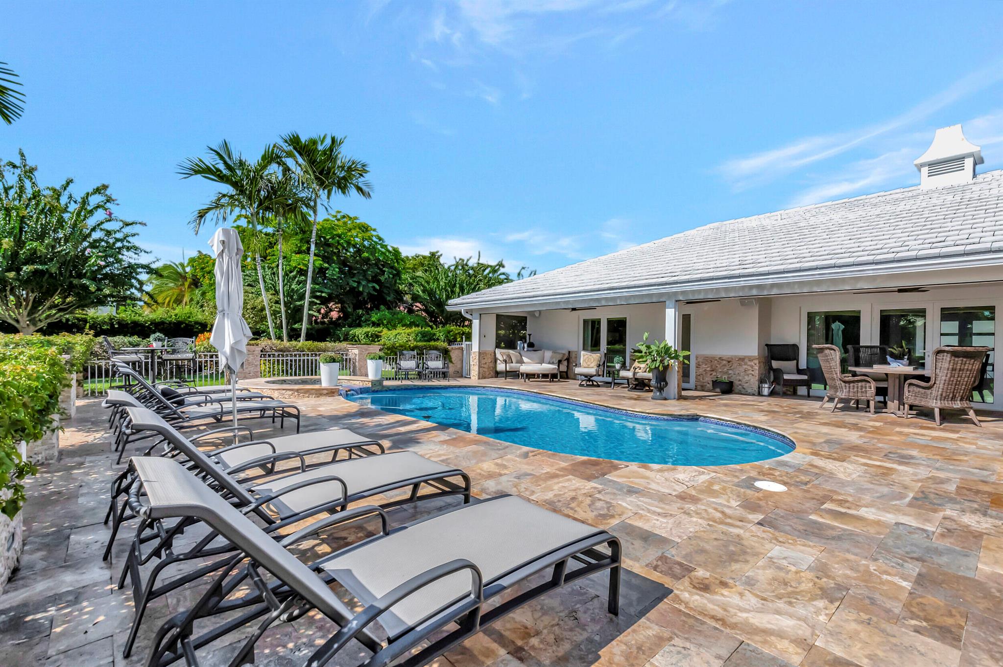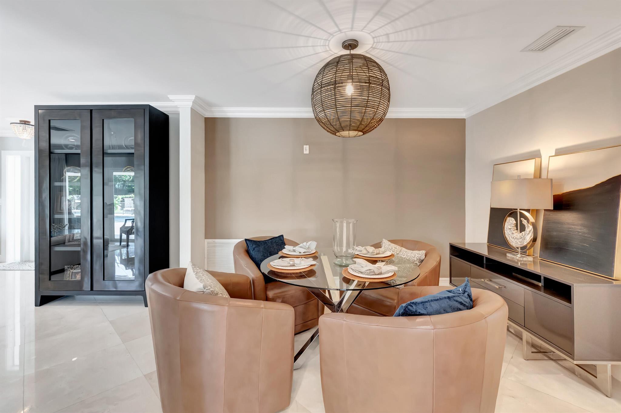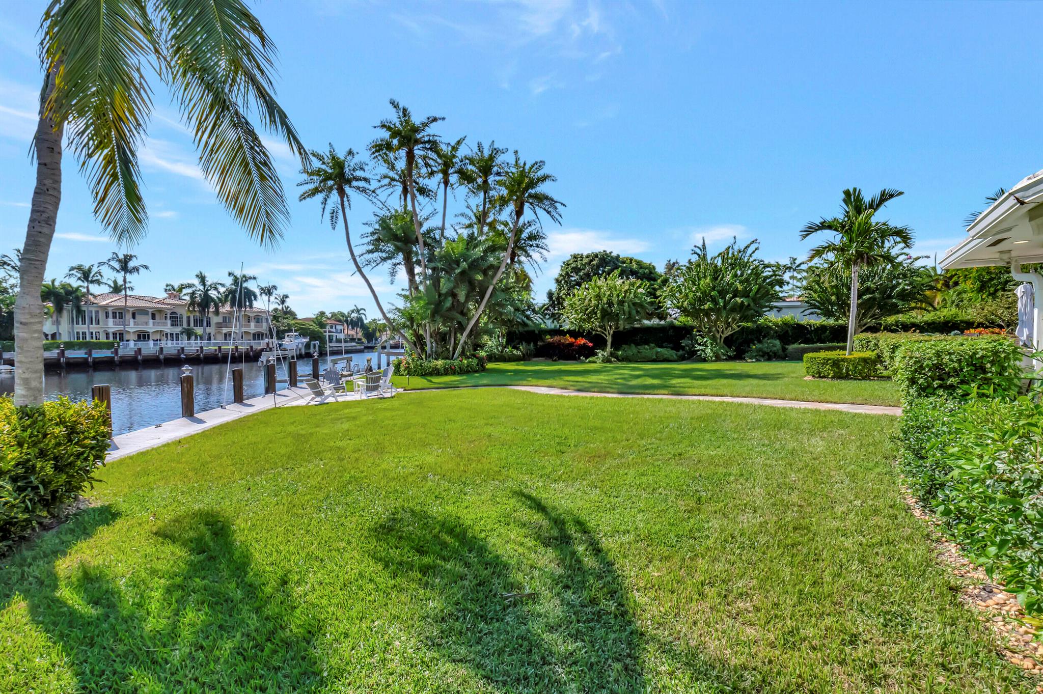 Spectacular East Boca Waterfront Gem in sought after Camino Gardens. Completely renovated in 2022. New AC systems with Nest controls installed on 4/15/24. Sprawling ranch on point lot. Five bedroom home that was converted to a 3 bedroom, includes, magnificent office with exquisite cabinetry and stone finishes. Primary suite boasts a California custom closet for him and a large separate boutique like custom closet and elegant vanity and center island for her. One of the largest Waterfront Lots off the El Rio canal on the main water in Camino Gardens, 220 Ft Seawall, Expansive Water Views , 3250 +/- A/C Sq Ft, Fireplace, Custom 2022 Kitchen featuring beautiful marble counters with waterfall edges and an expanded island. New Designer GE monogram Appliances throughout kitchen and bar