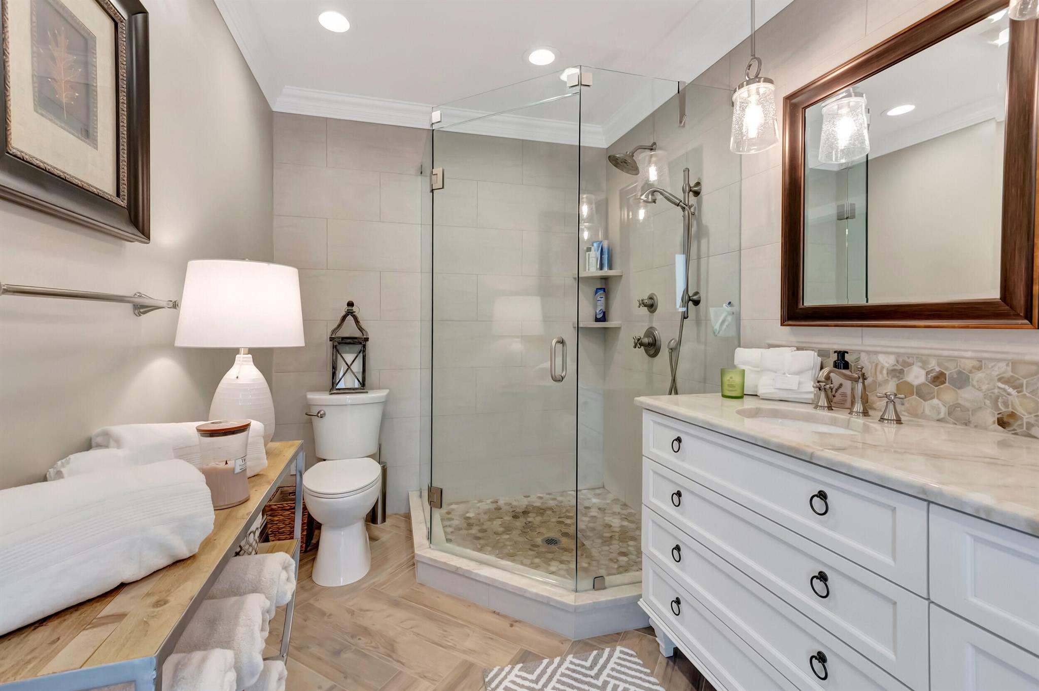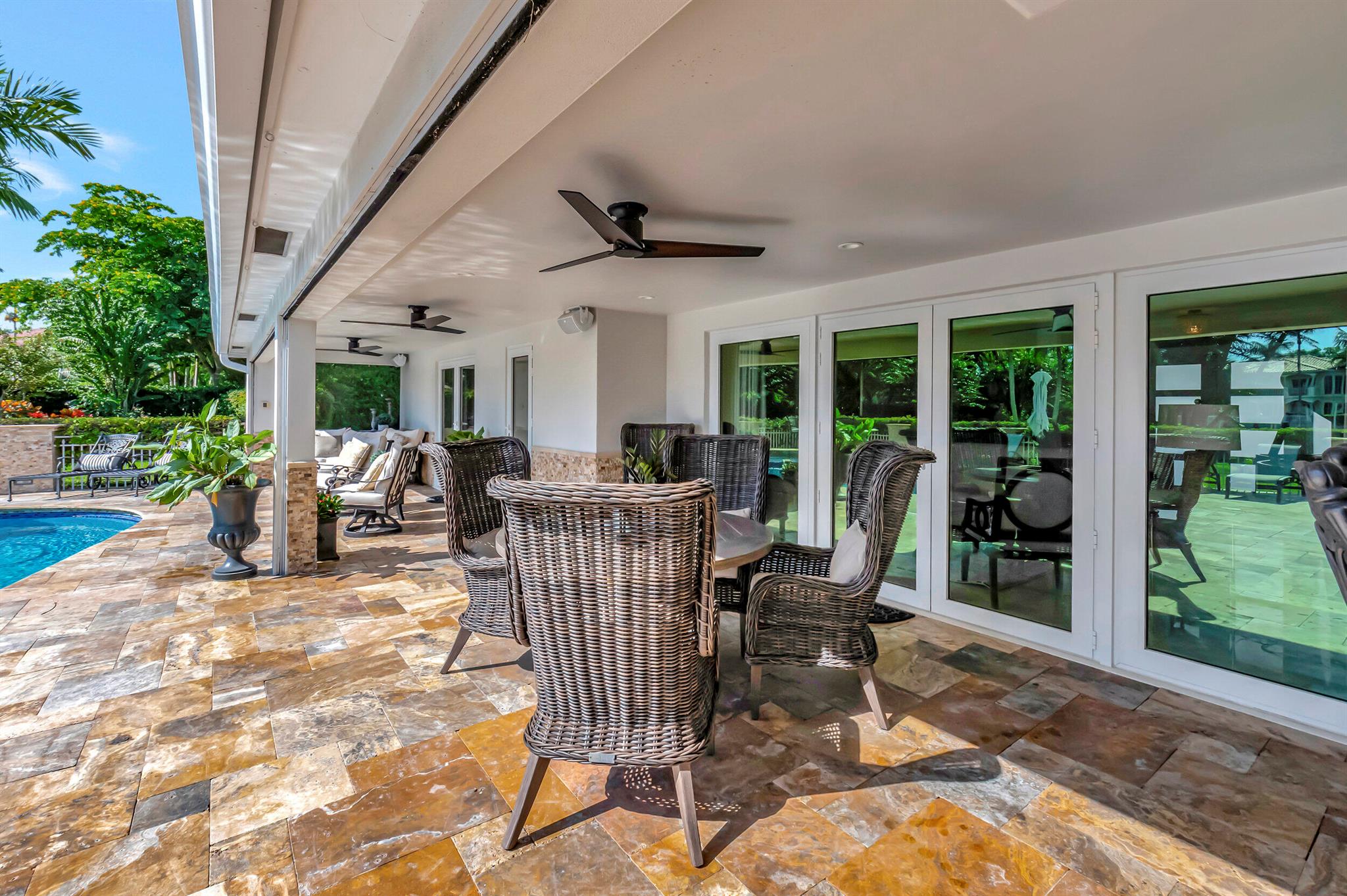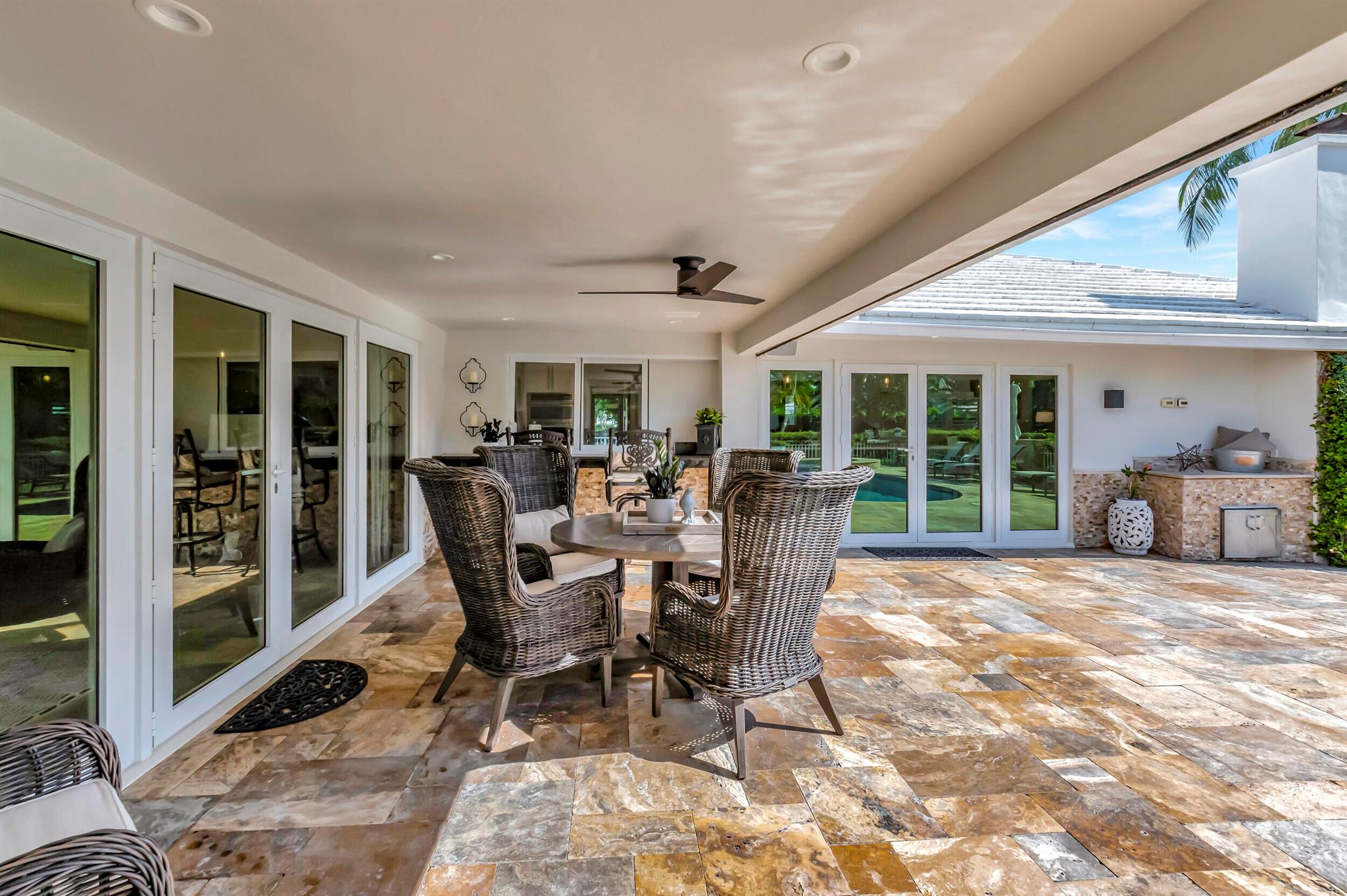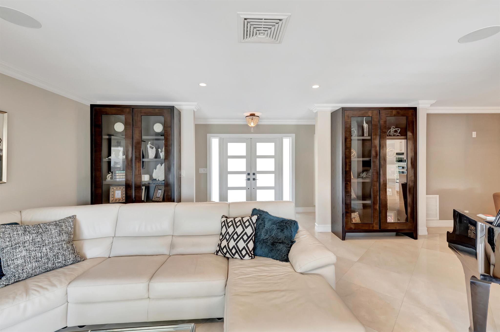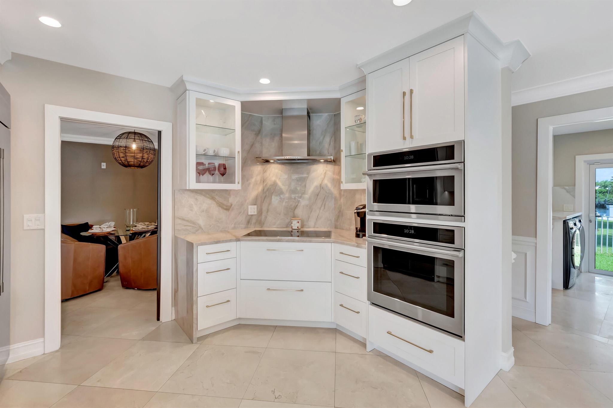 Spectacular East Boca Waterfront Gem in sought after Camino Gardens. Completely renovated in 2022. New AC systems with Nest controls installed on 4/15/24. Sprawling ranch on point lot. Five bedroom home that was converted to a 3 bedroom, includes, magnificent office with exquisite cabinetry and stone finishes. Primary suite boasts a California custom closet for him and a large separate boutique like custom closet and elegant vanity and center island for her. One of the largest Waterfront Lots off the El Rio canal on the main water in Camino Gardens, 220 Ft Seawall, Expansive Water Views , 3250 +/- A/C Sq Ft, Fireplace, Custom 2022 Kitchen featuring beautiful marble counters with waterfall edges and an expanded island. New Designer GE monogram Appliances throughout kitchen and bar