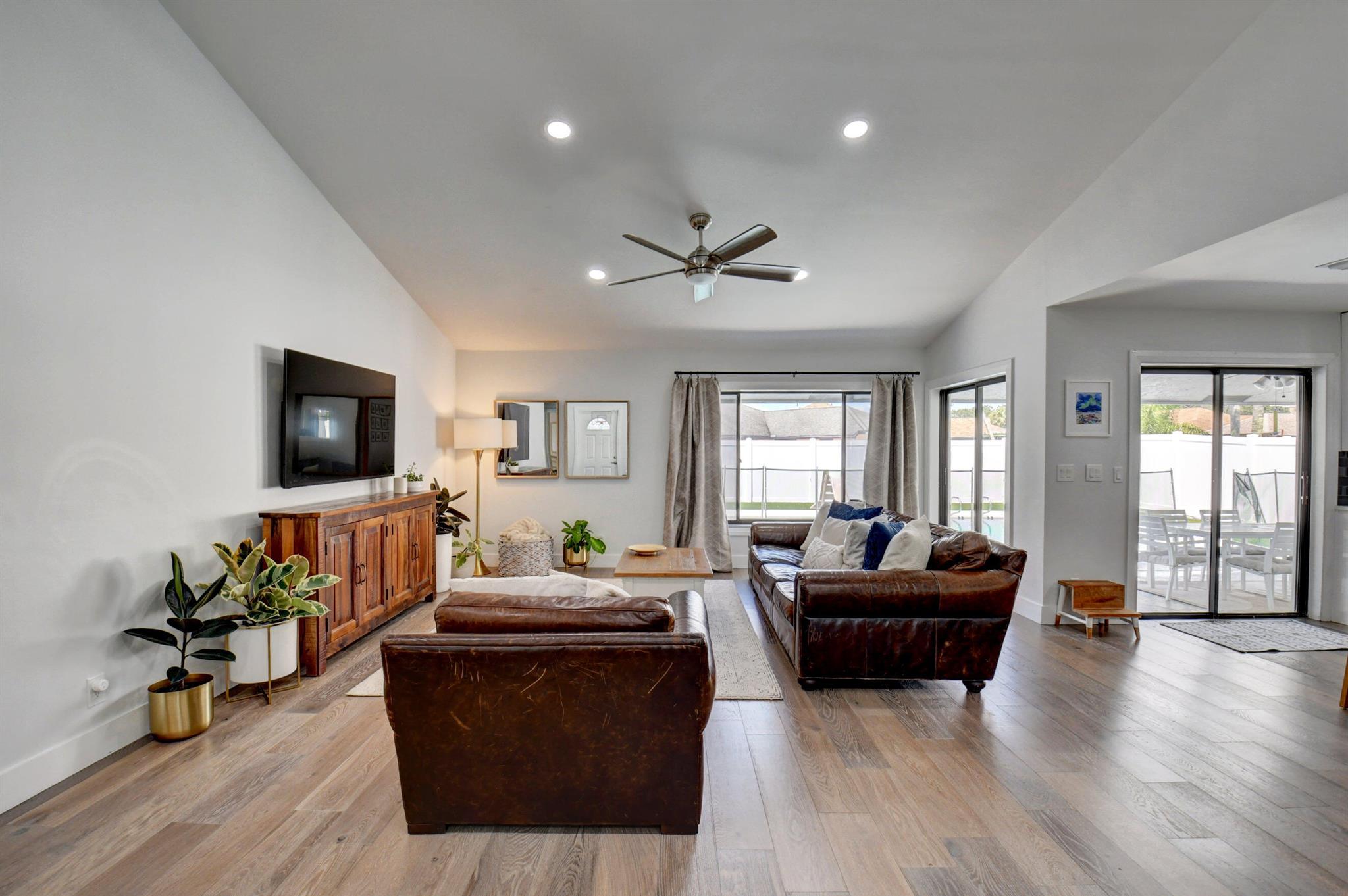 Step into comfort as you enter this newly updated spacious home. The open-concept kitchen is complete with modern appliances, sleek countertops, and plenty of cabinetry. The kitchen seamlessly flows into the living and family rooms, creating an ideal space for both everyday living and entertaining. Large windows throughout add natural light, creating a bright and welcoming ambiance. The private swimming pool is a true oasis. Whether you're looking to take a refreshing swim on a hot day or host a poolside gathering with friends and family, this backyard retreat has you covered and comes equipped with an outdoor shower and new turf throughout. This is a must see! All information pertaining to the property is deemed reliable, but not guaranteed. Information to be verified be the Buyer.