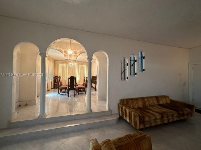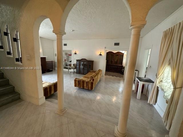 Spacious one of a kind Historical home in highly popular area of North Miami Beach. Fabulous living room with beautiful fireplace. Formal dining room can accommodate numerous guests and family. Great kitchen with extra cabinets and convenient laundry room/storage area. This three-story home has four bedrooms on second floor. Third floor room can be a fifth bedroom or office with access to a huge attic ideal for storage, playroom, hobby room, etc. Oversized 20'x40' pool surrounded by concrete walls. Approx. 1,000 sq ft garage. Home needs TLC but has a lot of potential. Easy to show!