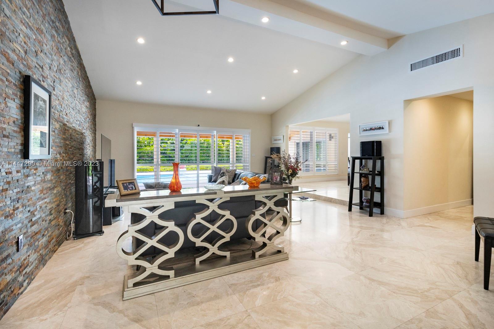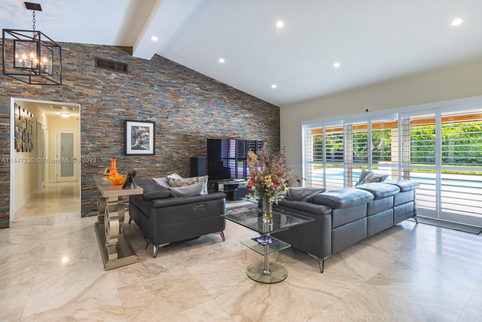 This very special central Pinecrest 4/3 family home is a top-of-the-line remodel with expensive exquisite finishes, excellent taste, and a practical well thought-out floor plan. All work fully permitted and approved and customized within the last 10 years including: metal roof, CGI impact glass windows and doors, marble and porcelain floors, vaulted ceilings in great room, plantation shutters, large laundry room and more. Gorgeous large kitchen w/Wolf & Subzero appliances, Cambria quartz, and tons of cabinetry and storage. Beautiful new bathrooms including a master bathroom fit for the most discerning buyer. Fully rebuilt pool-patio area with special non-slippery Ivory Pearl marble floors (that do not get hot in the sunshine!) and plenty of yard space too. All Pinecrest schools.