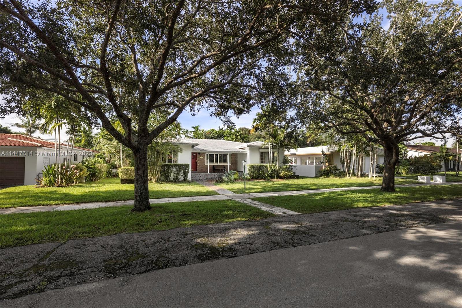 Lovely mid-century home on a quiet, tree-lined street in Miami Shores- a lush residential neighborhood just minutes north of Downtown Miami. Light-filled living spaces feature wood & Cuban tile flooring. Spacious formal living with brick fireplace + formal dining and family rooms. Additional home features include: large kitchen/ w snack bar, laundry room, 1 car garage + 2 car carport & complete storm protection (impact + shutters). Expansive, fenced back yard (8625 SF lot) with wood deck, ideal for outdoor living & dining. Ample room to expand or add a pool. Walking distance to shopping & dining in the Miami Shores Village district with quaint churches, library & tranquil parks.