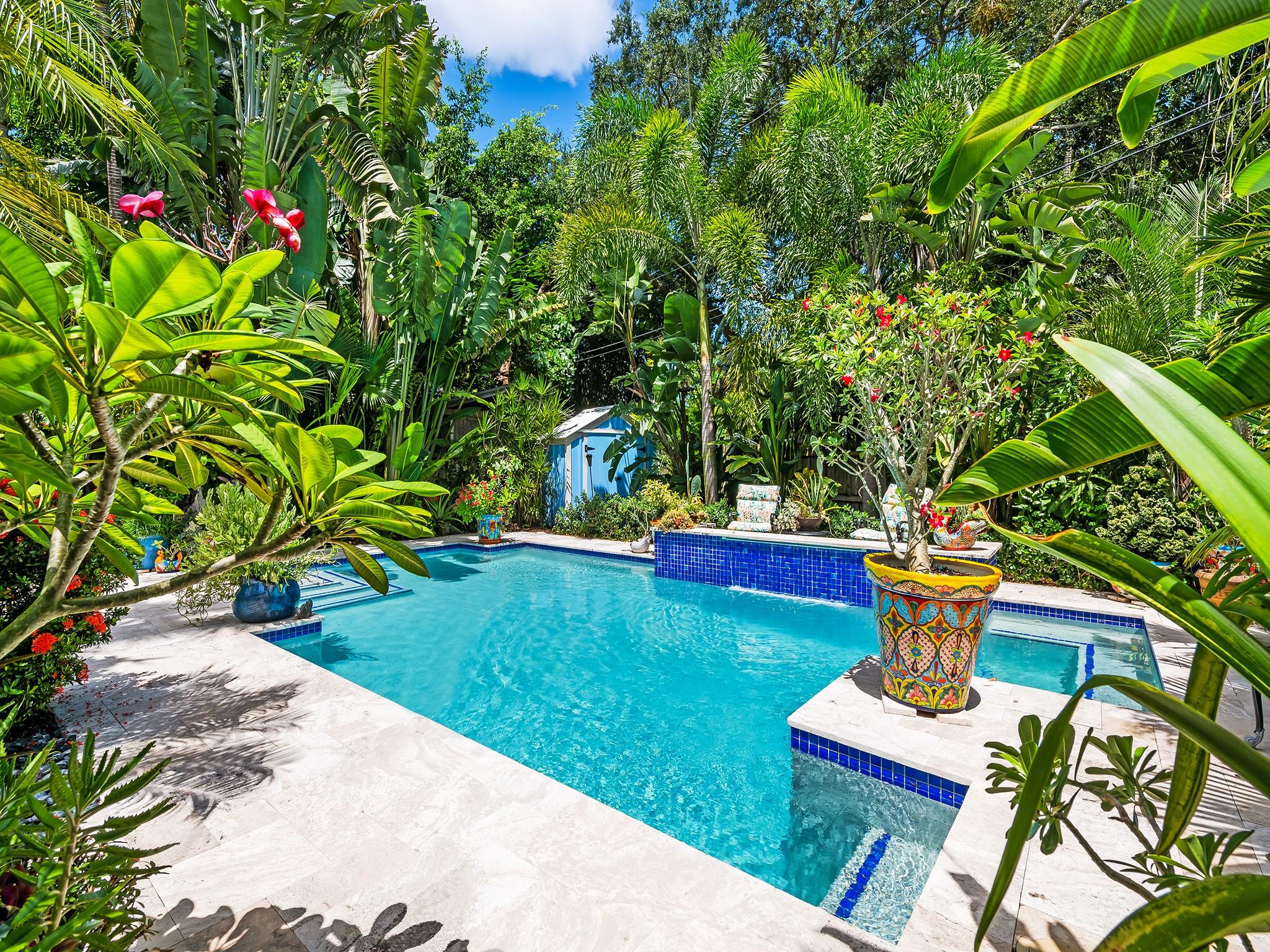 Every element of this home has been custom designed & updated to cultivate today's modern & open concept lifestyle. Embrace elevated living with designated smart house technology, luminous spaces enhanced by hurricane impact windows & doors, a culinary kitchen with upgraded appliances & an enormous center island. The spacious primary suite offers a large custom walk-in closet & lavish bathroom, 2 additional guest bedrooms share a full bathroom. Multiple doorways bridge interior & exterior settings, integrating the natural tropical settings. Experience the best S. Florida has to offer in the lush backyard featuring an oversized sized heated salt water chlorinated pool with a spa bench & cascading waterfall. Detailed feature list of all upgrades & exclusions available. Sq. Ft. From IMAPP.