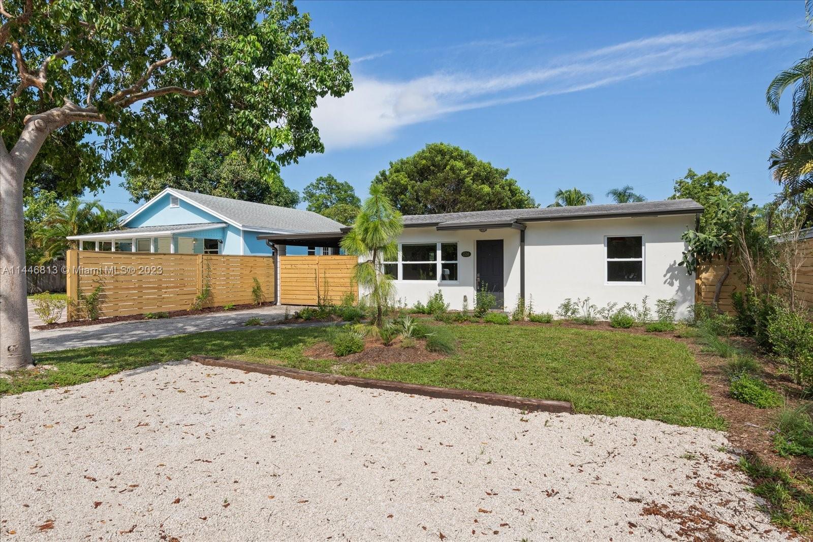Welcome to this updated mid-century gem in the heart of Ft. Lauderdale! This 3 bed/1 bath home is a rare find with its iconic terrazzo floors, updated kitchen (2018) & bath (2020) and oversized lot with room for a pool. This home also boasts a newer AC (2016) & roof (2016), along with hurricane impact windows & doors (2019) and new exterior paint & stucco (2021), providing peace of mind and energy efficiency. Create your own oasis with the new environmentally friendly, biodiverse landscaping. Location couldn't be better in sought after South Middle River – you're just minutes away from "The Drive" in Wilton Manors and Flagler Village. Other features include a carport, shed, fully fenced yard with custom built meat smoker. Enjoy worry free living with an included one year home warranty!