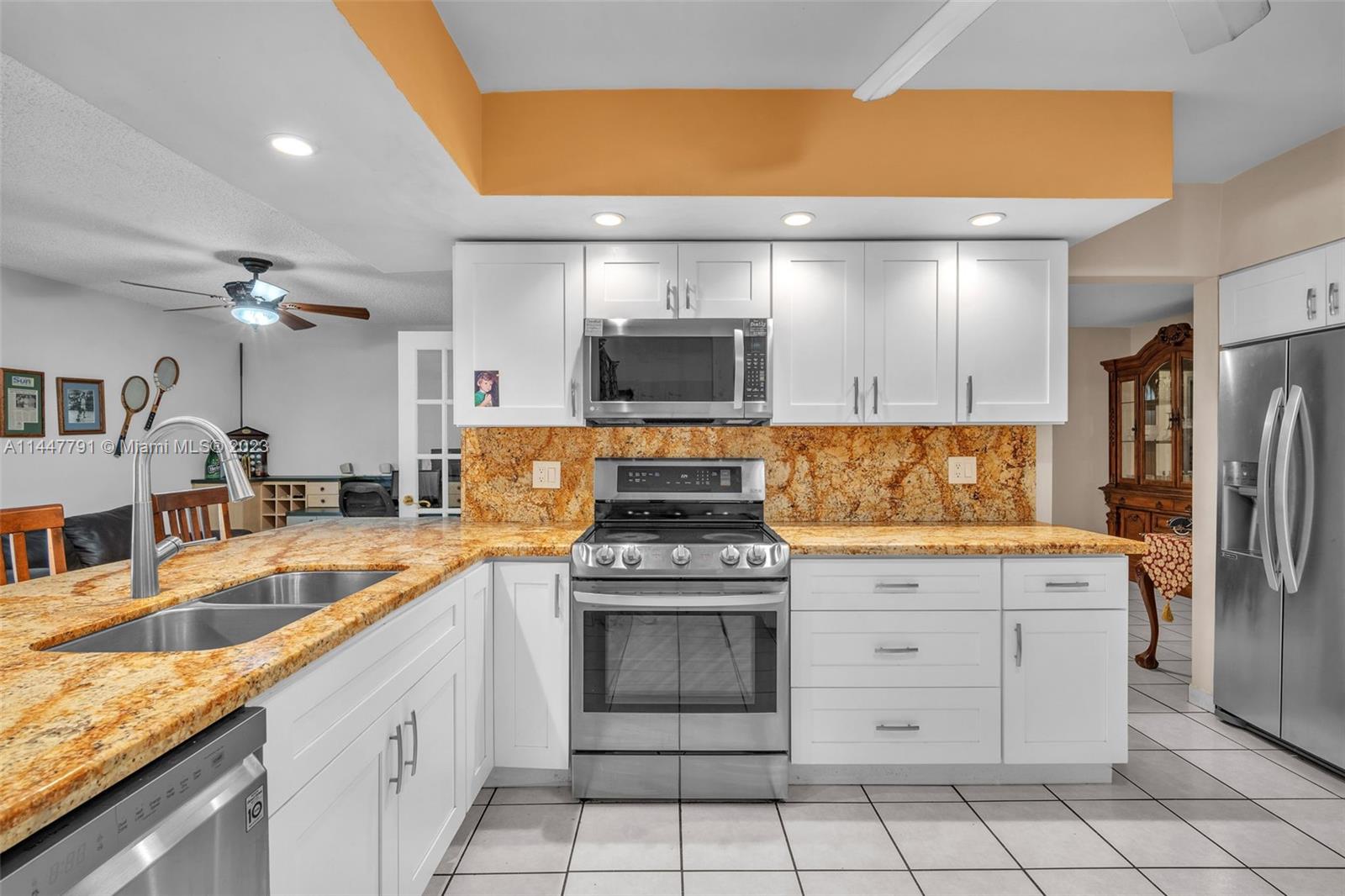 This gorgeous home is located in the desirable Hollywood Hills, offering three bedrooms, two bathrooms, a family room, NEW CENTRAL AIR (2024), and a spacious 328 SQFT great room with a working fireplace. The kitchen has been recently updated with beautiful white cabinets, granite countertops, and stainless steel appliances, providing a modern and sleek look. Additional features include a laundry-utility room, over 250 SQFT of covered patio, privacy fence, and two-car garage. The home has impact windows and a tile roof, making it storm-ready. The location is very convenient, within walking distance of schools, shops, and restaurants. You will be just minutes away from the beach and Hard Rock Hotel. This home is perfect for a buyer who appreciates spaciousness, comfort, and modern amenities.
