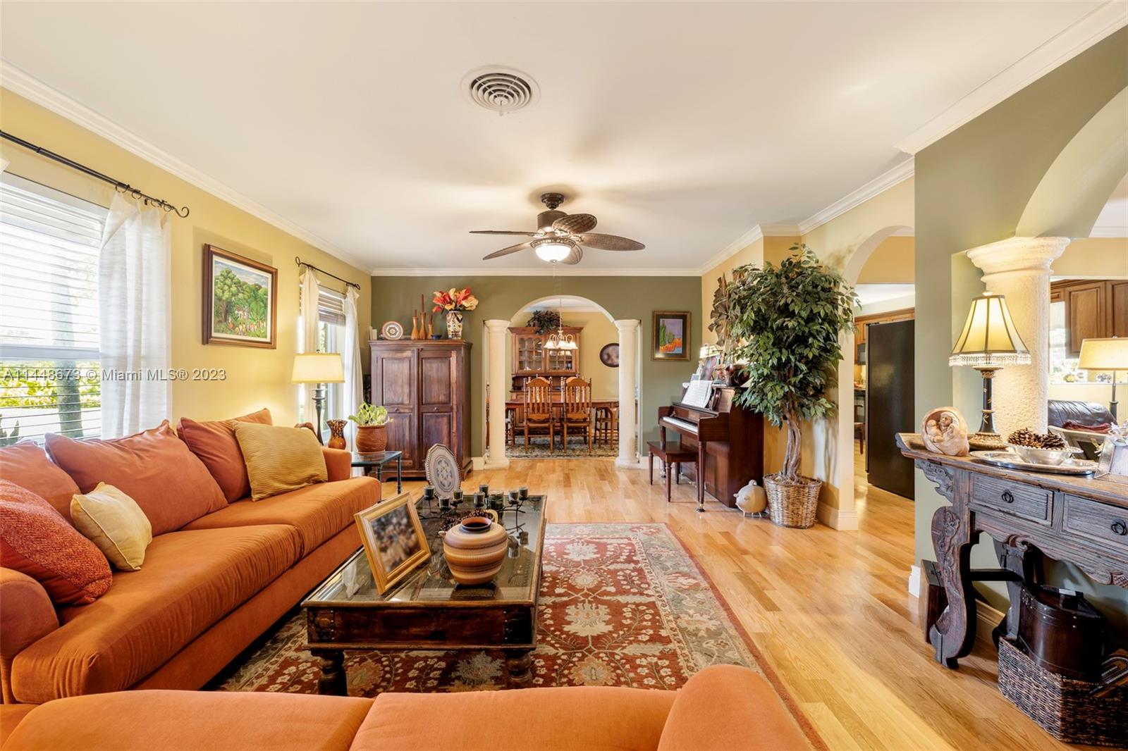 In the sought-after Pinecrest estate on a large motorized lake! It provides residents with picturesque water views, creating a serene and calming atmosphere. Four bedrooms, two baths, an oversized pool, a covered terrace, and a spacious yard create an ideal setting for outdoor entertainment. The garage is a valuable addition for parking and storage. Impact Windows through the house. Having a lake at your doorstep opens up various recreational opportunities, from boating and fishing to kayaking and paddle boarding.
