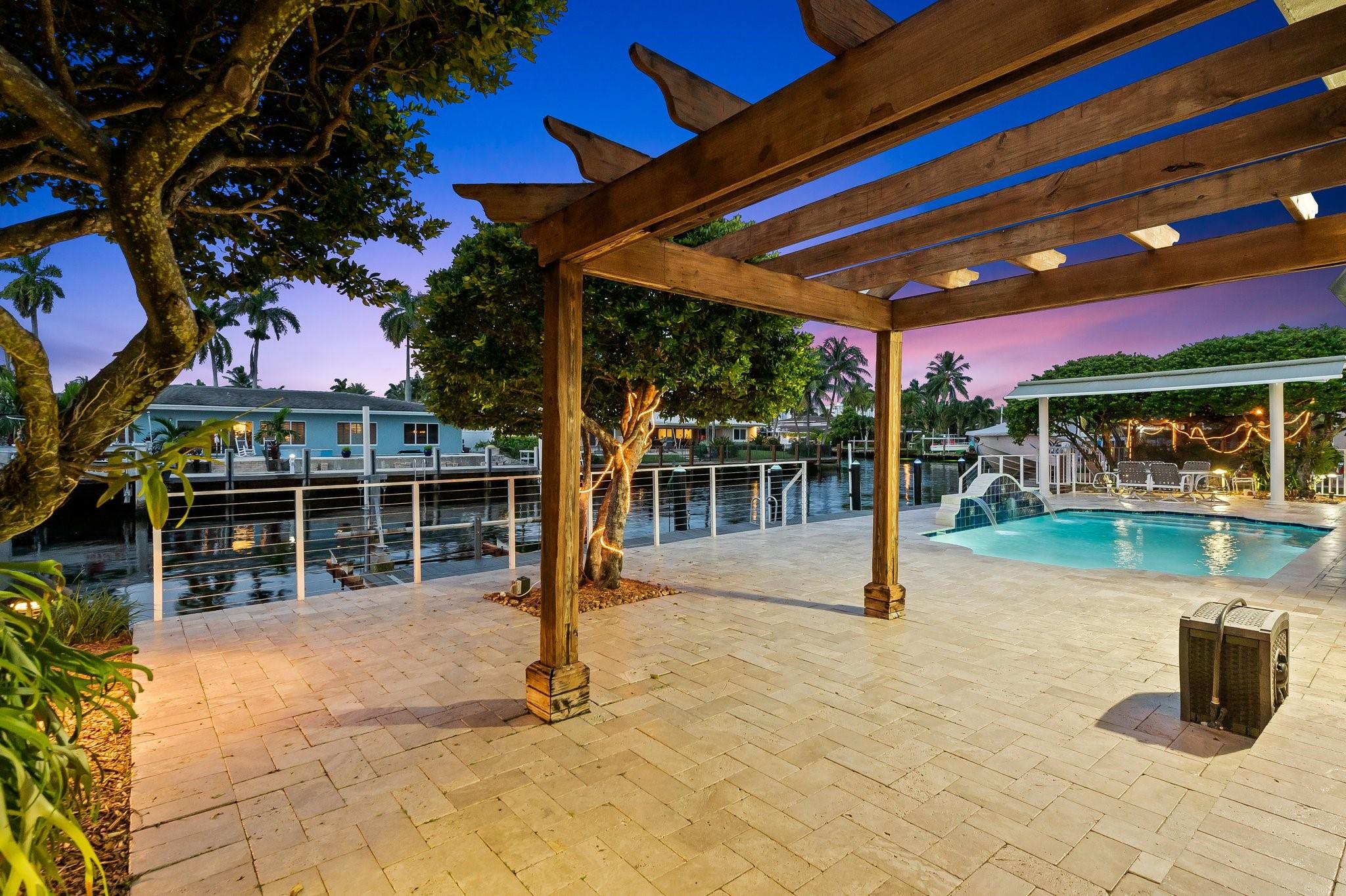Builder owned 80 ft wide lot on wide deepwater canal with no fixed bridges- 9 lots from the intracoastal! 3/3.5 -2985 SF of living space+2cg. Open kitchen with high end custom cabinets, gas stove+ granite tops. Oversized primary bedroom with three closets. 2nd/3rd bedroom suites offer separate bathrooms. Office with French doors to living area. Built in closet wine cellar. Cypress tongue +groove ceilings & real oak flooring in many of the living areas. Wood burning fireplace. Two central A/C systems. Clay tile main roof with copper flashing and upgraded based roofing paper- new flat roof in 2022. Beautiful outside area for entertaining. Salt water pool & expandable canvas awning to cover tumbled marble deck. Upgraded landscaping! Paver circular driveway. 30KW gas back-up generator.