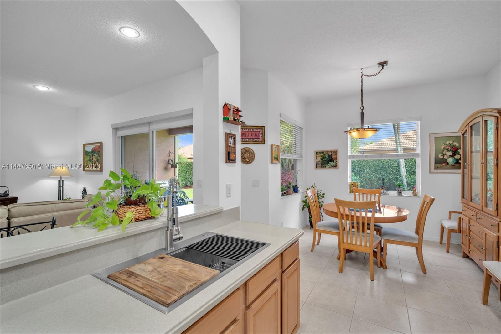 Exquisite 1 story residence 3 bed 2 bath in the magnificent gated community of Isles at Weston nestled in a huge, peaceful and quiet cul-de-sac, this home overlooking a serene and well-kept garden features more than $ 60K in upgrades- bright-modern and spacious kitchen with lots of storage space with S.S. sink & E. appliances + breakfast room. Neutral & elegant ceramic flooring throughout -Renovated Bathrooms. A.C Rheem 14.5 SR R 2014- Overhead car Garage safe rack storage. Garage flooring High Gloss Epoxy Paint- New Sprinkle System 4 control section. Accordion Shutters all windows and patio. Owner since day one. The inviting clubhouse has 2 renovated resort style pools, great gym, playground, social areas and more. Top rated schools and easy access to major highways. Do not miss this one.