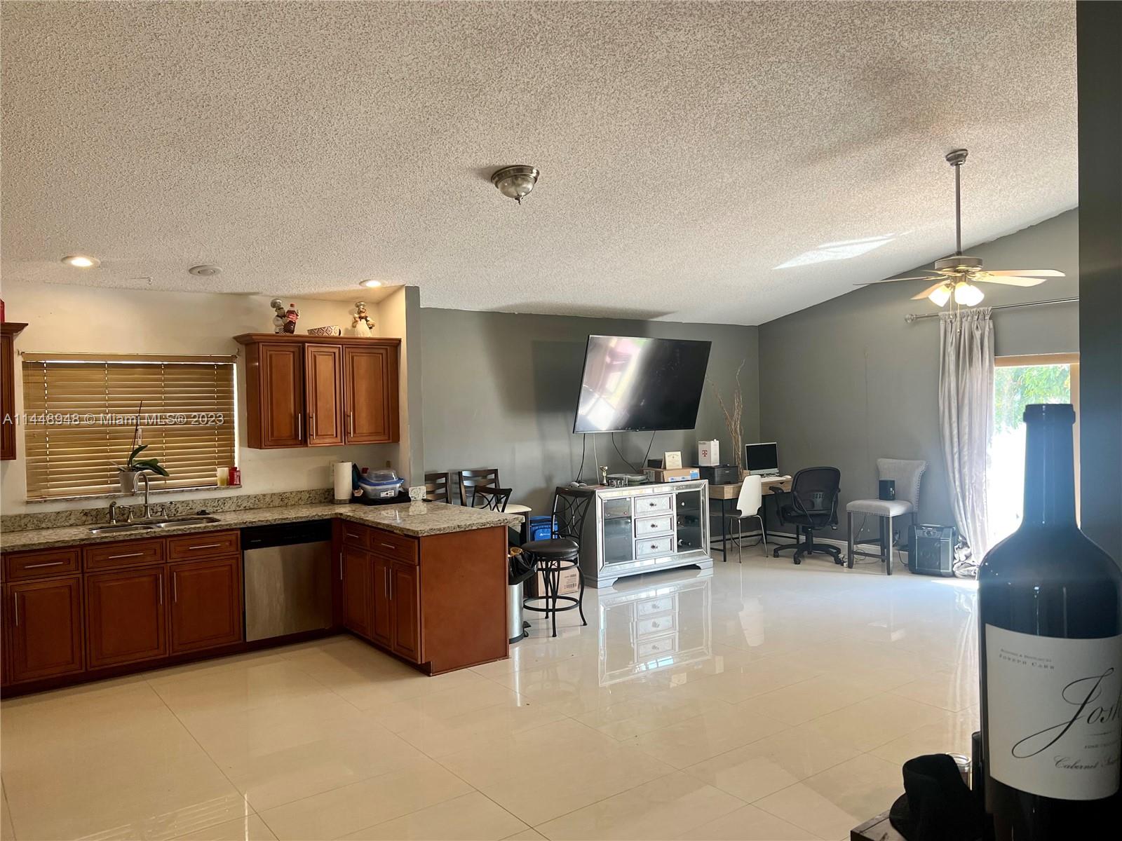 Beautiful updated one-story Lakefront Home in River Run! Home features 3 bedrooms & 2 baths and 2-car garage with well over 1,900 SQFT. Newer Roof(2018) Porcelain tile flooring in main living area and wood flooring in formal areas and in all the bedrooms. Home has a great open floor plan perfect for entertaining with volume ceilings and separate formal Living and dining rooms and a huge family room. The eat-in kitchen has been fully remodeled (2018) with upgraded new wood cabinets, granite countertops and stainless-steel appliances. Large backyard with beautiful water views perfect for get togethers. This home is centrally located near good schools, shopping malls, highway, park, and quick access to Miami and Fort Lauderdale airports and Beaches. A great opportunity make it yours!