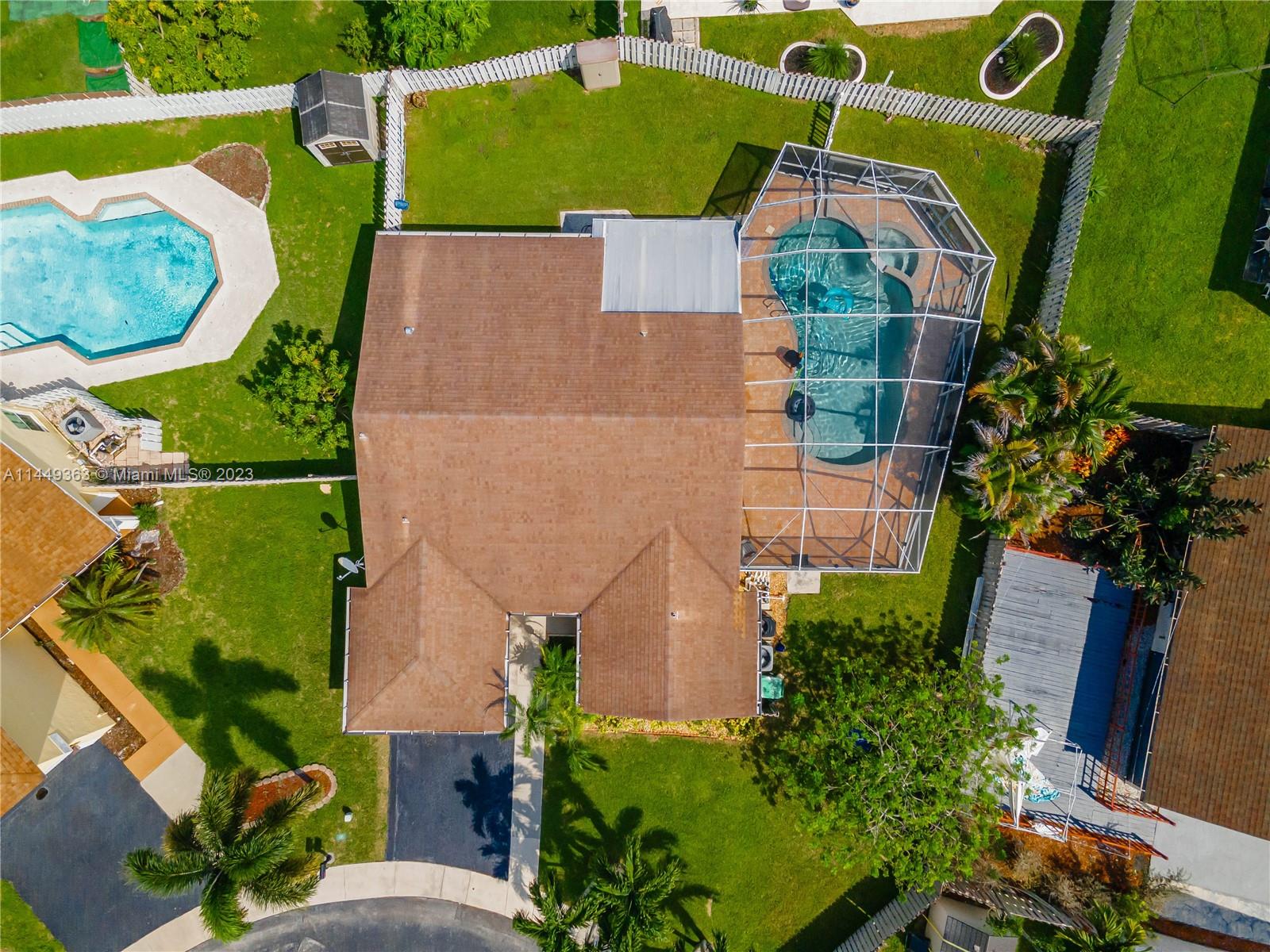 Your dream home in Davie! Located in a Cul-De-Sac, consisting of 3 bedrooms (Split floorplan) and 2 bathrooms. Beautiful screen enclosed, pavered backyard perfect for entertaining, enjoying the pool w/heated jacuzzi or relaxing at the lanai. Vaulted ceilings, upgraded kitchen, marble countertops and stainless steel appliances, Impact windows + Accordion shutters, lots of natural light. The garage has been partially converted. Low HOA. Less than five minutes from I-595, community park, shopping centers and entertainment. Less than 30 min from both MIA and FLL airports. This sale is subject to Probate. Don’t miss your chance!