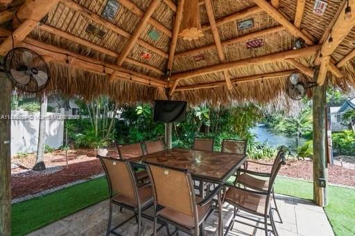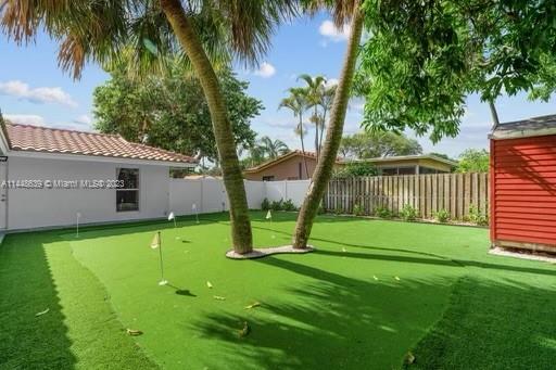 Beautiful, upgraded, lakefront mini resort. located in the heart of east Boca. Charming cathedral ceiling and grand sliding doors, incredible 1500 SF screened entertainment area, heated pool with two cabana baths. Convenient outside access from all rooms. Newly refinished kitchen, 12-seat island, artistic touches & creative storage. plenty of space for entertaining family and friends. Outside lake view which can be enjoyed from fire pit or custom-made 14x14 tiki hut (2020) or mini-golf area. low-maintenance synthetic turf, planting areas fitted with sprinkling system. Double garage, shed in the back yard with storage for hobbies. Inviting feel is reflected in all rooms. Primary bedroom suite features custom built-ins.1/3-acre lot. New roof 2019. AC 2014. Minutes to downtown and beach.