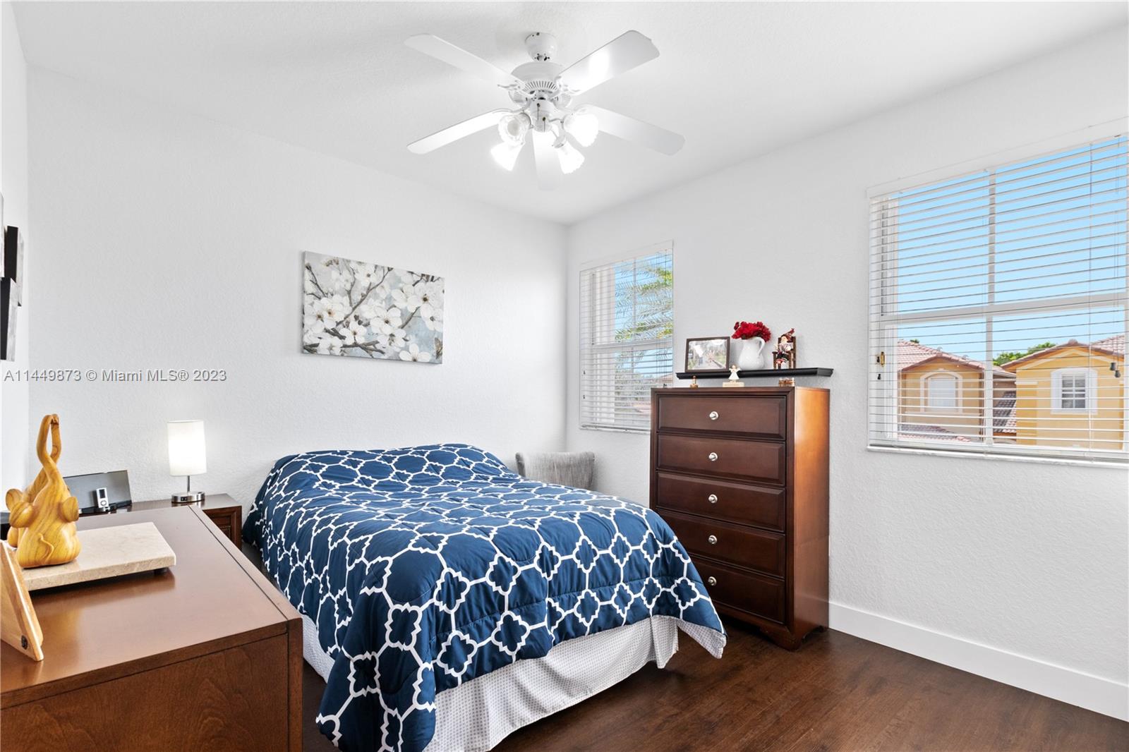 This modern townhome offers 4 bedrooms, 3 baths, with a convenient 1 bedroom and bath on the first floor. The property features elegant porcelanato flooring throughout and a beautiful kitchen with granite counters and a new refrigerator, Comfortable bedrooms, built-in closets for ample storage, laundry room, 2 car garage, patio, accordion shutters. This community offers a range of amenities, including a pool and gym. Plus, it's located in a top-rated school district, making it ideal for families.