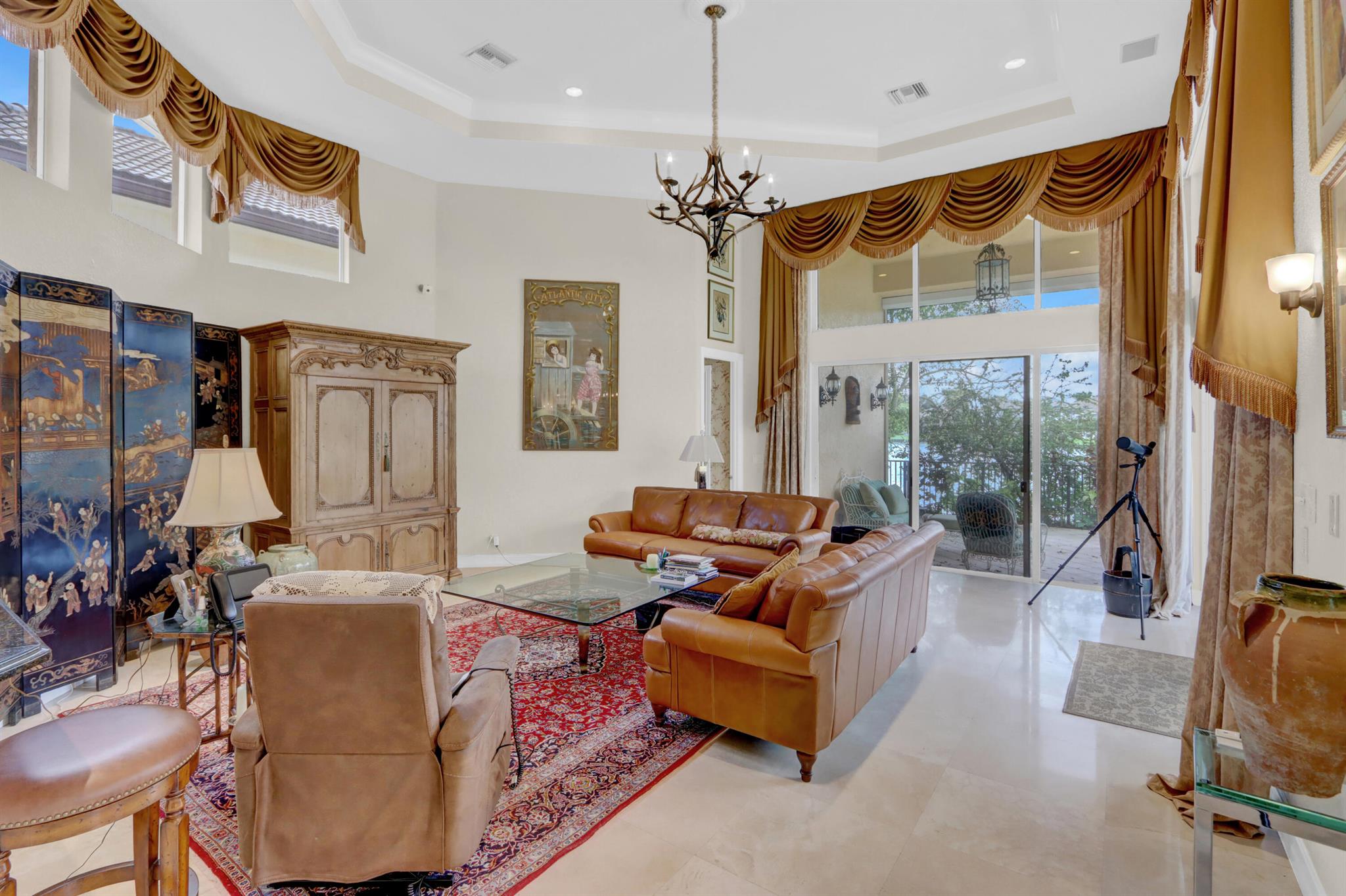 GOLF MEMBERSHIP TRANSFERABILITY! Don't miss this opportunity to play golf immediately! Lake views fill this sprawling custom one-story estate of Mediterranean old-world charm with 4 bedrooms plus an office,hobby room, 3-car garage & circular driveway featuring volume ceilings with crown moldings; Saturnia marble, hardwood & luxury vinyl floors; plantation shutters, wood blinds & custom shades; spacious Living Room with a fireplace & wet bar; elegant built-in library; island kitchen with white 42' cabinetry,black granite countertops & backsplash & a lovely breakfast nook overlooking the pool area & lake. The rear patio offers spacious open, covered & phantom screened areas with an oversized pool & spa and beautiful lake vistas!