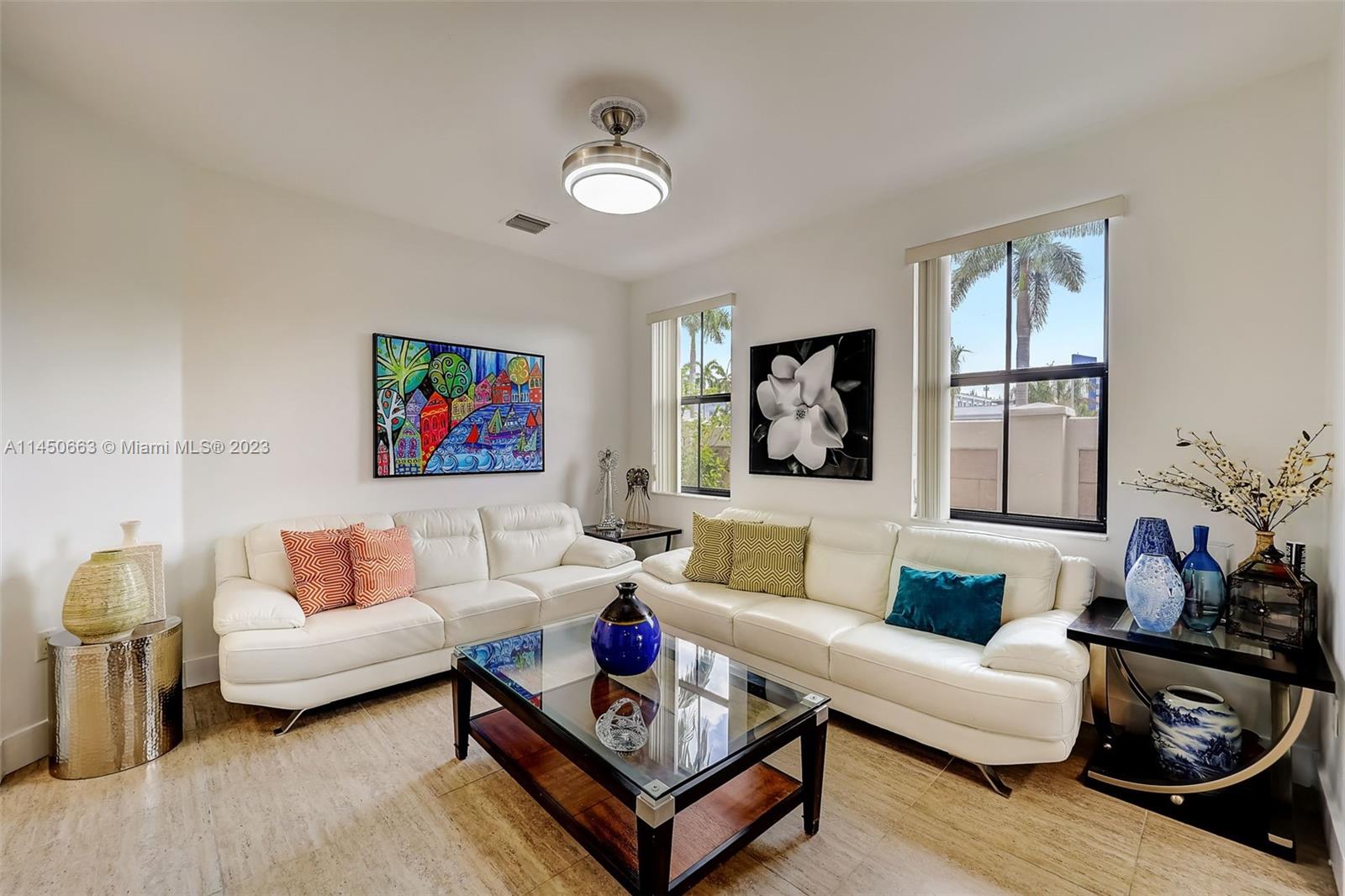 Property in the sought-after Doral Cay community. 1st floor boasts a spacious living, dining, kitchen & family room, along with a half-bath & a welcoming patio. Upstairs, find 4 bedrooms: Master suite+lavish bath/walk-in closet, a secondary en-suite, +2 cozy rooms sharing a large bathroom. 2 enclosed garages +4 extra spaces. On a private cul-de-sac near the main entrance and a stunning clubhouse. Host gatherings or savor the poolside BBQ, jacuzzi, lake view, fully-equipped gym, sauna, games room. Prime location: Near Florida Turnpike, Palmetto Express Way, Divine Savior School, & other institutions, Aldi, Publix, Sedanos, restaurants, Juan Valdes cafe, Orange Theory Gym, major banks, pet clinics and more. Nearby walking/biking paths amidst a unique wetland reserve. Truly a gem!