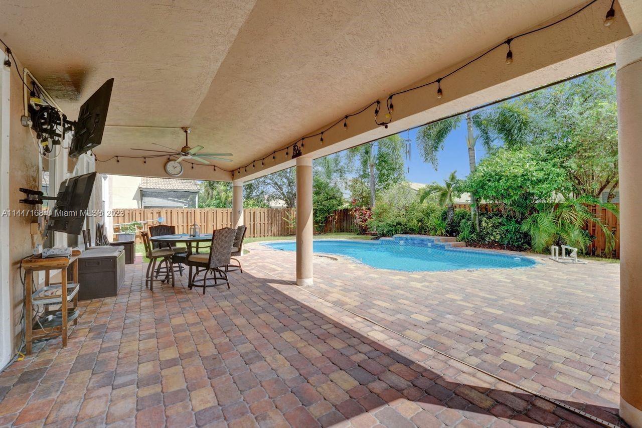 Corner lot paradise! Welcome home to this 2-story, 4BR/3BA pool home. Plenty of room for kids & pets to play. Renovated kitchen w/2022 appliances, quartz counters, new lights, white cabinets & prep island. Room to entertain indoor or outdoor. Step inside: vaulted ceilings, large formal dining area & living area. Natural gas stove, grill, & water heater. 2022 AC. Large master suite w/dual sinks, roman tub, separate shower & vanity area. Jack & Jill bath new dual sink vanity & lighting with tub/shower. 1st floor guest suite w/new vanity & lighting. Laundry room w/new cabinets, sink & washer/dryer. Outdoor features: fenced-in yard, fire pit area, covered porch w/fan & TV hookup. Pool has new pump, motor, vacuum & safety net. Gated community. Amenities incl. pool, clubhouse & tennis courts.