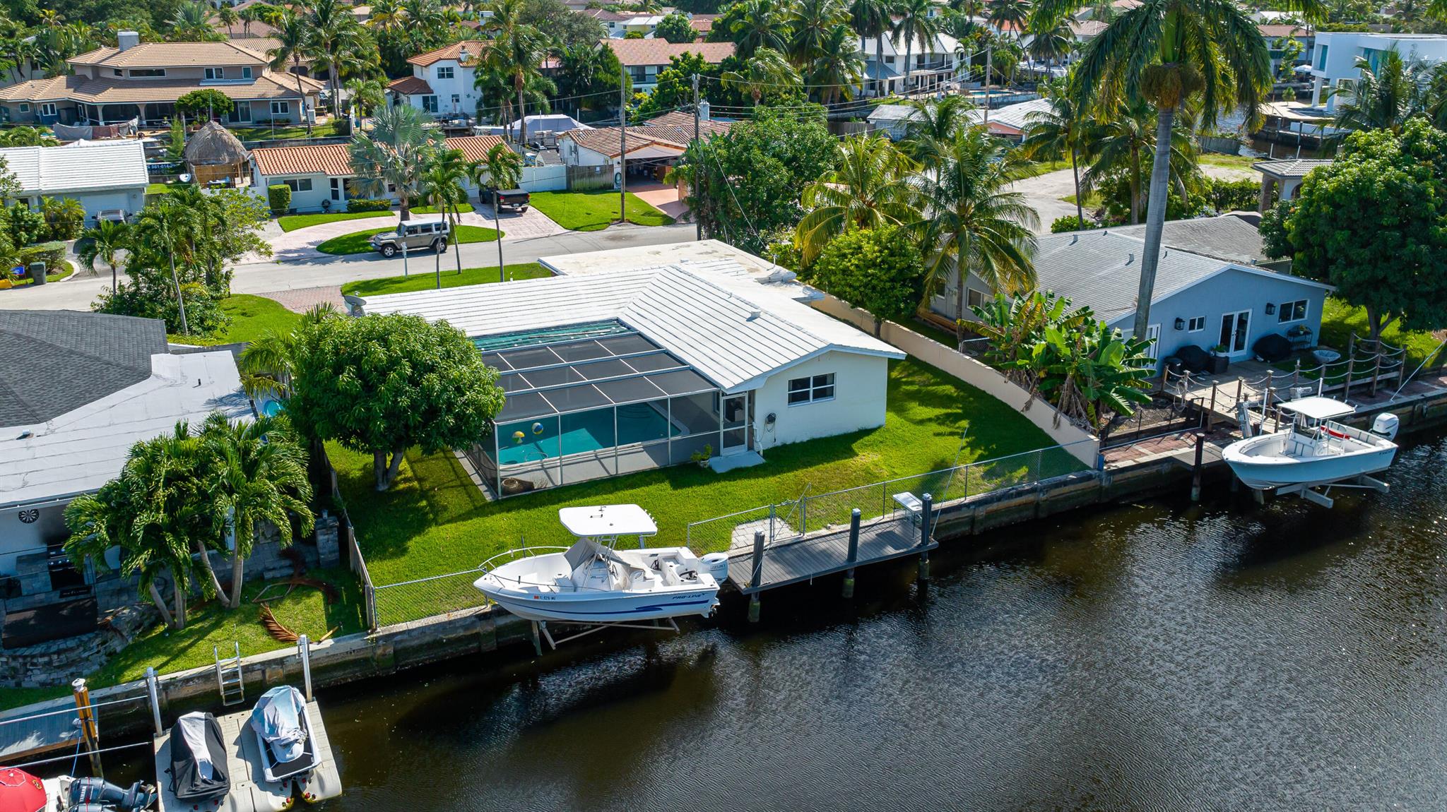 BOATERS DREAM WITH WATER VIEWS FROM THIS ORIGINAL 3/2 POOL HOME IN BOCA ISLANDS. YOUR BOAT WILL HAVE OCEAN ACCESS ON A 8000 SQUARE FOOT LOT WITH 80 FEET OF SEAWALLED WATERFRONT, ON A PEACEFUL CANAL. THE BOAT LIFT HOLDS 10K LBS AND IS PAIRED WITH A NEW DOCK. IMPACT WINDOWS AND DOORS THROUGHOUT, AND A CONVERTED GARAGE FOR EXTRA SPACE. QUIET CUL-DE-SAC STREET IS MINUTES AWAY FROM DOWNTOWN BOCA RATON, MIZNER PARK, NEW BRIGHTLINE TRAIN STATION (CONNECTING YOU FROM MIAMI TO ORLANDO.) FAMILY FRIENDLY NEIGHBORHOOD WITH A+ RATED SCHOOLS AND NO HOA FEES. THIS IDEALY LOCATED BOCA RATON NEIGHBORHOOD IS GOING THROUGH A MAJOR TRANSITION, WITH MANY NEW MULTI-MILLION DOLLAR WATERFRONT HOMES CURRENTLY BEING BUILT.***THIS HOME IS IN ORIGINAL CONDITION, AS-IS CONTRACT ONLY***