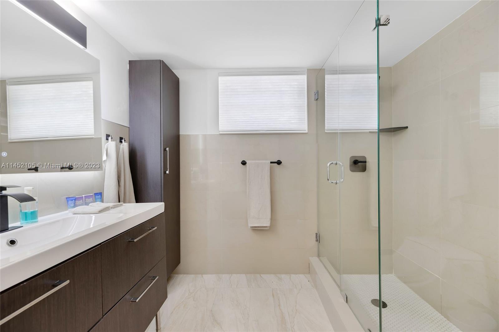 This modern home sits on a spacious lot (10,850 sq ft) in a picturesque Miami neighborhood. The exterior is characterized by clean lines, a contemporary design, and lush tropical landscaping. Upon entering the house, you step into a welcoming foyer with ample natural light. The kitchen is a chef's dream, with high-end stainless steel appliances, a large island with a built-in cooktop, and quartz countertops. It features custom cabinetry with plenty of storage space, a walk-in pantry, and a breakfast bar. Centrally located, this modern-contemporary retreat resides in the heart of Miami, minutes from Bal Harbour Shops, Sunny Isles Beach, and Aventura. After a morning play of mini soccer or golf, cool off in the pool. Currently, it is tenant-occupied until January 31, 2024