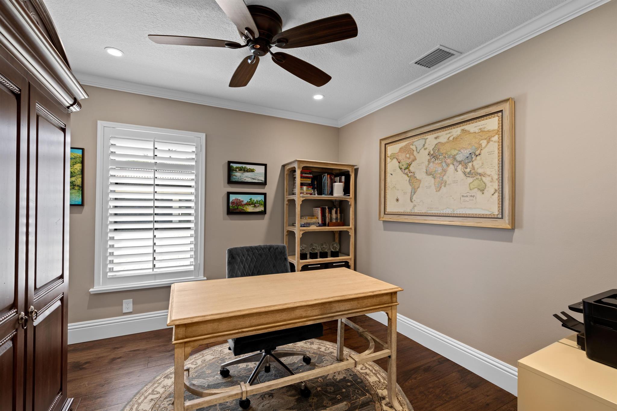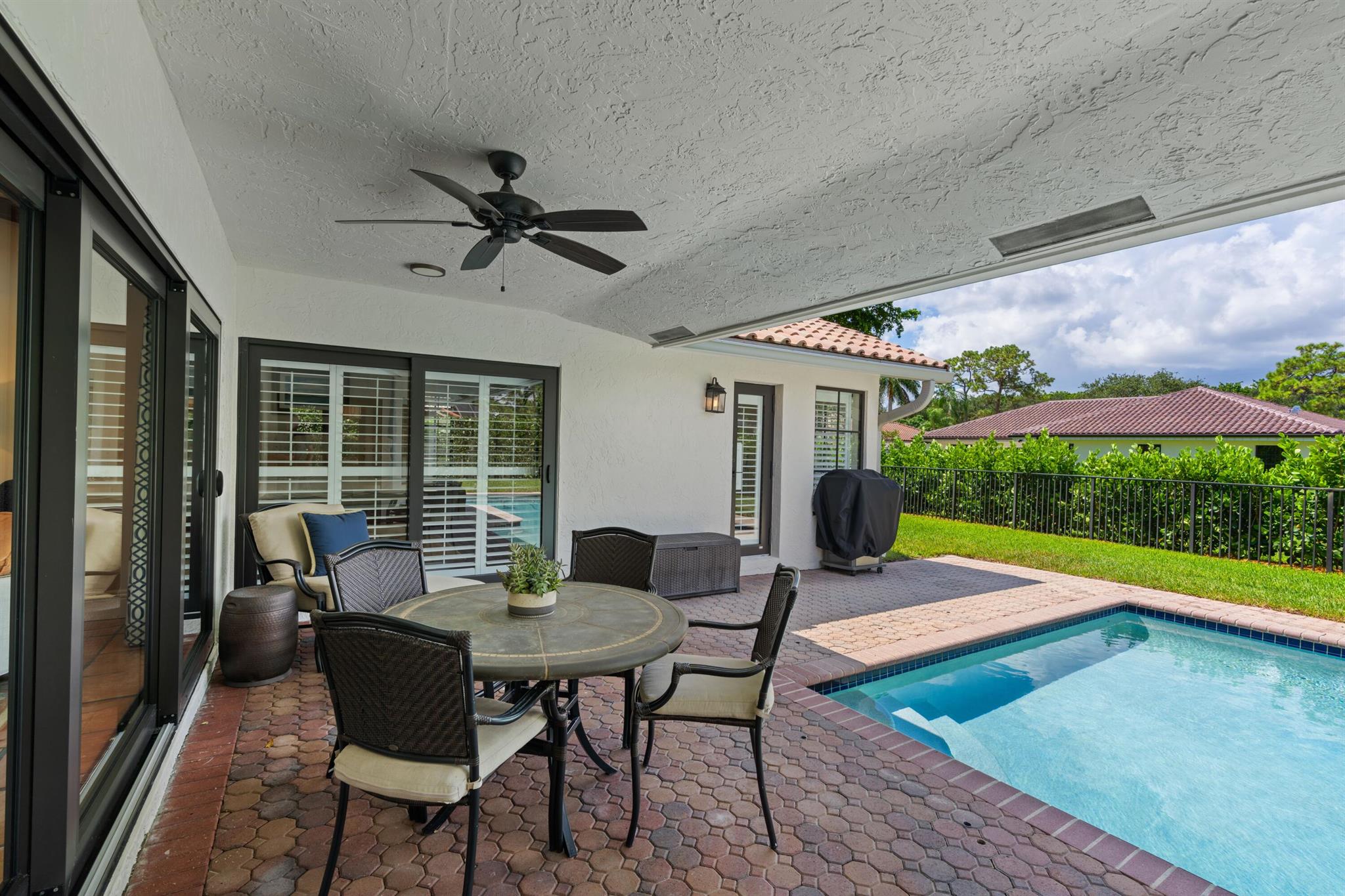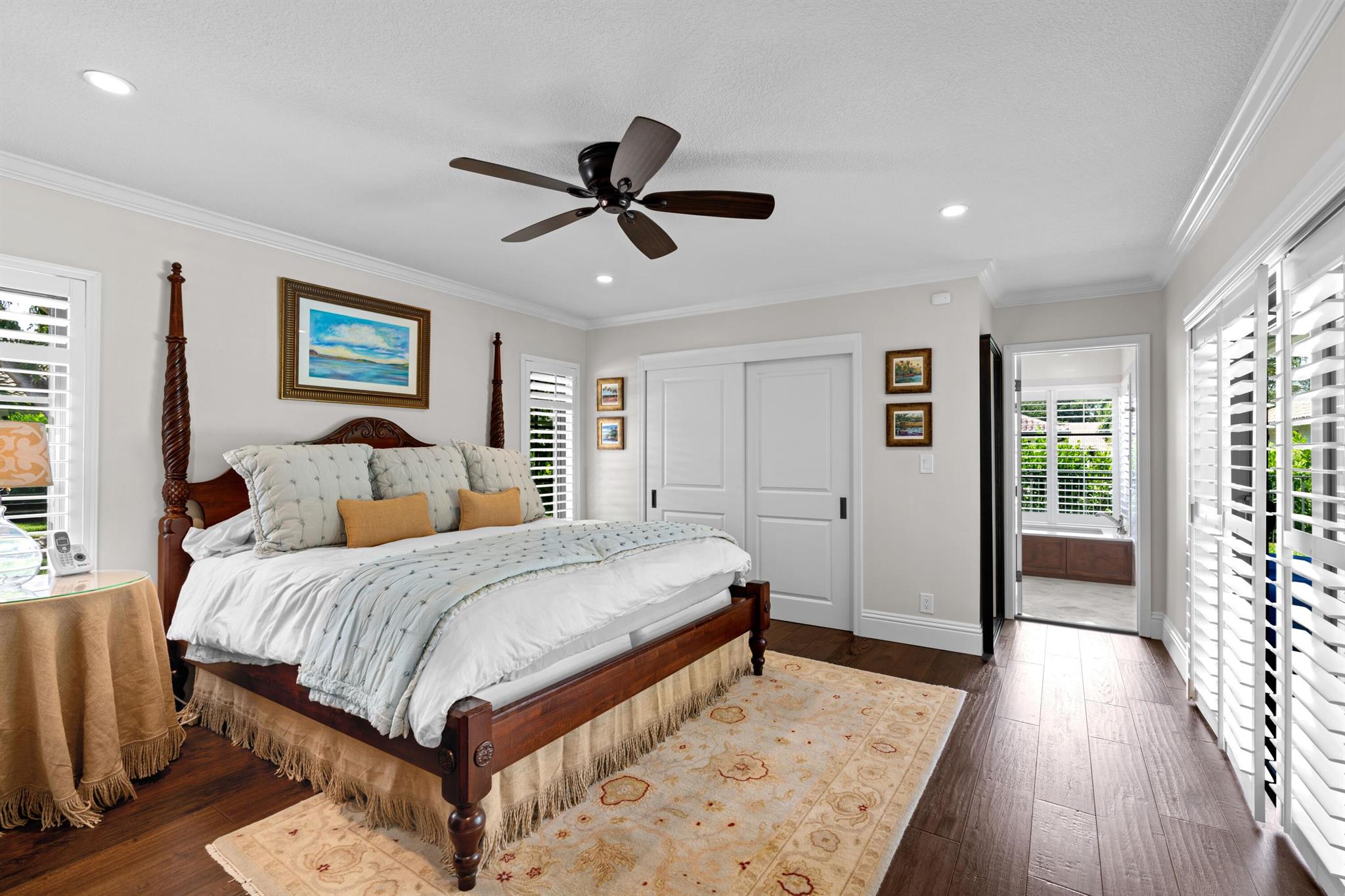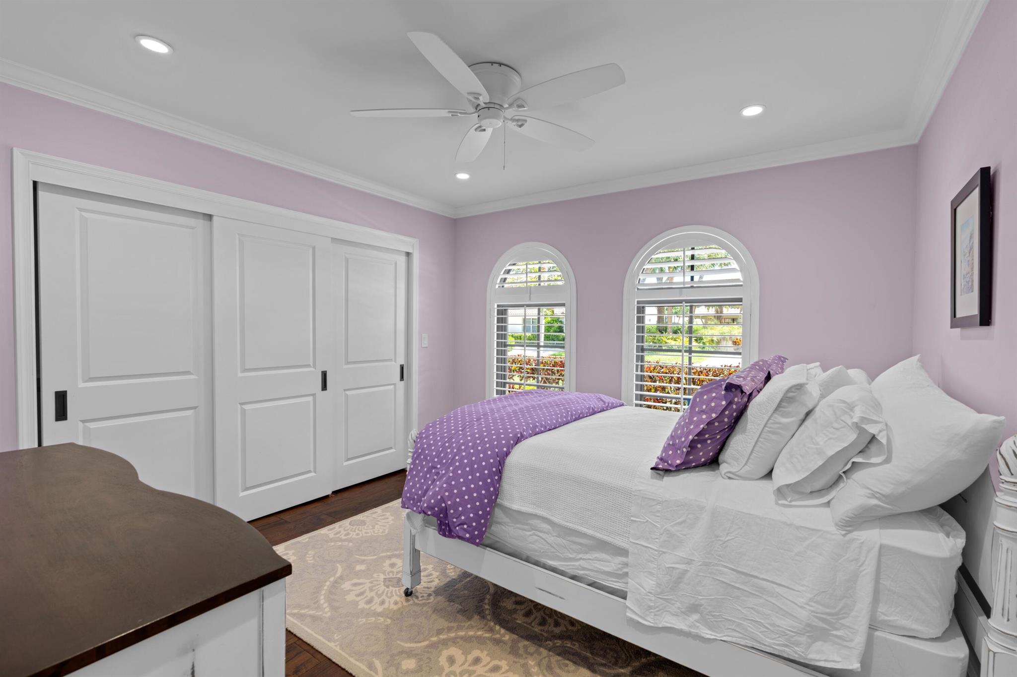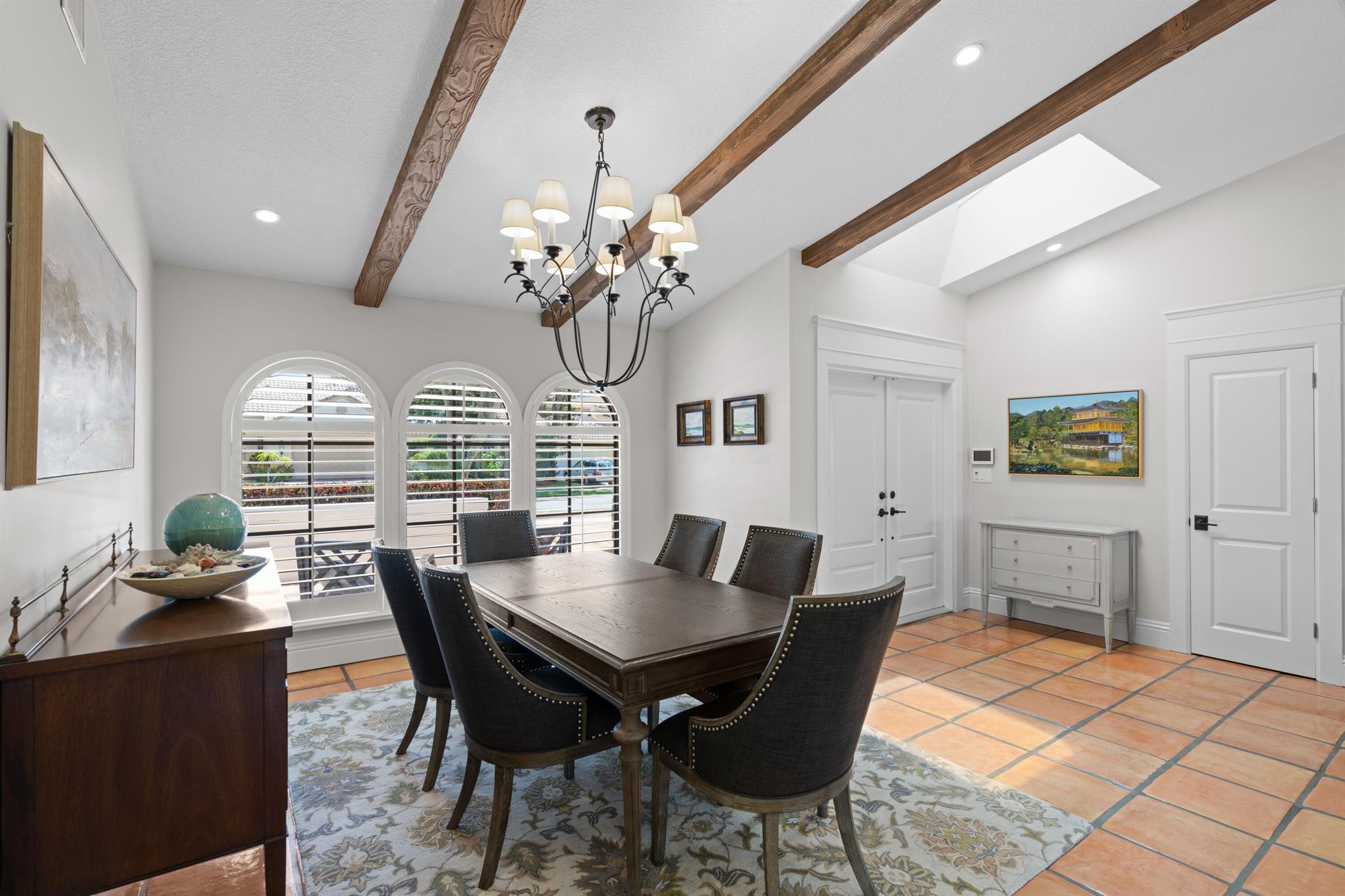Updated 4BR/2.5 pool home located in the central Boca Raton community of New Floresta. Renovation completed by the interior design firm The Tailored Pillow. Volume wood beam ceilings complete with recessed LED lighting. Formal living room with sliders to the patio area framed with custom draperies. Spacious dining room perfect for any special occasion. Open kitchen with island features SS appliances, quartzite counters and additional storage in the island. Large pantry with double doors and shelving provides ample space for groceries and small appliance storage. Custom banquet ideal for everyday meals. Split floor plan with wood floors in all the bedrooms. All bedrooms include closet organizers. Primary suite opens to pool with sliding glass doors. Luxurious primary bathroom adorned in