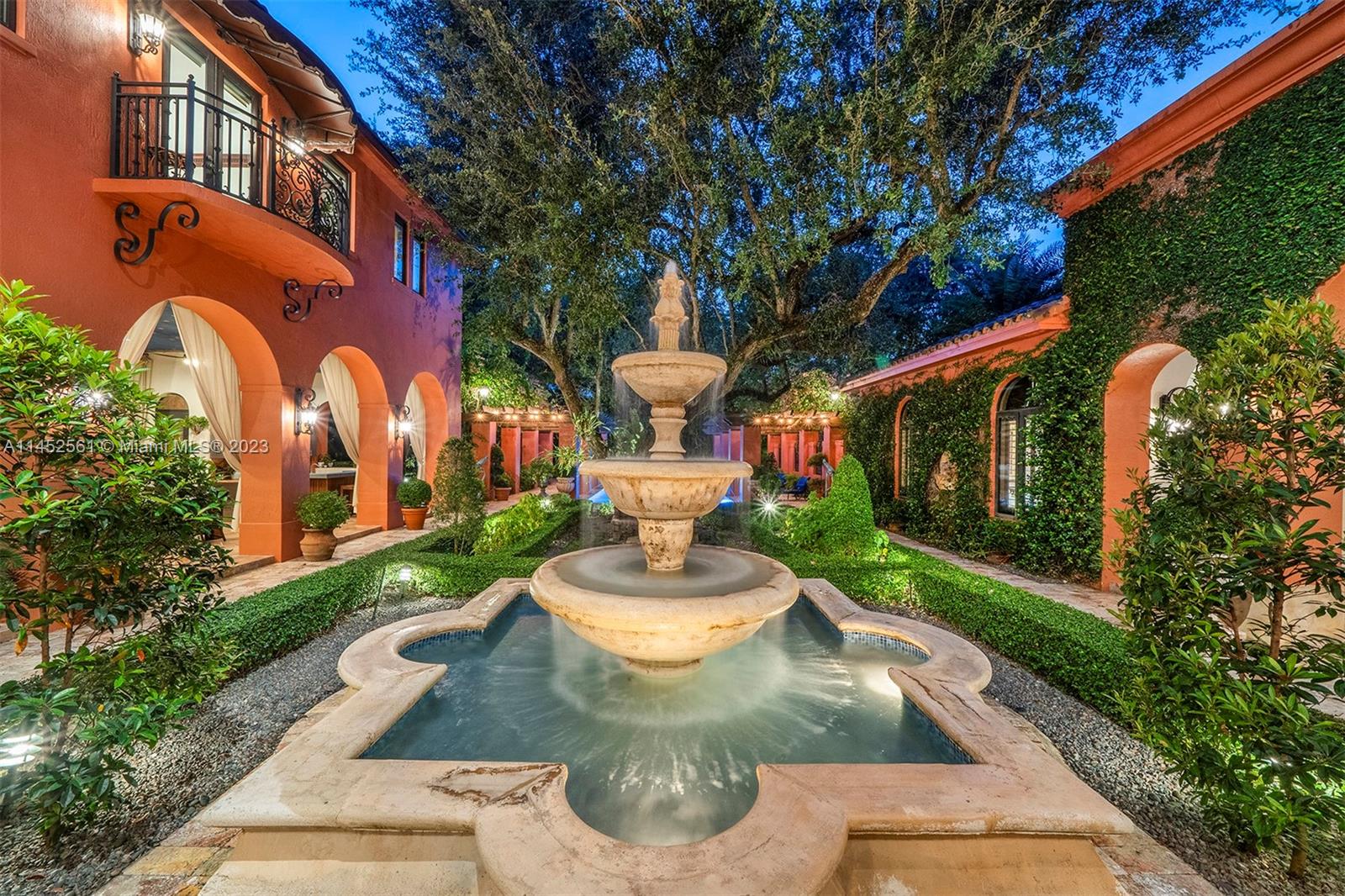 Exquisite custom courtyard estate nestled in Pinecrest, exuding sophistication from the moment of entry with its serene ambiance. Revel in a harmonious blend of indoor elegance & outdoor splendor w/ unparalleled attention to detail. Greeted by a majestic foyer, boasting expansive formal living & dining areas under soaring ceilings. The spacious gourmet kitchen, complete w/ a breakfast nook, seamlessly flows into a spacious family room. Indulge in the luxurious master suite featuring spa-like bath & balcony that overlooks the tranquil backyard. Discover a separate 1br/1ba guest house, while the outdoors beckons w/ lush gardens, oak trees, cascading fountains, covered terrace, summer kitchen, & heated pool/spa. Add’l features: imp windows/doors, generator, gym/flex space, & a 3-car gar.