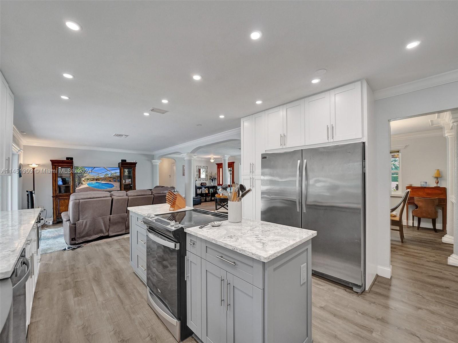 ACCEPTING BACK UP OFFERS!! PRICED TO SELL Amazing Opportunity to live in the Highly Desired Plantation Acres. Huge Ranch Pool home on over 1/2 Acre. Over 60+k in upgrades in the NEW 16'x14' kitchen w/luxury plank flooring throughout the living area, Cambria Quartz counters, 42" cabinets, 3 French doors. All SS appliances and oversized refrigerator, double door pantries. IMPACT WINDOWS THROUGHOUT, 2 AC units,2 water heaters, Updated electrical panel, Copper & PVC Plumbing.Resort style Screened & Heated pool resurfaced 2022 diamond Brite, waterfall, over 2300 ft patio & huge backyard, brick pavers and kitchen for grilling fire pit. Separate 500 sq ft bonus room with side entrance can be in law suite, media, or rented. 22' SHED CAN BE ADDL GARAGE! PER TAX ROLL 3500 SQ FT. NO HOA