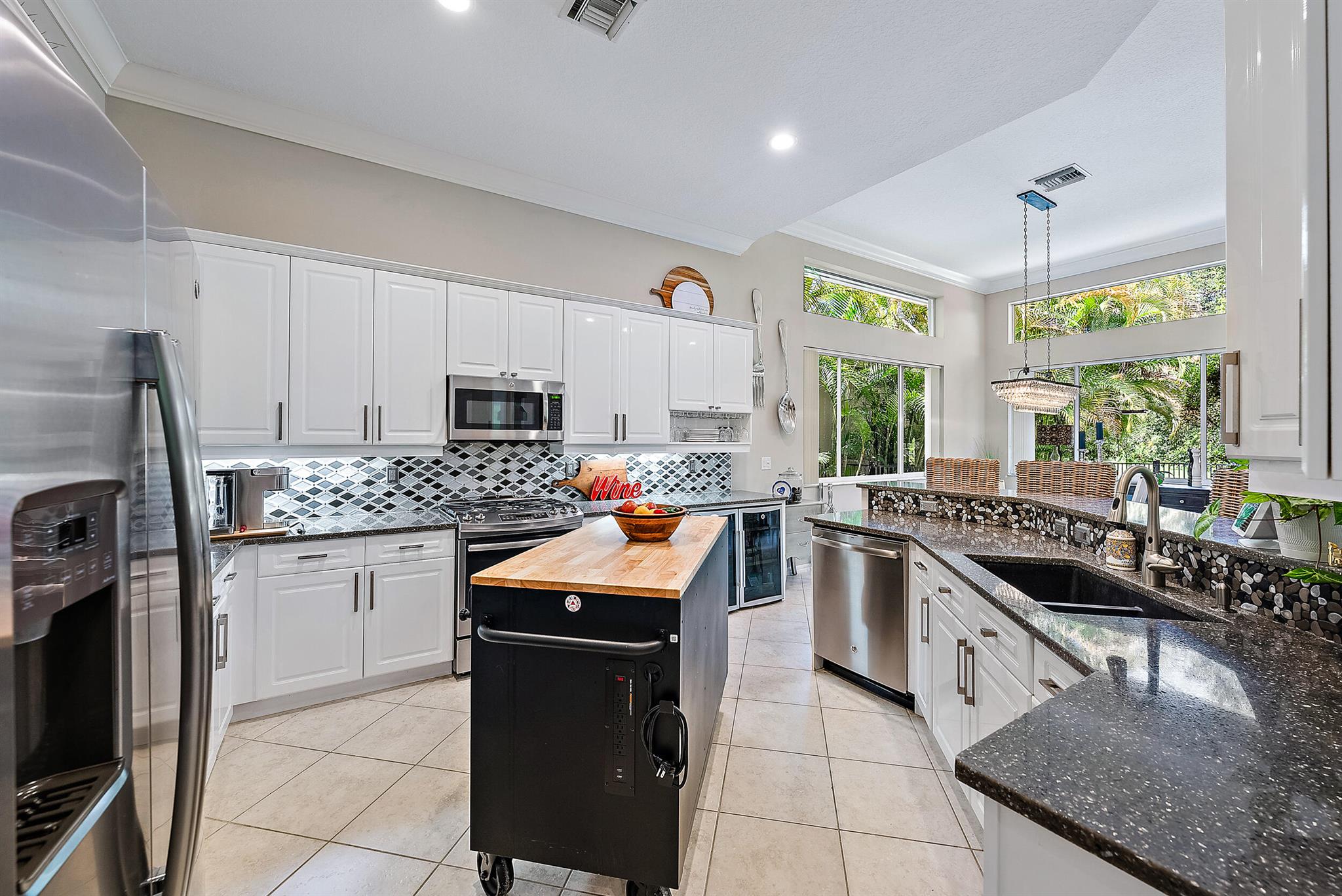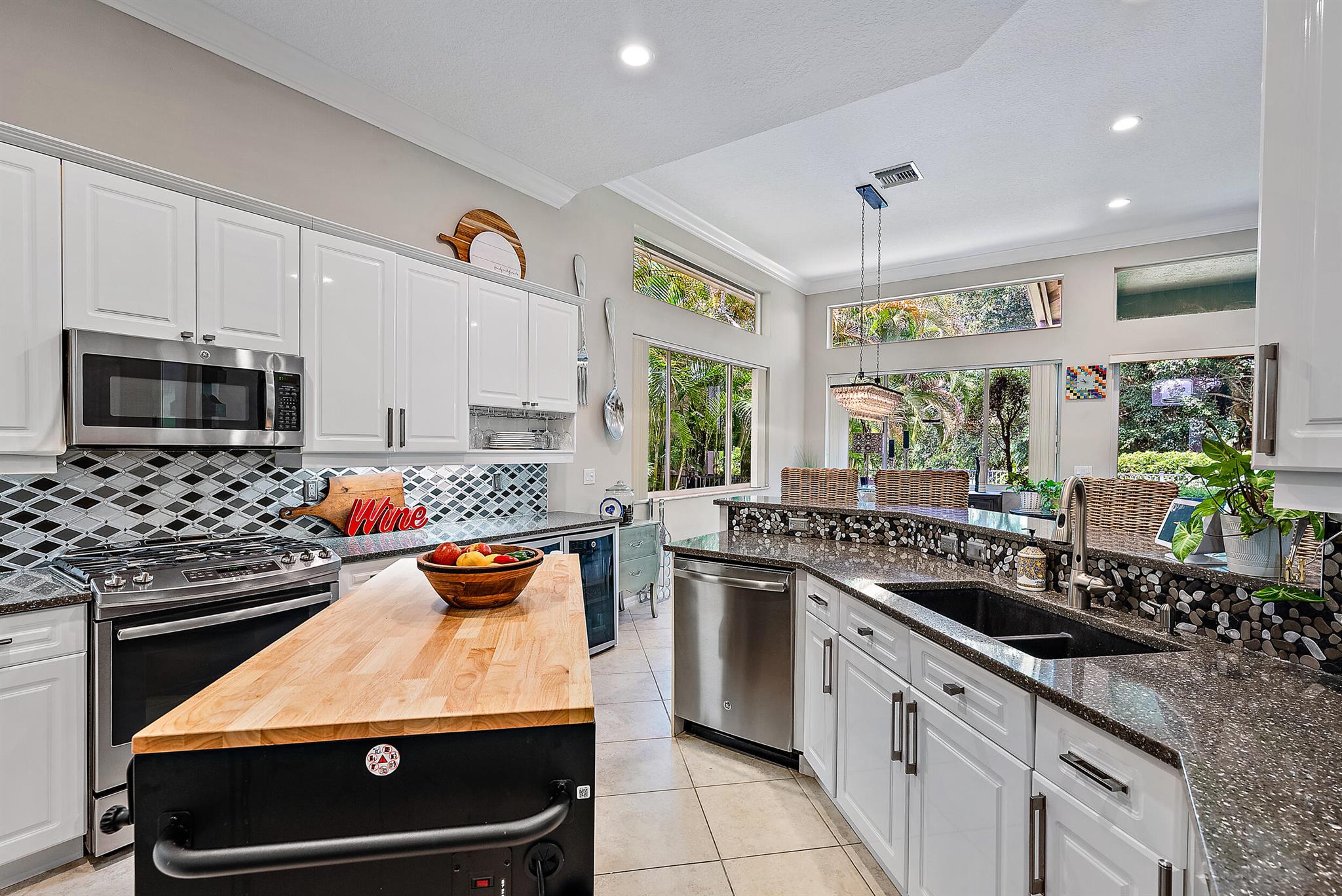 This upgraded and renovated great room home offers private water vistas and one of the most open floor plans in Ibis. The architecturally exciting ''Briarcliff'' model boasts soaring ceilings, and a versatile layout. The kitchen and both bathrooms were renovated six years ago and feature replaced, upgraded stainless appliances, granite counter tops, designer back splashes and more. The HVAC, washer and dryer are two years new. The extended back patio fence is four years new. Wood flooring in both bedrooms and the office. The main bedroom sliders are impact glass, and the house features panel shutters for protection. Built-ins in the dining room, great room and office. Extensive crown molding, designer fans and fixtures throughout.