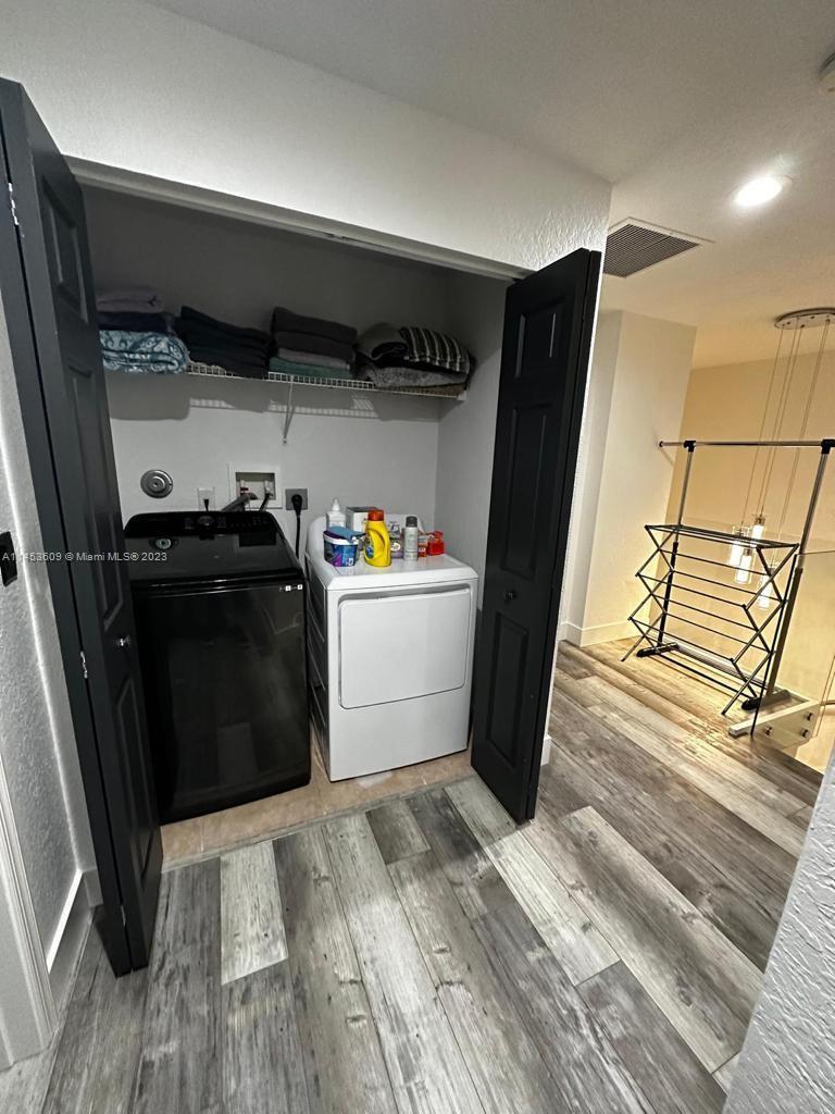 Spectacular lake view townhouse conveniently located in guard gated Silver Falls. It has 3 bedrooms upstairs /2.5 bathroom and 1 car garage - 2 cars driveway. The master bedroom has a huge walk in closet and bathroom with two vanities, roman tub and shower. Spacious open floor plan with tile downstairs and laminate upstairs. Community has a pool , clubhouse, fitness center, tennis and basketball courts and playground. HOA covers amenities & roof. Per HOA minimum of 650 credit score required for purchase. Roof 2005 , AC 2015 and water heater 2020. Accordion hurricane shutters.