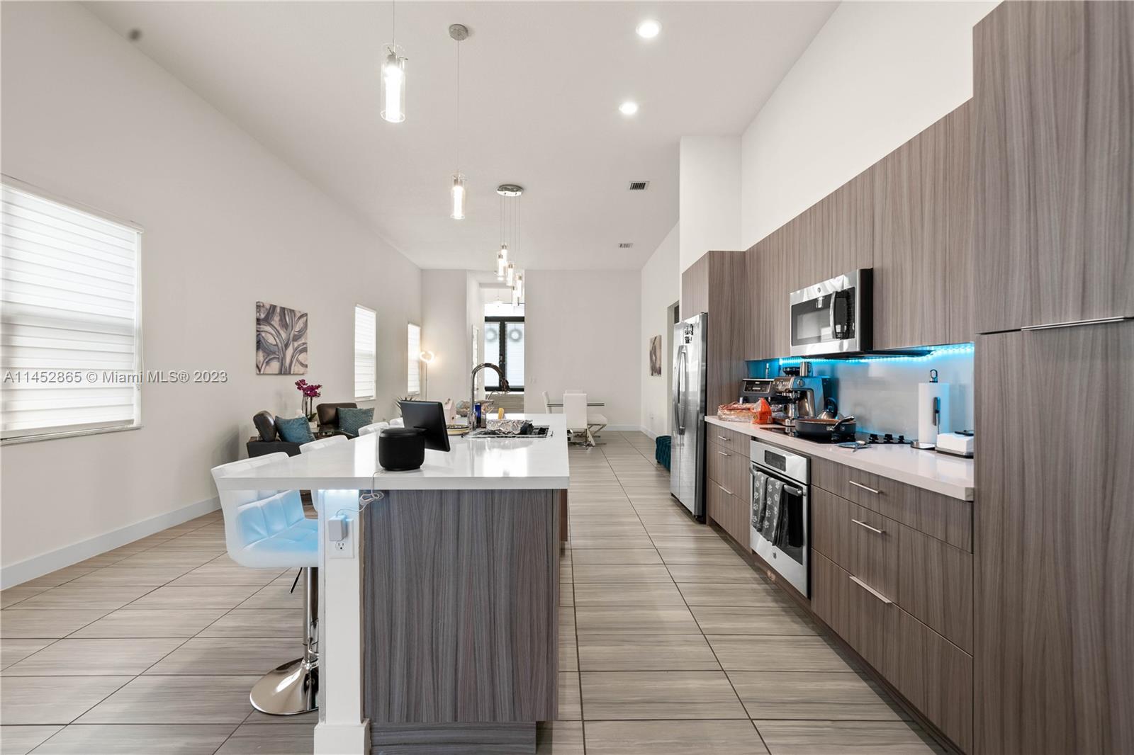 3 Bed 2.5 Bath well designed Single family home in the heart of Doral in Pinnacle At Park Central, an excellent gated community with the best state of the art Club house, ballroom, billiards room, resort-style pool, fitness center, sauna, steam room, tennis court, basketball court, children's water park, and playground. Open Concept Creston Model Floor Plan with Full volume 17'6" ceilings, and a 2 car garage. In the heart of the Home is a Modern Kitchen situated perfectly between the family, dining and living rooms with a large centered Quartz Island, flat-panel smooth wood cabinetry, and SS appliances. Extra Large Master bedroom with Double walking closets, double vanities, tub, and beautiful glass shower. 2 Bedrooms located on the other wing of the home sharing a full bath & a 1/2 a bath