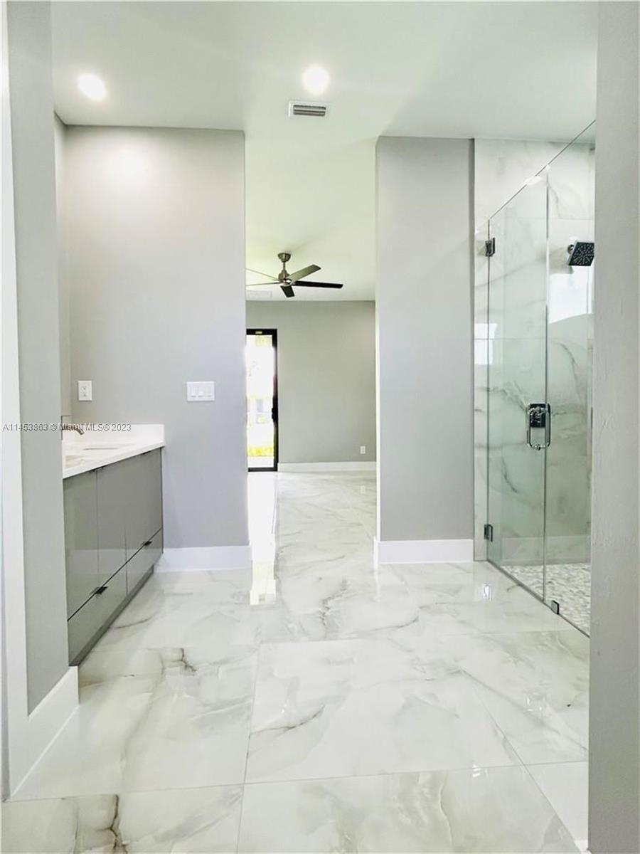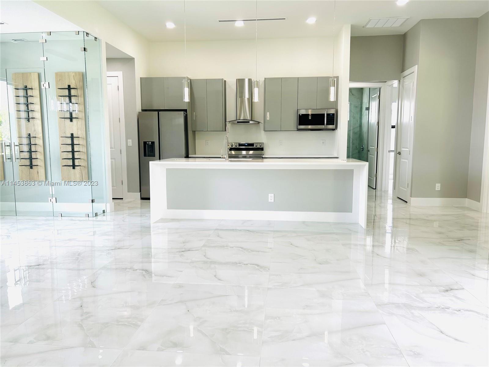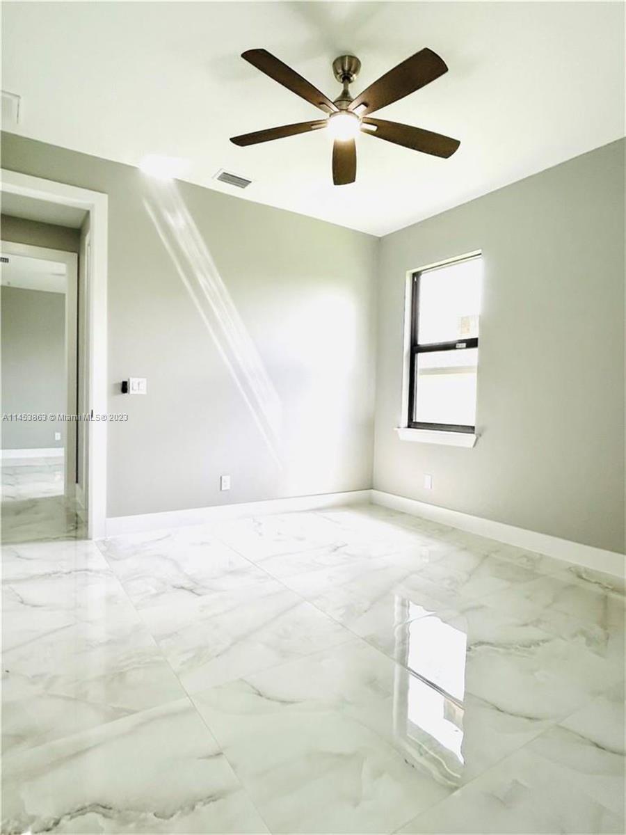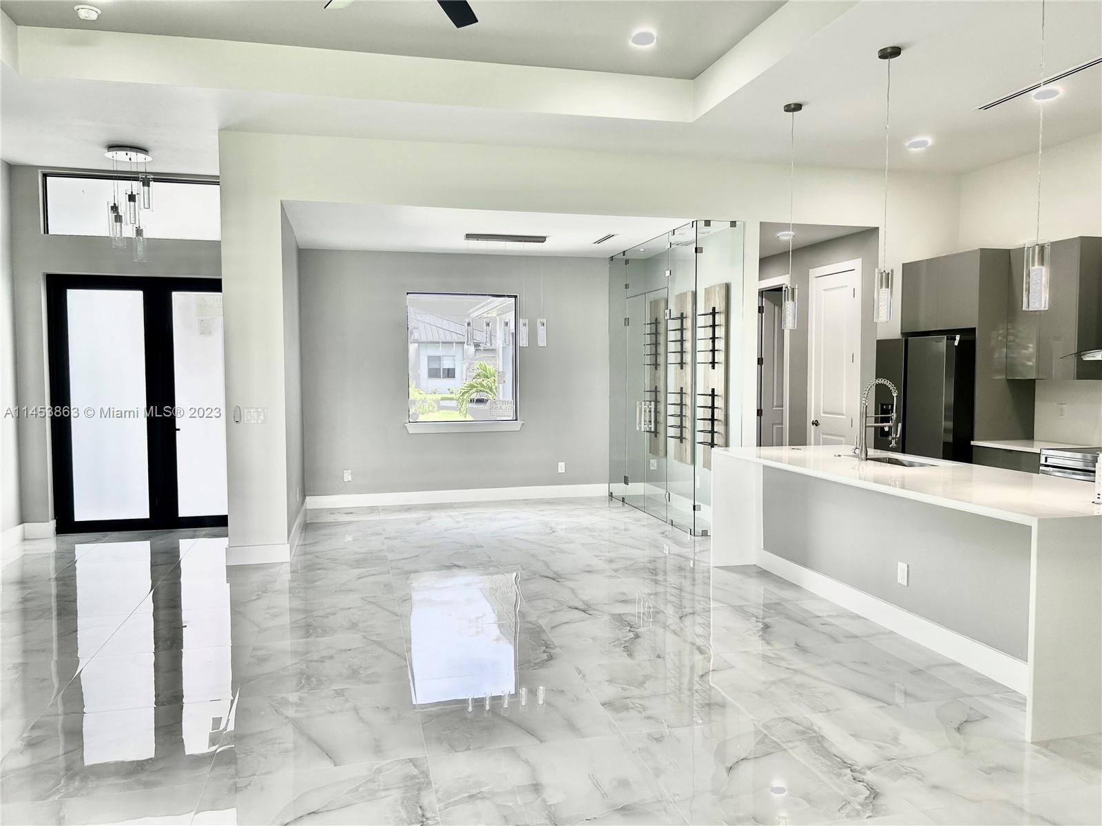 Modern New Construction home located in an established SE Cape Coral neighborhood with City Water and Sewer Assessments Paid. This stunning brand-new build features a 4 bed/3(2+1.5) bath with an open layout that includes updates such as custom kitchen & bathroom acrylic cabinets, quartz countertops, a spacious pantry & laundry room. Designer wall-mount wine cellar. Custom closets in all bedrooms including a walk-in closet in the master bedroom. Floor tile upgraded light fixtures & ceiling fans throughout the home. Coffered ceiling, hurricane impact windows & doors, linear grilles. Upgraded landscaping with sprinkler system & outdoor pavers. Outdoor lighting. Oversized 2 car garage with door opener. Back Patio with covered terrace and summer kitchen perfect for entertaining. A MUST SEE!!