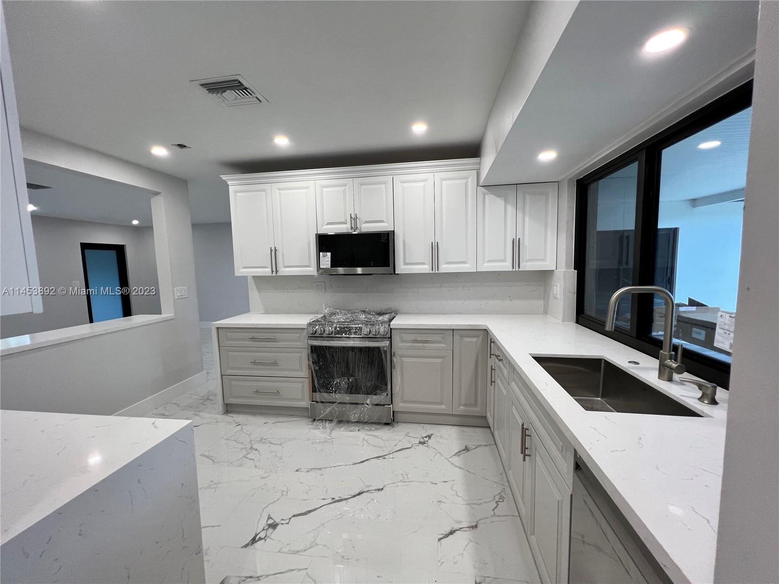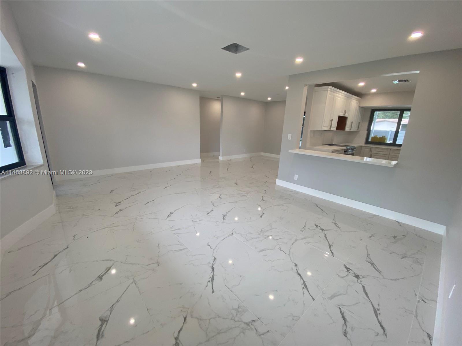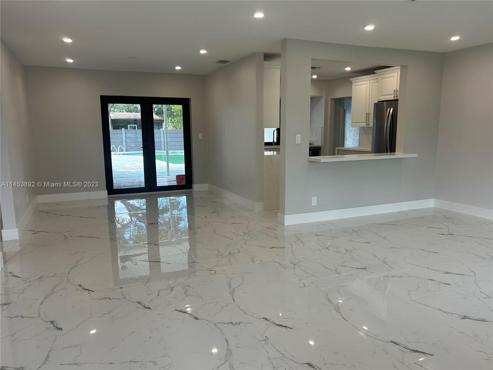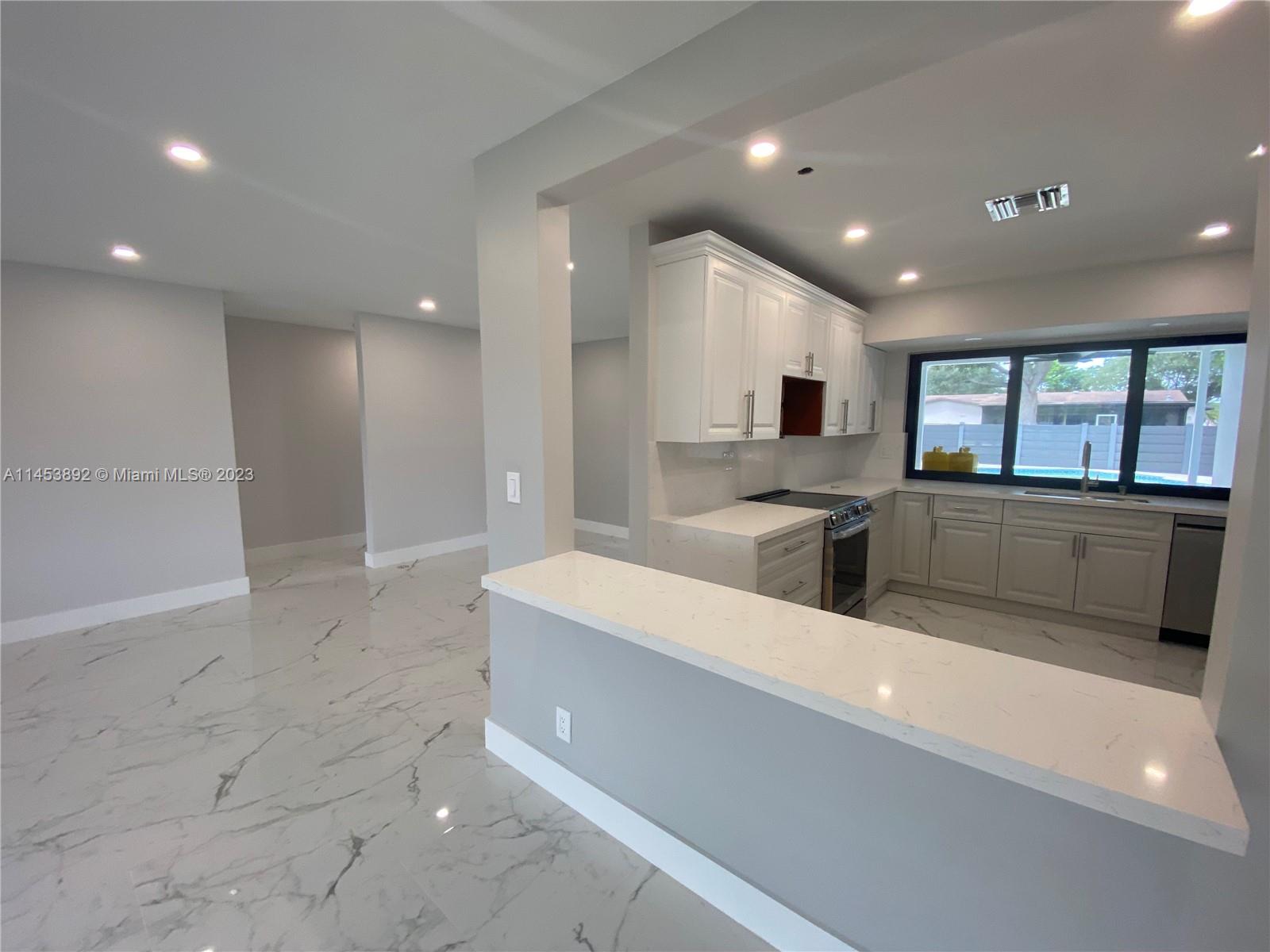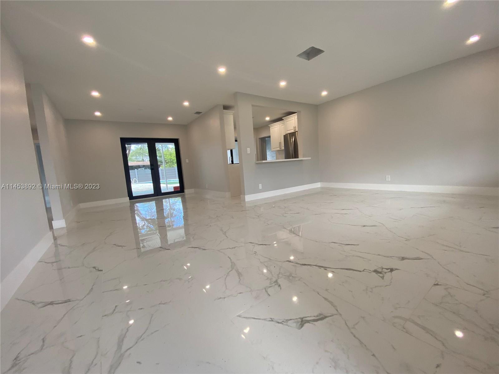 TURN KEY HOME! Modern& Bright.. Immaculate 4 bedroom 2 Bath Fully Renovated Single Family Pool Home! Brand NEW Impact Doors & Windows including Hurricane rated Garage Door. Brand New Marble Flooring throughout home, Kitchen features Brand New Appliances, Quartz countertops, w/ window overlooking the pool. Bathrooms are Fully renovated with LED mirrors. Exterior of home features New Modern lighting and is freshly painted. Backyard and Pool Area is fully fenced. Corner Lot with Circular Driveway, Lots of parking. New HVAC / AC system, 6 year old Roof. THIS HOUSE HAS IT ALL. Bring your pickiest buyer, Won't Last! NO HOA. Showings will start 10/7/23 finishing resort style pool deck.