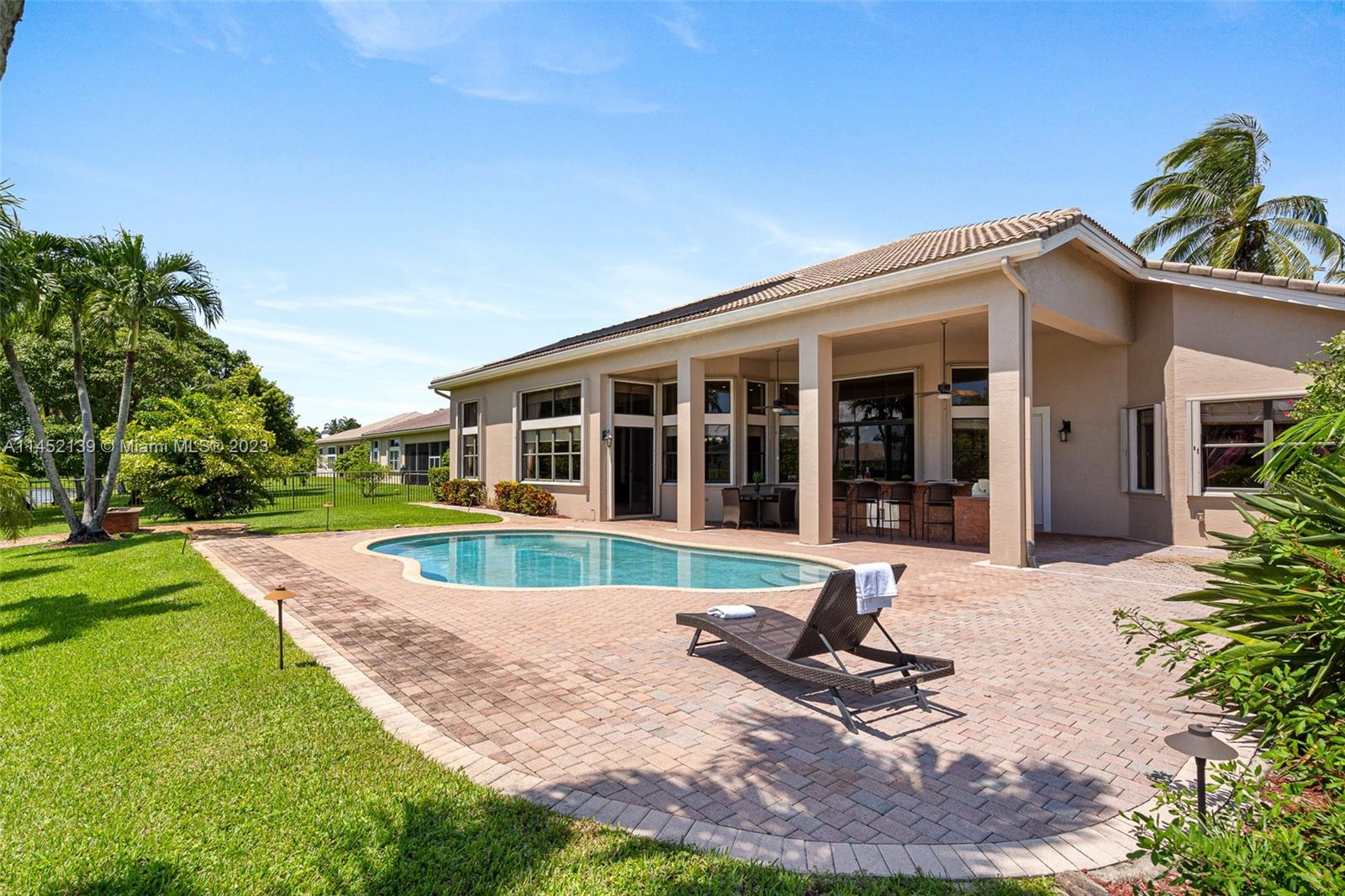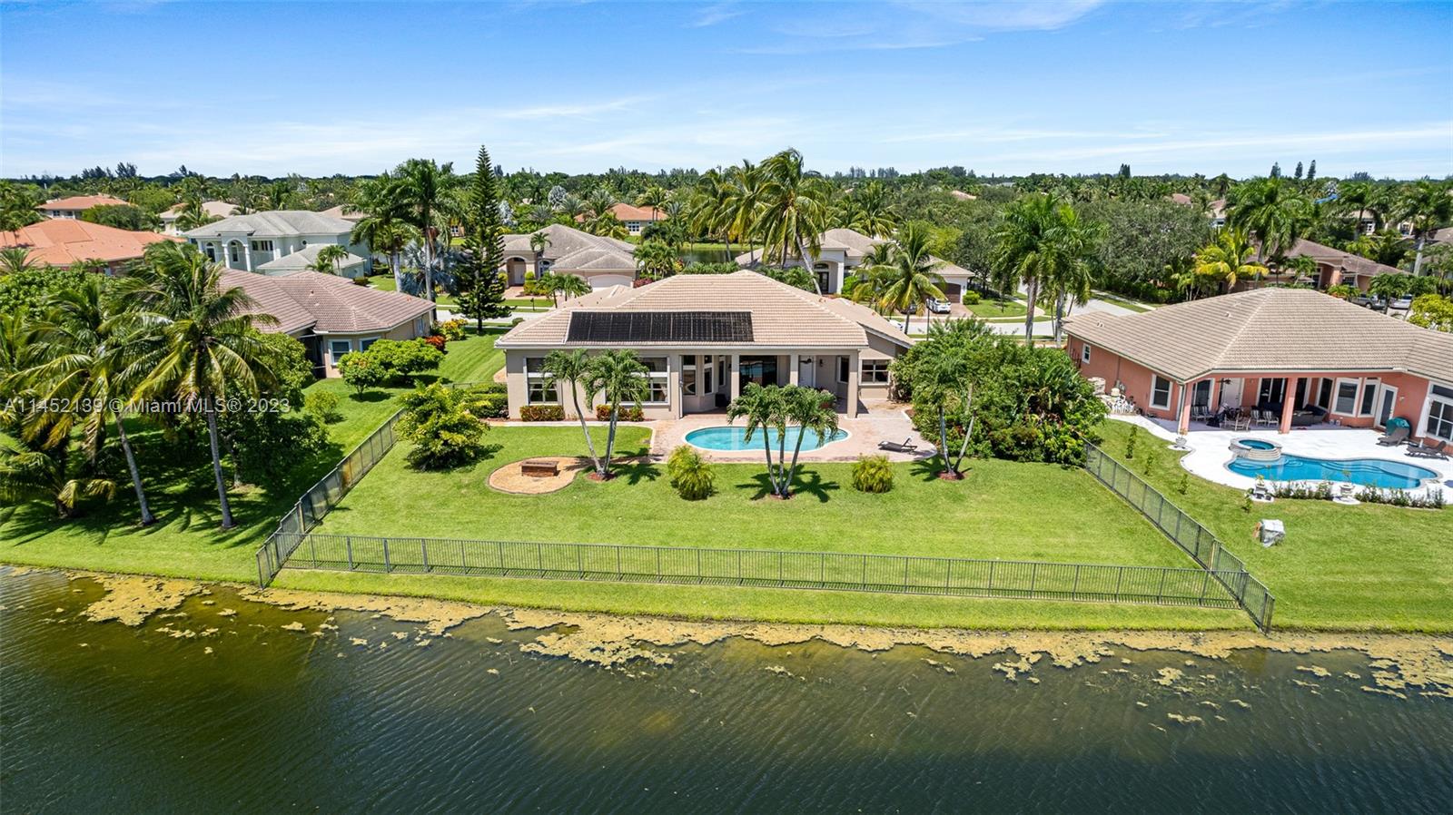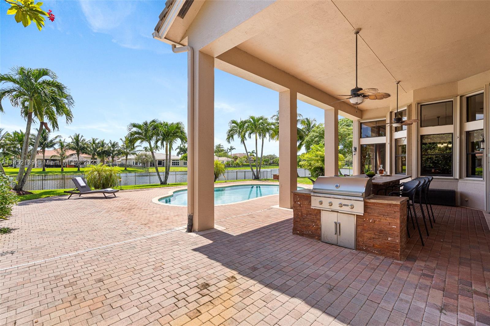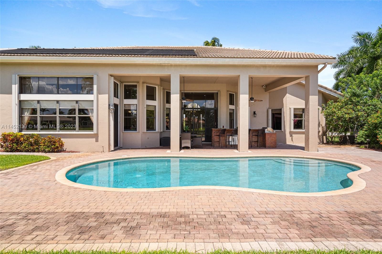 WELCOME TO RIVERSTONE IN DAVIE FLORIDA! THE WATERFRONT RESIDENCE-5 MODEL IS SITUATED ON A BUILDER'S ACRE. THE ONE-STORY MODEL OFFERS A SPLIT FLOOR-PLAN. ENCOMPASSES 4 BEDROOMS, 4 BATHROOMS INCLUDING A CABANA BATH PLUS OFFICE. THE OUTDOOR SPACE FEATURES A POOL, EXTENDED COVERED LANAI WITH A BUILT-IN BAR & GRILL . THE HOME HAS ACCORDION SHUTTERS THROUGHOT FOR HURRICAINE PROTECTION. 24-HOUR GUARD GATED COMMUNITY WITH TENNIS COURT, BASKETBALL COURT, PARK, ZONED FOR A+ RATED SCHOOLS, JUST MINUTES FROM THE AIRPORT & MAJOR HIGHWAYS. HOME IS WELL KEPT BUT TRADITIONAL. PRICE IS FIRM.