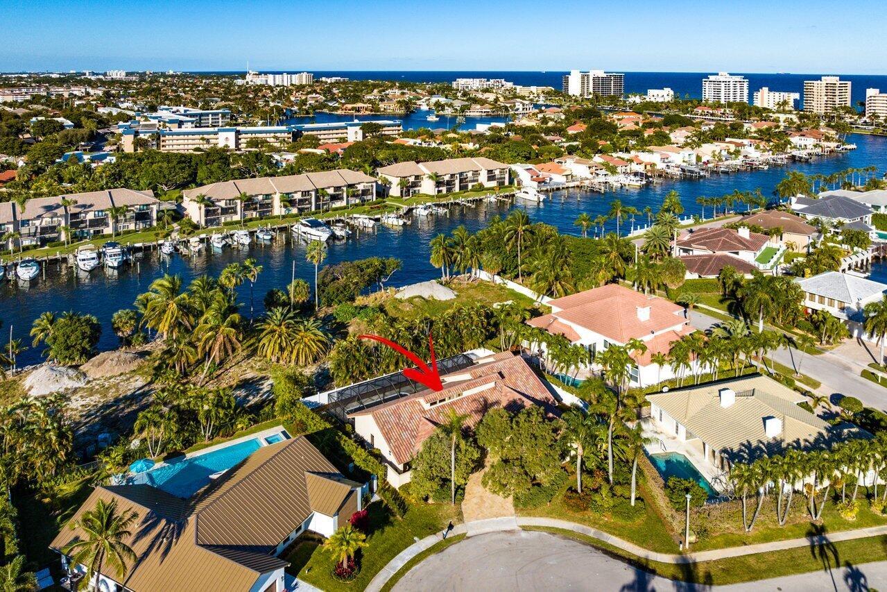 Paradise awaits in sought-after Boca Bay Colony in Boca Raton. This beautifully renovated, true 4 bedroom home is sure to delight any buyer. Thoughtfully planned with superb attention to detail, this updated home is built for enjoying and maximizing the casual Florida lifestyle. Gorgeous architectural details include soaring vaulted ceilings, custom cabinetry, and designer brass fixtures and hardware. An open, spacious kitchen has a large island with Quartzite countertops and a brass sink. Top-grade finishes such as a gas cooktop by ZLINE, a bespoke refrigerator with French Doors, and soft-close cabinetry elevate the level of luxury. Italian porcelain wood plank tile throughout provides seamless flow from room to room.