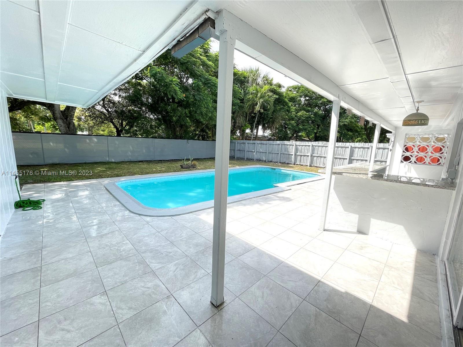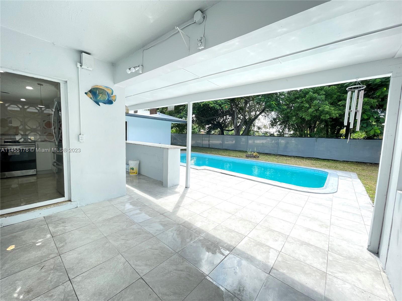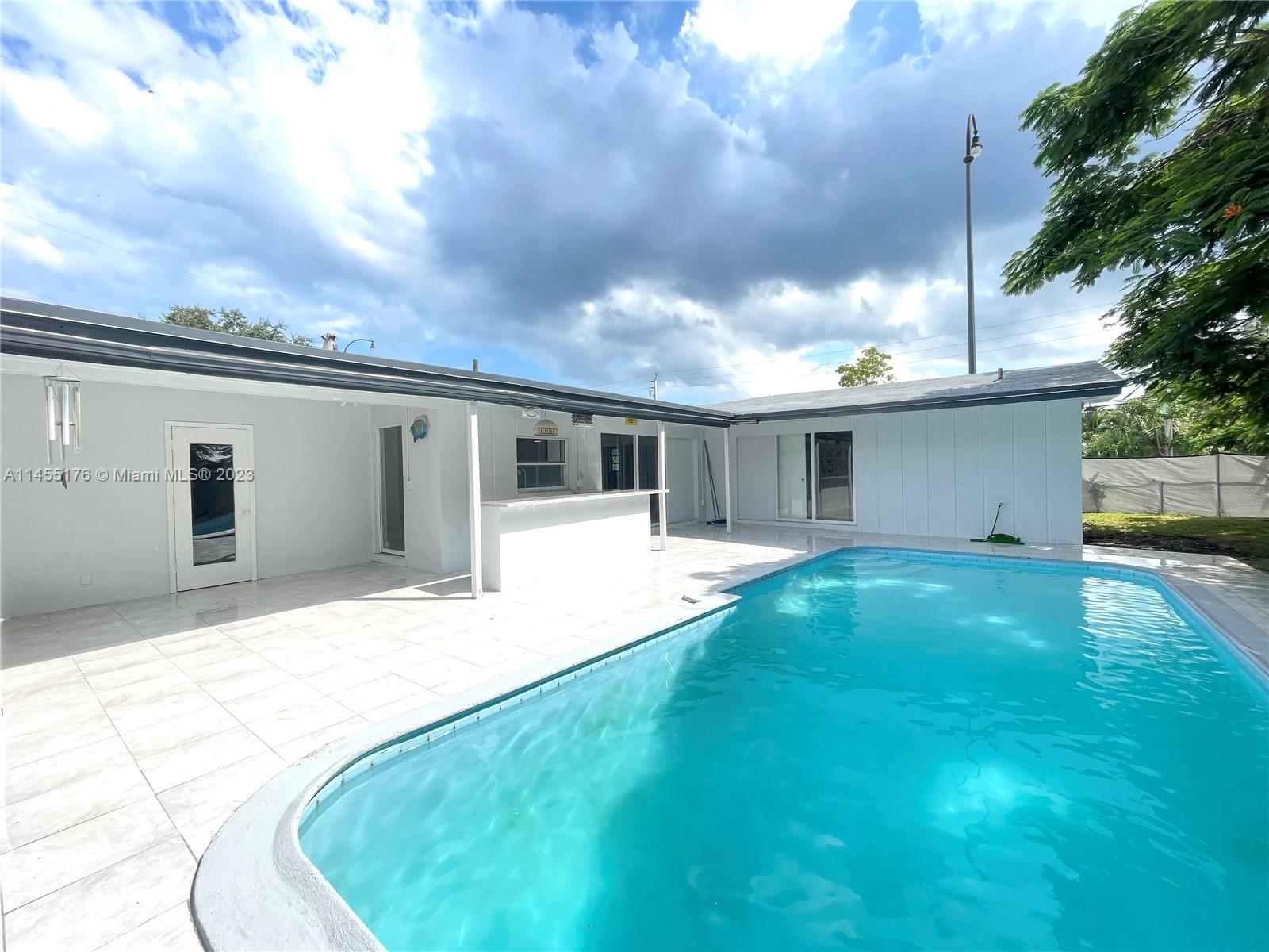 Beautiful 3b/2b POOL house located in a quiet and convenient area. Big island BAR next to the pool, Big and spacious interior, Great to hold party.Wood kitchen cabinet and Granite tops. Circular Driveway, plenty of parking spaces. Hurricane panels YES. Roof looks bright NEW. Induction Stove. Refrigerator with display.