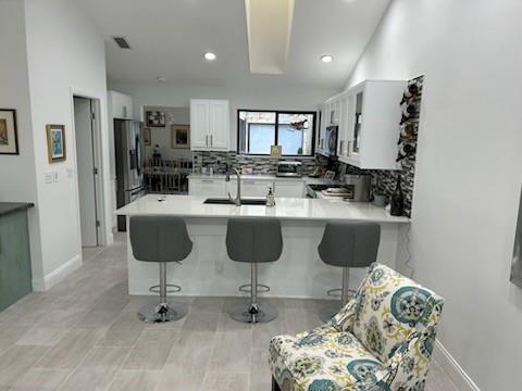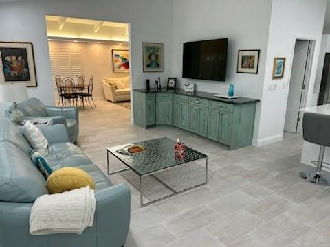 In Woodcrest --- Rarely available one story villa with 3 bedrooms/ 2 baths and gorgeous patio. Upgraded flooring, kitchen. Tastefully decorated and modern with light, Florida feel. Over 2100 sq ft of living space. 2 car garage. Secluded entrance. A perfect Boca West property, spacious and welcoming.