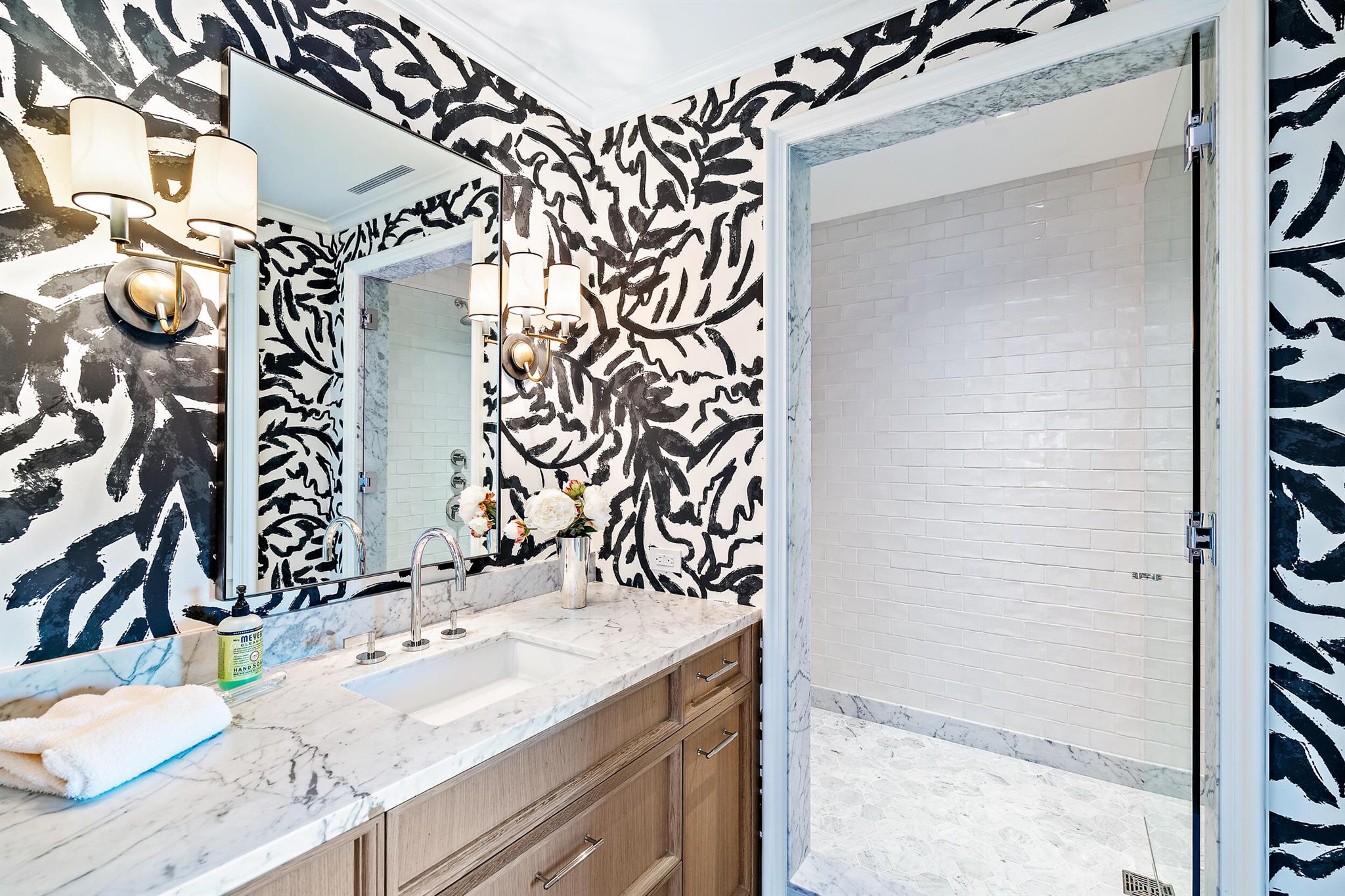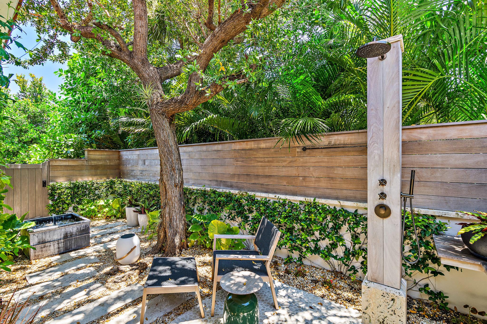A romantic waterfront paradise. Pristine, extraordinarily detailed, 2020 construction with unimpeded water views from both the first and second floors. This home's condition is the definition of ''impeccable.'' 19,000 square foot lot beautifully landscaped by celebrated designer Keith Williams. A 52' lap pool sits off the electric screened terrace. Mexican roof tile and dappled waxed plaster walls are a nod to classic Palm Beach architecture within a clean contemporary envelope. Luxurious downstairs primary bedroom with long Intracoastal views. Two second floor bedrooms with full baths and an expansive upstairs terrace reached by stair or elevator all enjoy sweeping water views. Separate guest house can be used as a gym. 3 bay garage is fitted with lifts and can accommodate up to 5 cars