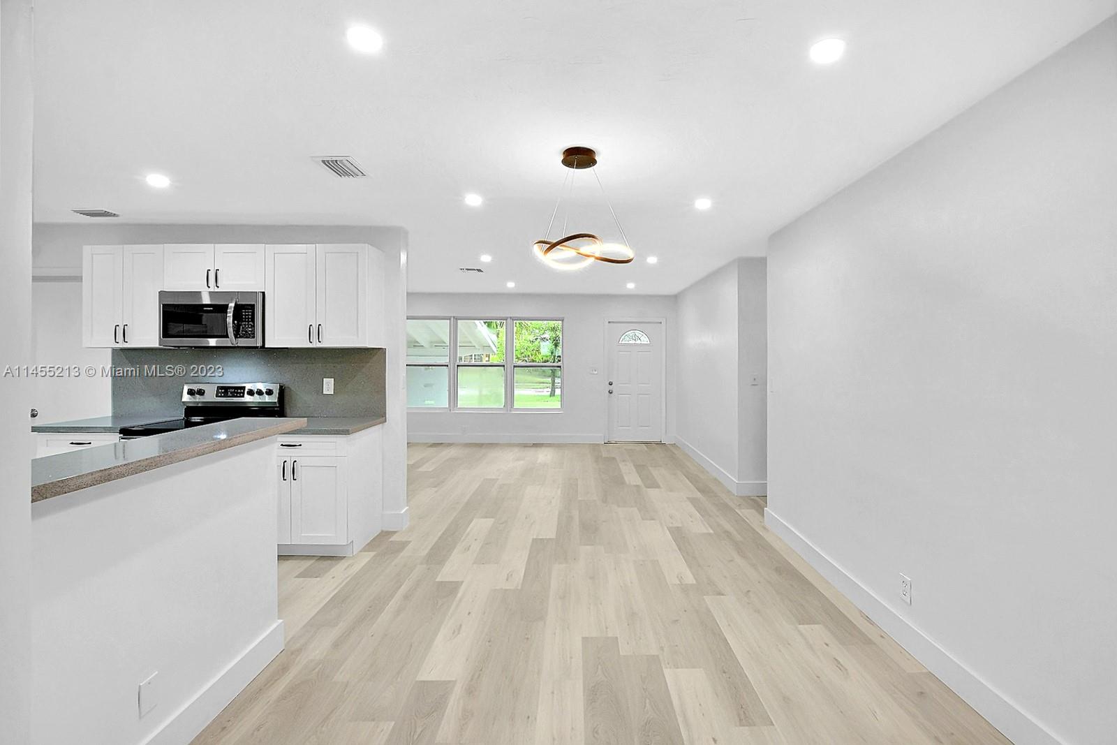 BOASTING 1,612 OF SPACIOUS LIVING AREA, THIS GORGEOUS 3 BEDROOM 2 BATHROOM PEMBROKE PINES HOME RECENTLY UNDERWENT A MODERN HIGH-END REMODEL. LIGHT AND BRIGHT HOME WAS FRESHLY PAINTED AND HAS IMPACT WINDOWS, RECESSED LIGHTING, NEW FIXTURES & GORGEOUS PLANK FLOORING THROUGHOUT. STUNNING KITCHEN HAS WHITE SHAKER CABINETS, SPARKLING QUARTZ COUNTERS & STAINLESS STEEL APPLIANCES. PERFECT FOR ENTERTAINING, THERE IS ACCESS TO THE LARGE FENCED BACKYARD FROM THE KITCHEN & LIVING AREAS. SPACIOUS LIVING ROOM HAS A STYLISH ACCENT WALL. BOTH BATHS REMODELED COMPLETE WITH NEW VANITY, QUARTZ COUNTERS, NEW FIXTURES, AND MODERN PORCELAIN TILE. HOME ALSO OFFERS, CONVENIENT CARPORT PARKING AND AN INDOOR UTILITY/LAUNDRY ROOM. NO HOA. FANTASTIC CENTRAL LOCATION IS CLOSE TO THE TURNPIKE, SHOPS & RESTAURANTS.
