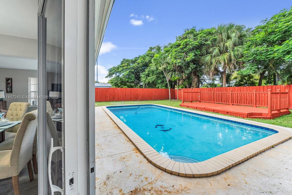 Stunning 4 Bedroom, 2 Bath Home with Pool - Your Oasis Awaits! Welcome to your dream home! Nestled in a serene neighborhood, this 4 bedroom, 2 bath gem offers the perfect blend of contemporary and comfortable living. The open-concept layout flows seamlessly, making it ideal for both everyday living and entertaining. This home has been meticulously updated with brand new ceramic tile floors that provide a fresh, clean aesthetic. The home boasts new appliances, a brand new roof, new AC, new hot water heater, converted garage with AC that can be used as an office or an additional room. Enjoy a sparkling pool with a charming deck perfect for lounging.