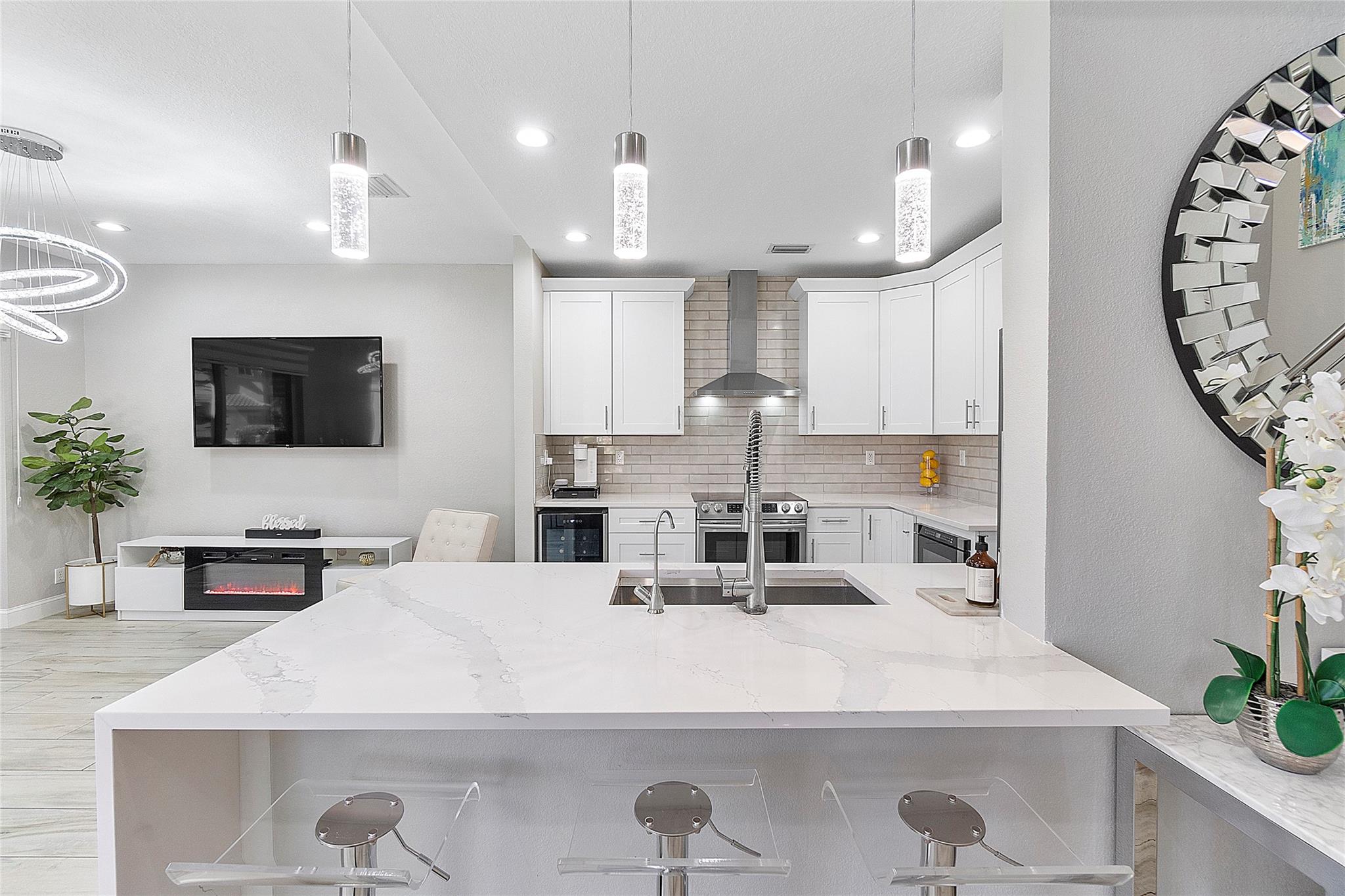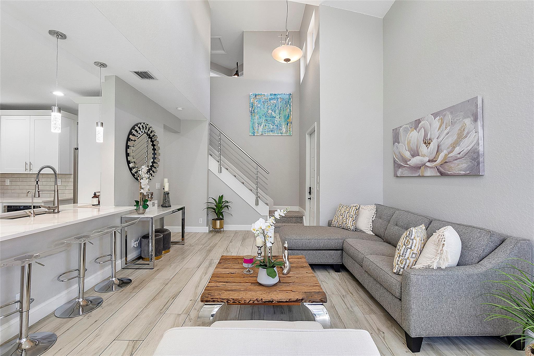 Exquisitely remodeled 2- story corner townhome in the Fairways @Heron Bay. Welcome home with striking high ceilings that create an open atmosphere with lots of natural light. The open lay-out kitchen boasts SS appliances with newer microwave, range hood, wine cooler, waterfall quartz countertop & RO water filtration system. Tiles floors throughout the first floor, SS handrail staircase with vinyl planks in the second floor and recess LED lights. Two car garage, newer washer and dryer & nest thermostat. Tranquil & private fully enclosed screened patio. 24-HR gated resort style community of Heron Bay has updated clubhouses, heated pool, Sauna, steam, Tennis, Pickleball, Basketball, Racquetball, Fitness Center, children's play area, endless activities and much more.