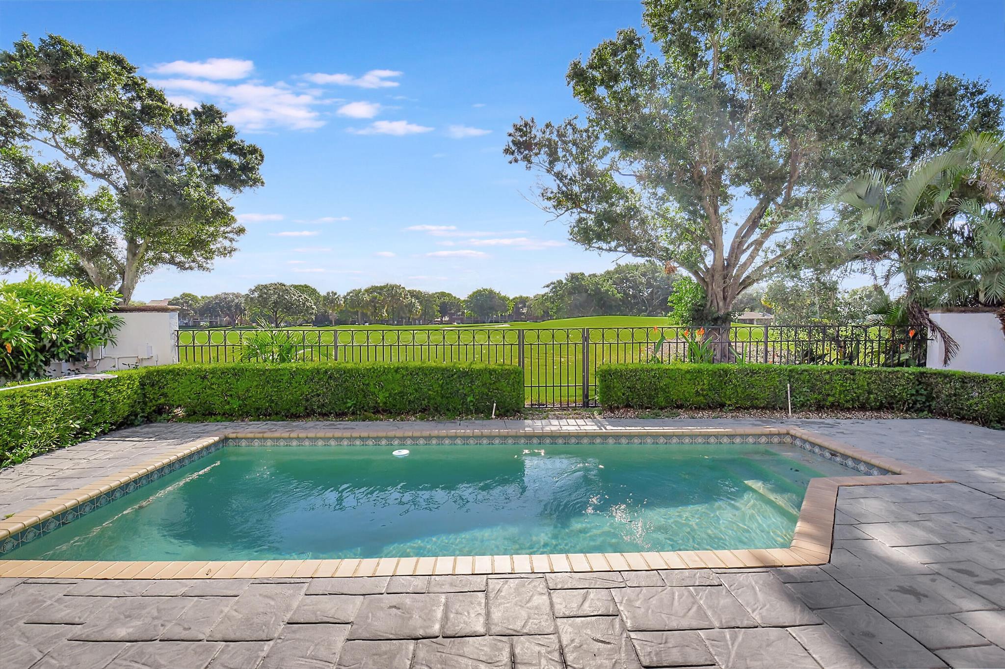 For those wanting to escape winter's cold for Florida sunshine, this 3 bedroom 2.5 bath home, that's located in Fairway Landing at Broken Sound is the perfect getaway. Inside you will find an open floor plan that's light and bright with vaulted ceilings, porcelain tile floors & neutral colors throughout. The large primary bedroom is decorated with elegant plantation shutters, features 2 large walk-in closets & offers direct access to the private backyard patio with golf course views. The skylight in the primary en suite bath allows an abundance of natural light on the dual sinks, soaking tub & walk in shower. Watch the sunrise from your eat in kitchen with plenty of counter space, stainless appliances and storage pantry. The outdoor space is perfect for relaxing & entertaining beside