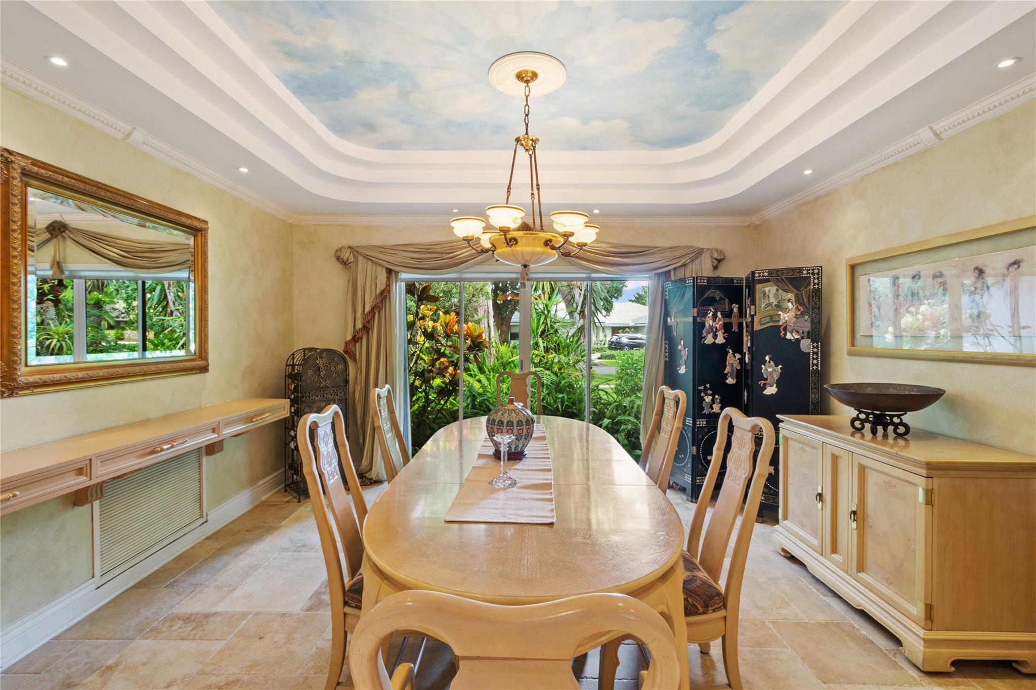 Discover tropical luxury in this Estancia community home. With a thoughtfully designed split floor plan, this residence offers a perfect blend of functionality and relaxation. Step into a world of entertainment and comfort as this home has been renovated to cater to your every need. The gourmet kitchen, featuring double ovens and microwaves, is a chef's dream, providing convenience for hosting large dinner parties. One of the bedrooms comes equipped with built-ins, making it an ideal home office. Outside, the lush tree-lined streets and updated pool deck area transport you to a tranquil tropical oasis. This home also comes with many valuable updates, including exquisite travertine tiles, elegant wood floors, granite countertops, and a wet bar designed for seamless entertainment.