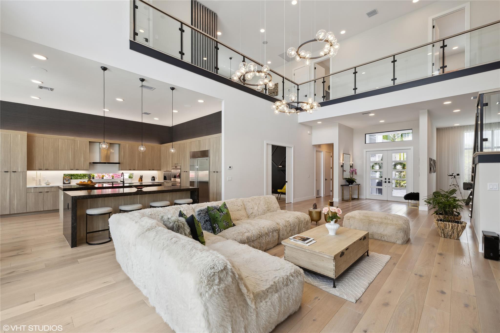 Luxury living in the highly sought-after Boca Bridges Veneto contemporary model. 2-story house with the primary bedroom down floorplan, 5 bedrooms and 5 full + 2 half bath, media room, loft, art studio with storage, den-game room and office. The home boasts 2-story ceilings in the living room and family room with contemporary wood details complimenting the glass stair rail. Huge 1st floor primary bedroom includes walk-in closets and bathroom with freestanding tub and separate shower. Beautifully done kitchen with 2 oversized islands and kitchen window, featuring Wolf, Sub Zero appliances. Contemporary pool with gorgeous marble deck overlooking the lake and lushes landscaping gives you a privacy. Marble pavers on the driveway add a touch of luxury to the exterior. Cul-de-sac street.