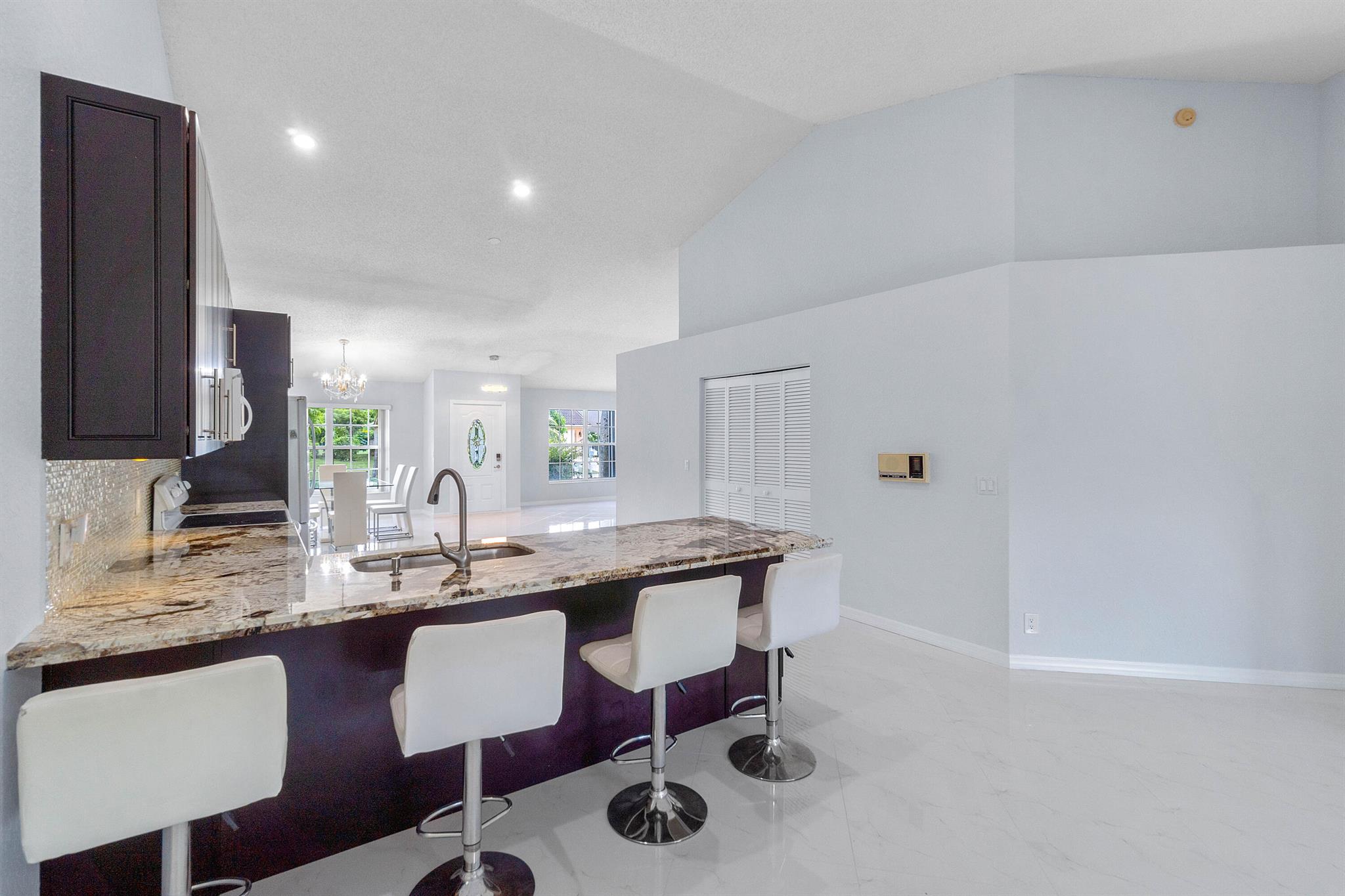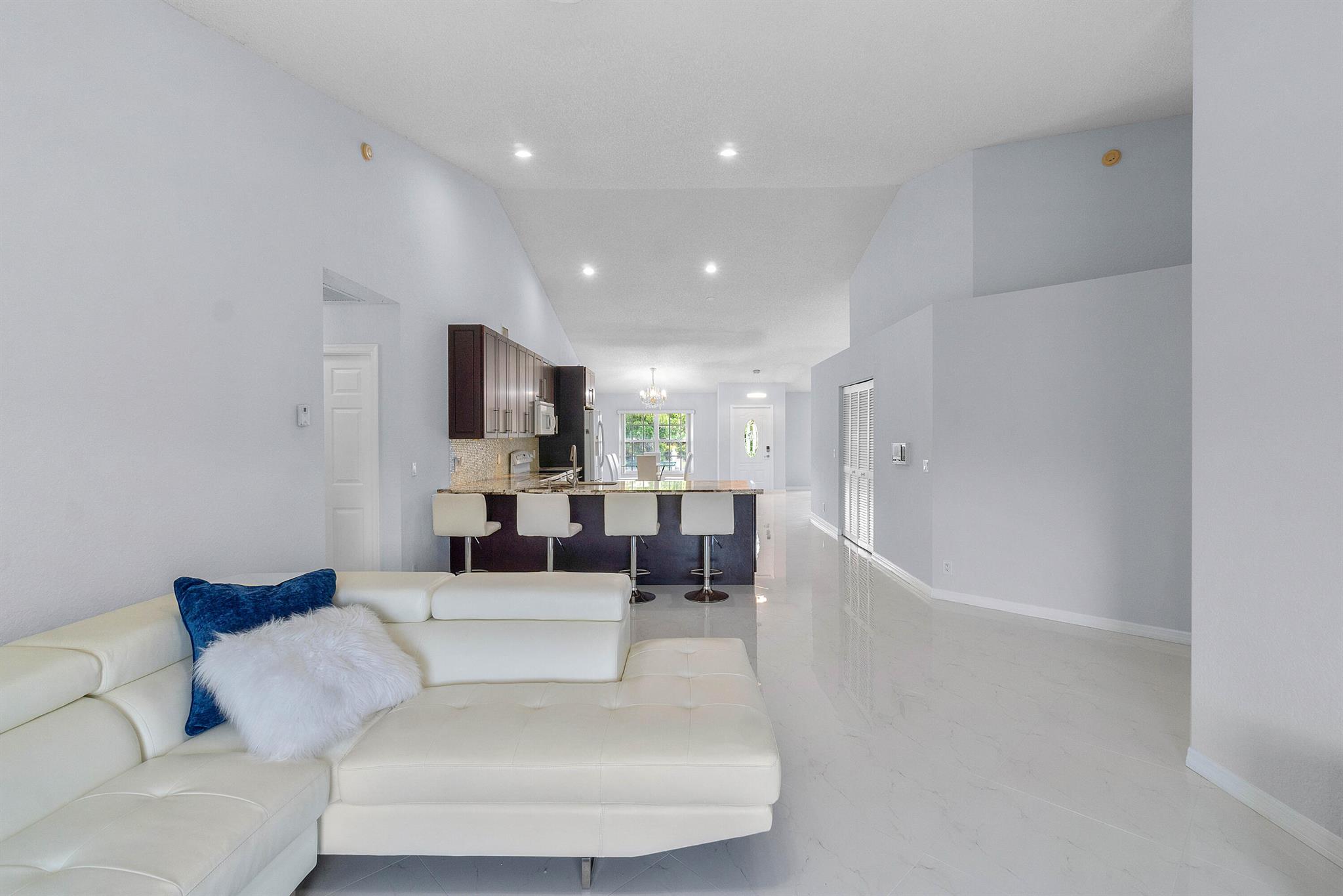 Come see this beautiful 3/2 Ranch with a serene private lake view which backs up to a nature preserve in the highly regarded community of Boca Chase in West Boca Raton. This 1920 sq ft contemporary home features an open floor plan from the minute you walk thru the front door. The home features an oversized eat in kitchen with exotic granite countertops, decorative glass backsplash and soft close cherry wood cabinetry, 24x24 Italian porcelain tile laid on a diagonal throughout the house, 2021 A/C, 2019 HWH, new carpet in bedrooms, updated master bathroom with vinyl flooring, new washer/dryer. Freshly painted inside and complete accordion shutters. Boca Chase community has 2 pools, playground, tennis, basketball and pickleball courts and a very low HOA. A+ rated schools. DONT MISS THIS ONE.