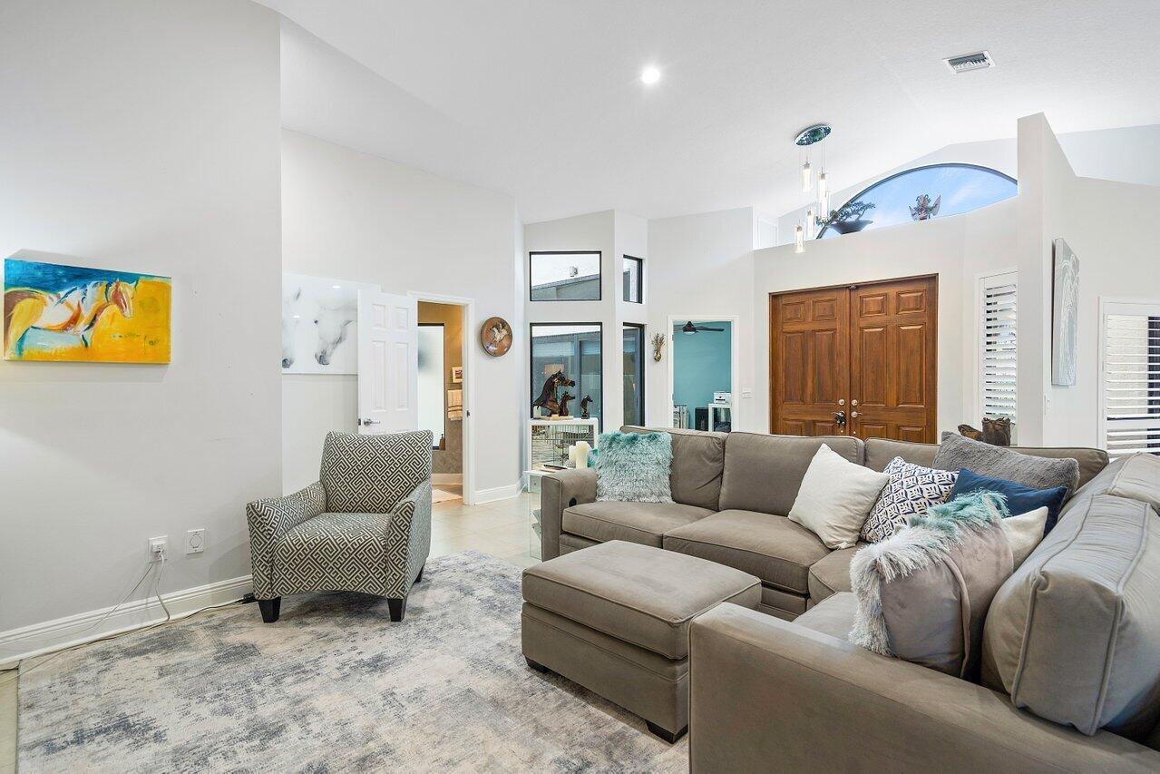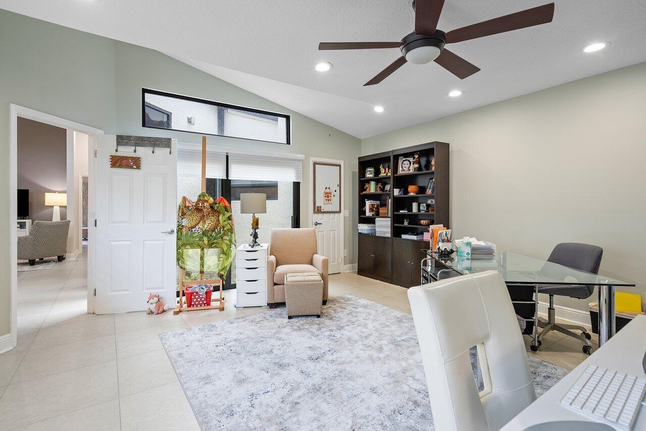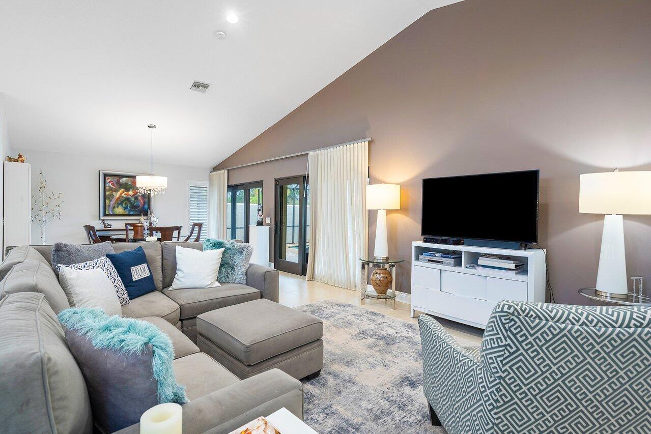 This remodeled Palmera model overlooks both the lake & golf course in beautiful Boca Pointe, a gorgeous membership optional country club gated community with many amenities. Some great features of this freshly painted home include neutral tile throughout, gorgeous remodeled kitchen featuring white wood cabinetry, new backsplash & quartzite countertops, stainless appliances, new lighting, newer A/C, new alarm system & new aluminum gates in both the front & back . The open floor plan lends itself to modern living & boasts views of the pool, golf course & lake from the living & primary BR areas. The 3rd BR is open as a den/studio/office but could easily be converted. The pool has a new heater. Enjoy the security & serenity of a private club without the fees.