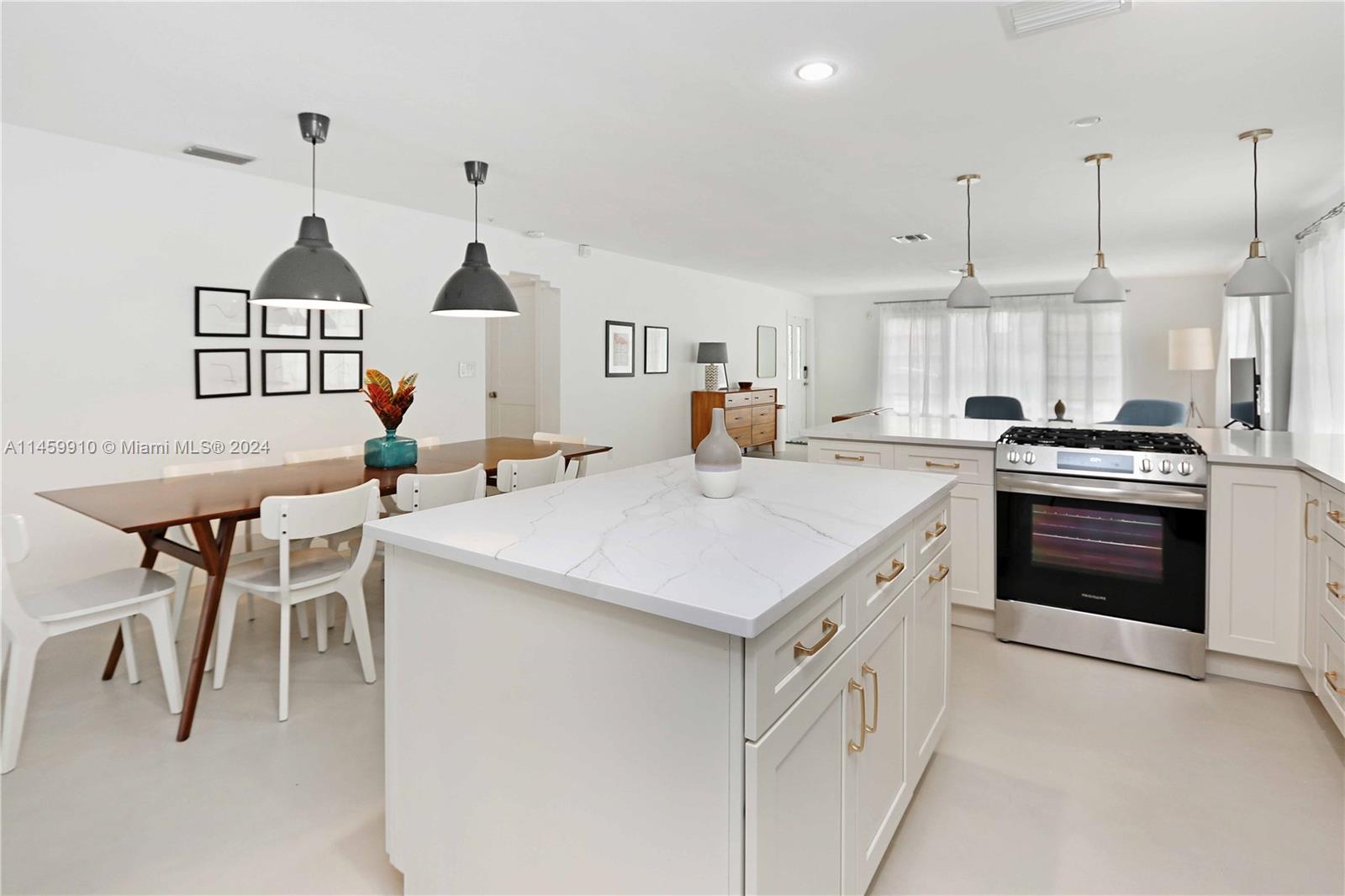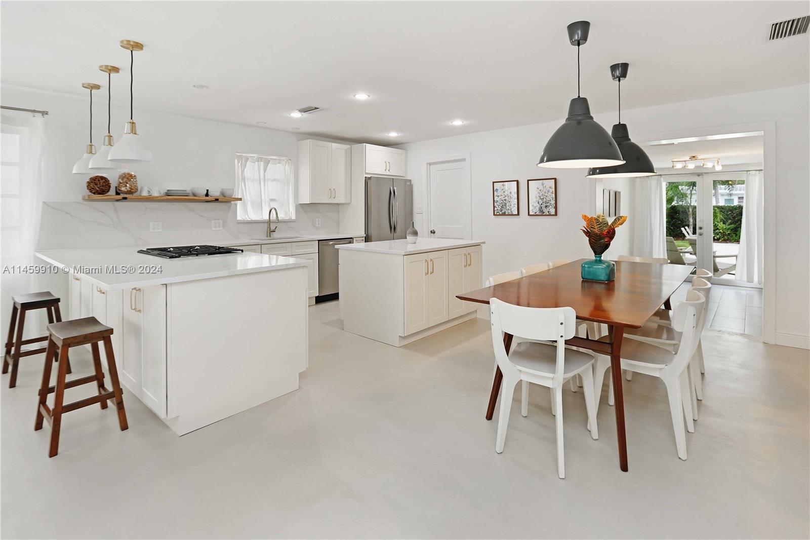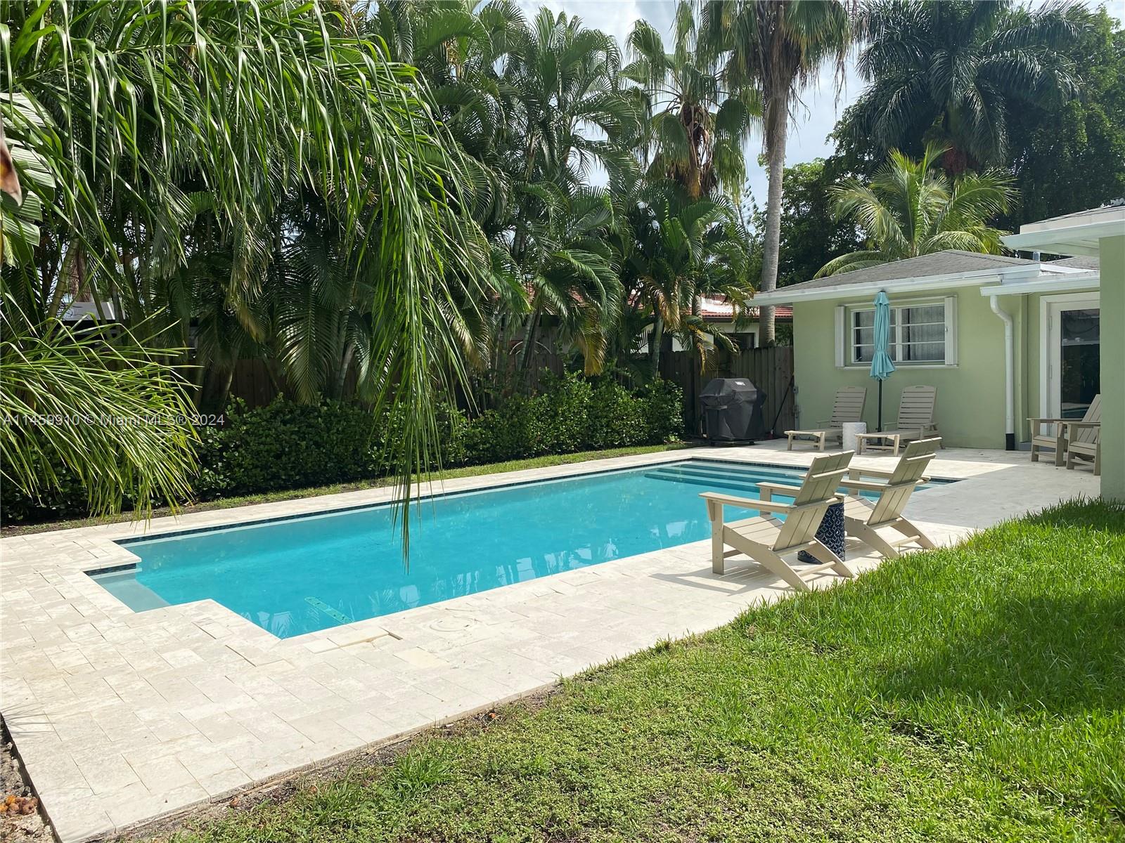 Move in Ready! Beautiful 2BR 2BA + 1 Car Garage, with a great open-concept design. Light & Bright. Remodeled, New Concrete Floors throughout. Fantastic New Chefs Kitchen with Gas Cooking, Center Island, Breakfast counter, Quartz countertops, lot's of space, great for family gatherings/entertaining. Seperate laundry room, Tankless water heater, Hurricane protection/Accordion Shutters. Private fenced in Tropical backyard with a modern style Headed Saltwater Pool and it comes with an outdoor shower. This home is located within the desirable Hollywood Lakes, 2 blocks from the Lake and near the Beaches and Boardwalk, Golf Course, Hollywood Downtown, Casinos & Shopping.