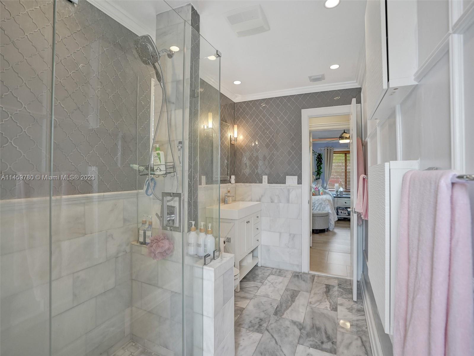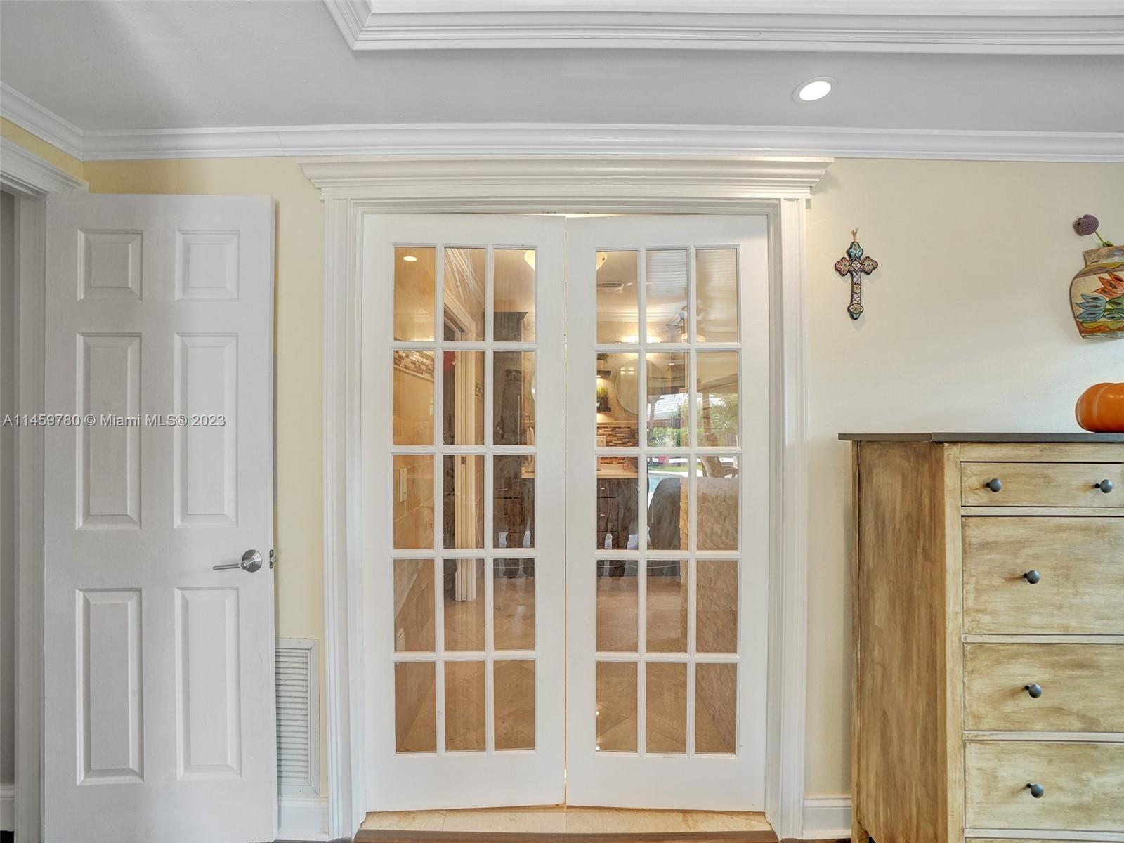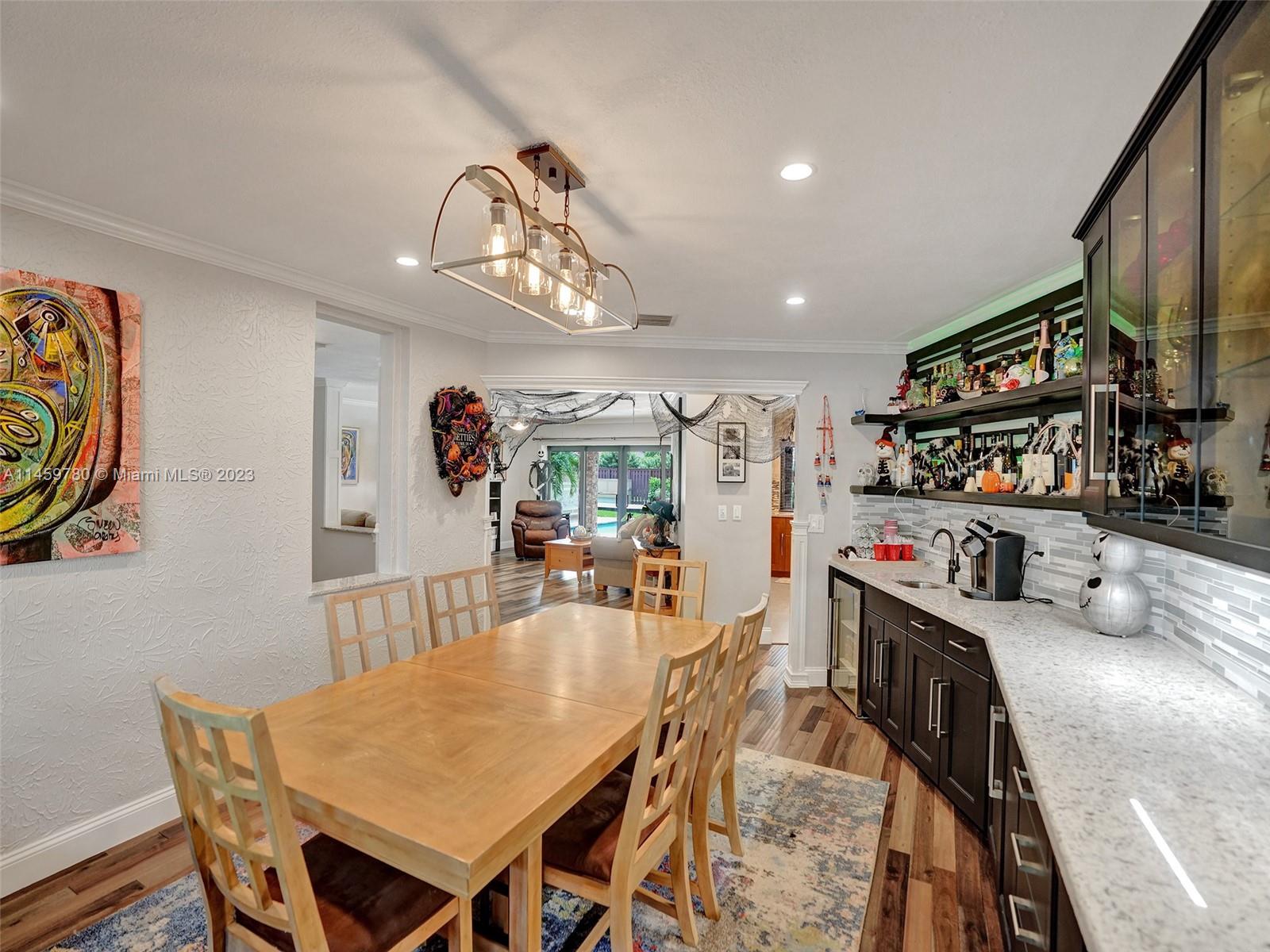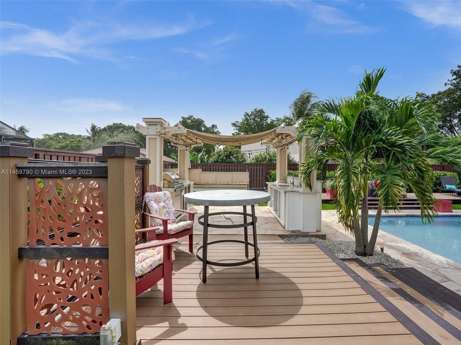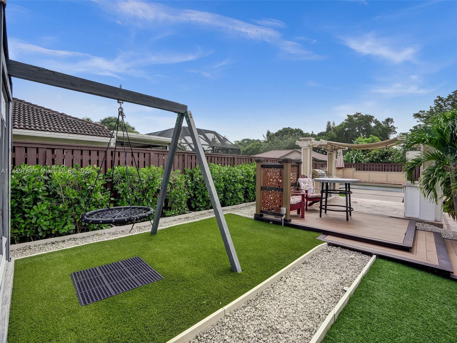 Welcome to your dream home! This spacious updated 4/3 property is nestled on a generous corner lot, boasting a captivating circular driveway and a two-car garage with an extra side driveway. The exterior is an oasis featuring a large terrace, a sparkling pool surrounded by lush synthetic grass, an outdoor kitchen, and a convenient outdoor shower. Step inside to discover a 3-way split floor plan that offers both privacy and functionality. The expansive kitchen is a chef's delight, complete with dual wall ovens, abundant counter and pantry space, and dining area. Enjoy the cozy fireplace in the family room, perfect for creating a warm ambiance. This home also features a separate family room & living room, providing ample space for relaxation and entertainment. A-rated schools and NO HOA.