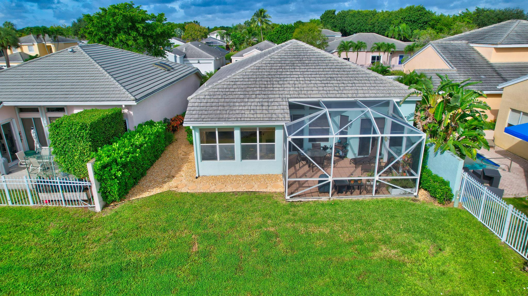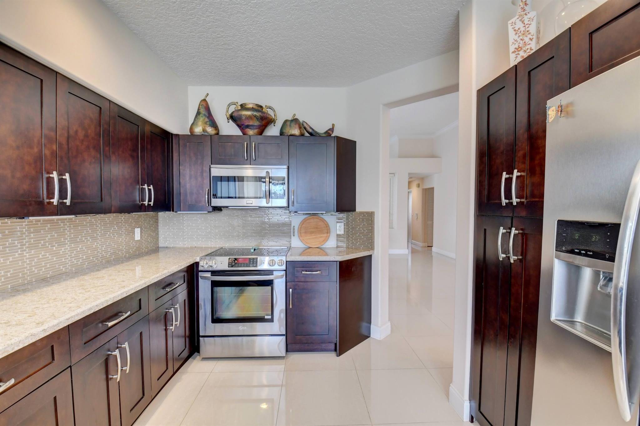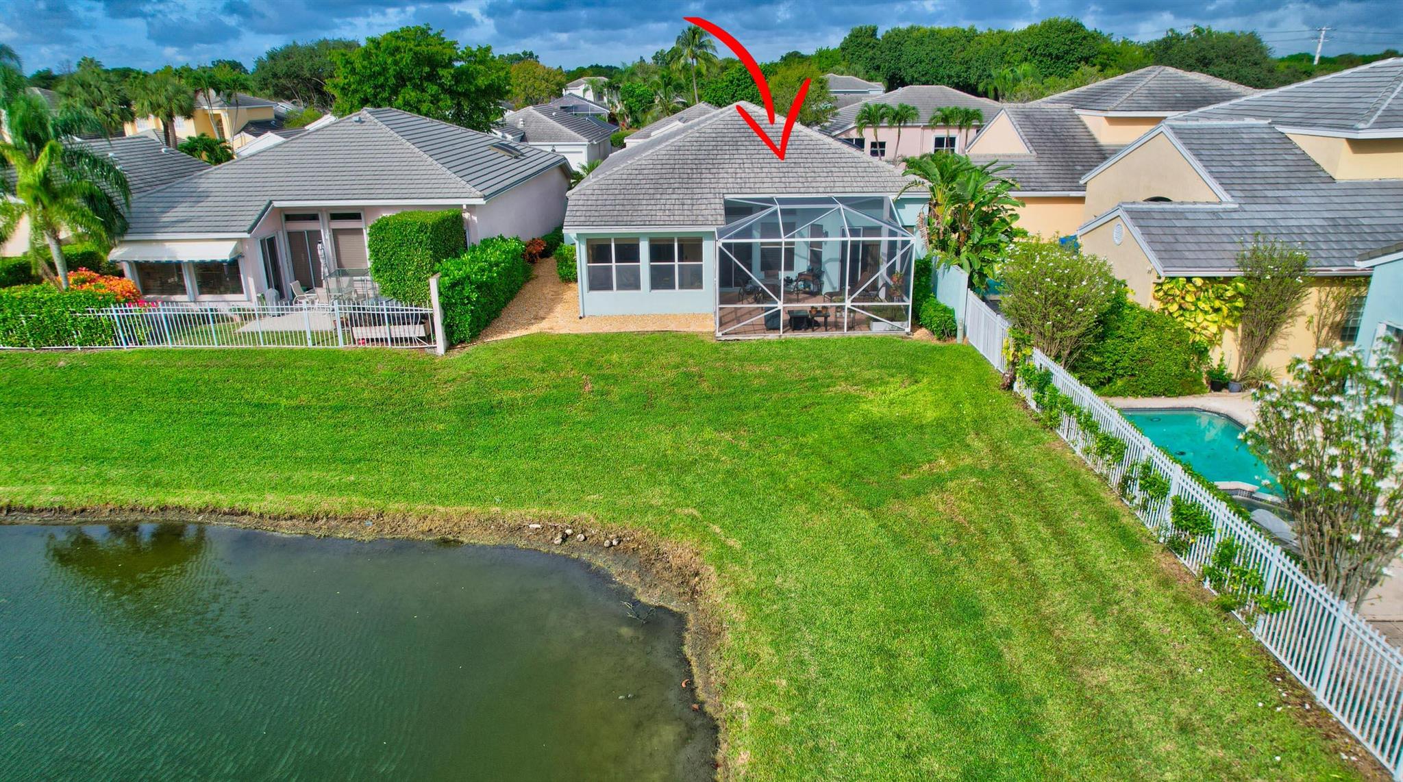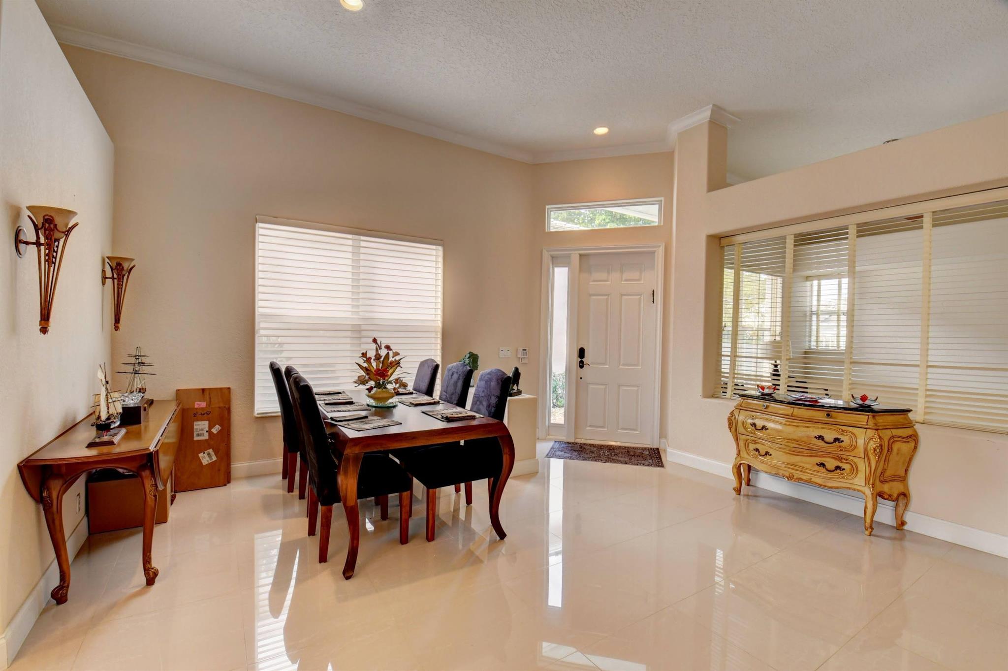 You won't forget this long lake view in this updated one story homes in popular Palms community. Floor plan features 2 bedrooms plus den and formal living and dining room. Large tile floors in main living areas. Updated kitchen and baths. Large screened in patio to enjoy endless water views. Roof replaced 2015! A/C replaced in 2020. Other features include crown molding, carpet in primary bedroom, built in closets in both bedrooms, primary bath has double sinks with lots of cabinet storage, tankless water heater, large walk in plus wall closet in primary bedroom, impact front door and so much more! Washer and dryer currently located in garage with sink. Laundry room used as hobby closet, but can be easily converted back. Close to subdivision pool. Don't miss this one!!!